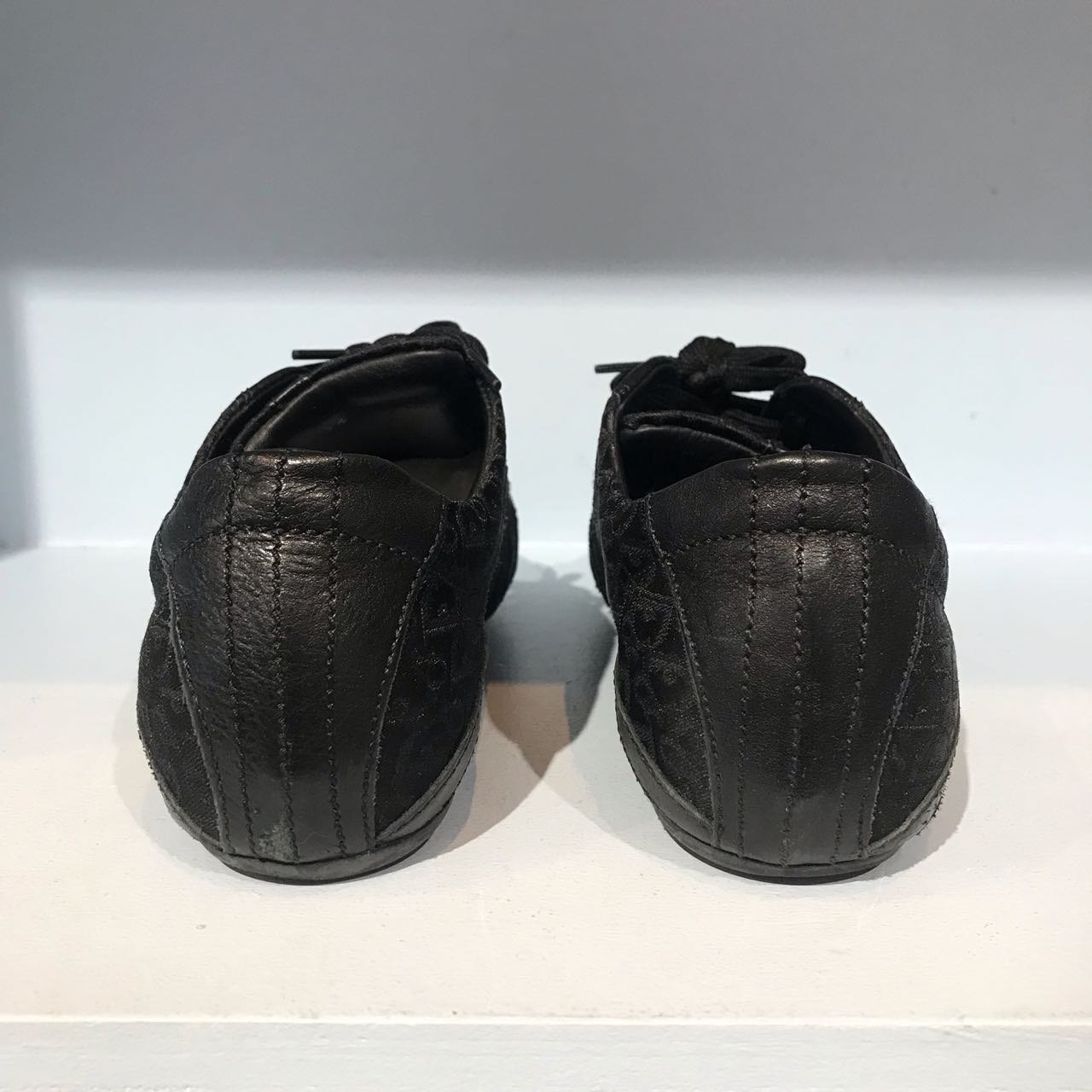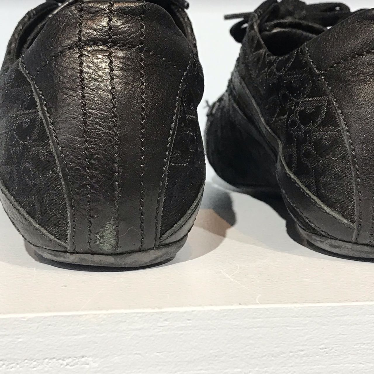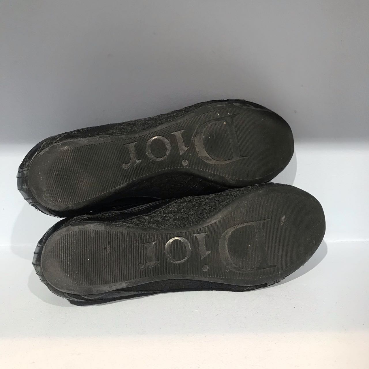Baskets à lacets en toile et cuir noir, plaque Dior en métal argent.