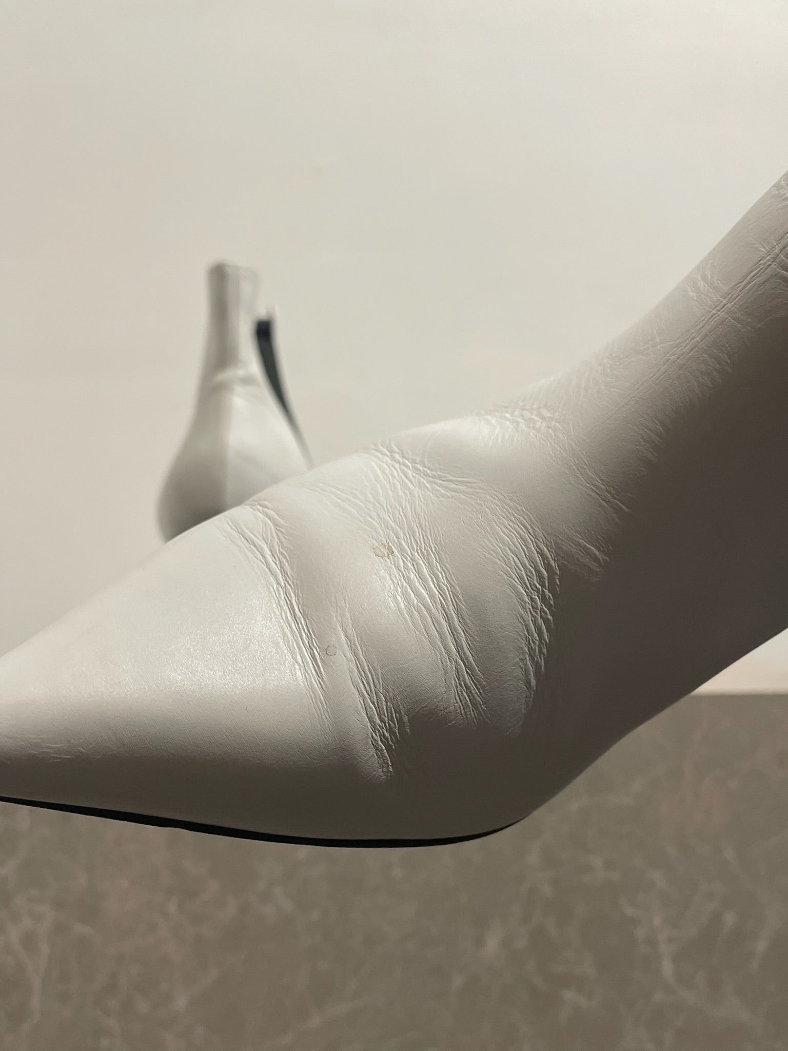 Boots en cuir blanc avec bouts pointus et bandes élastiques aux côtés.
