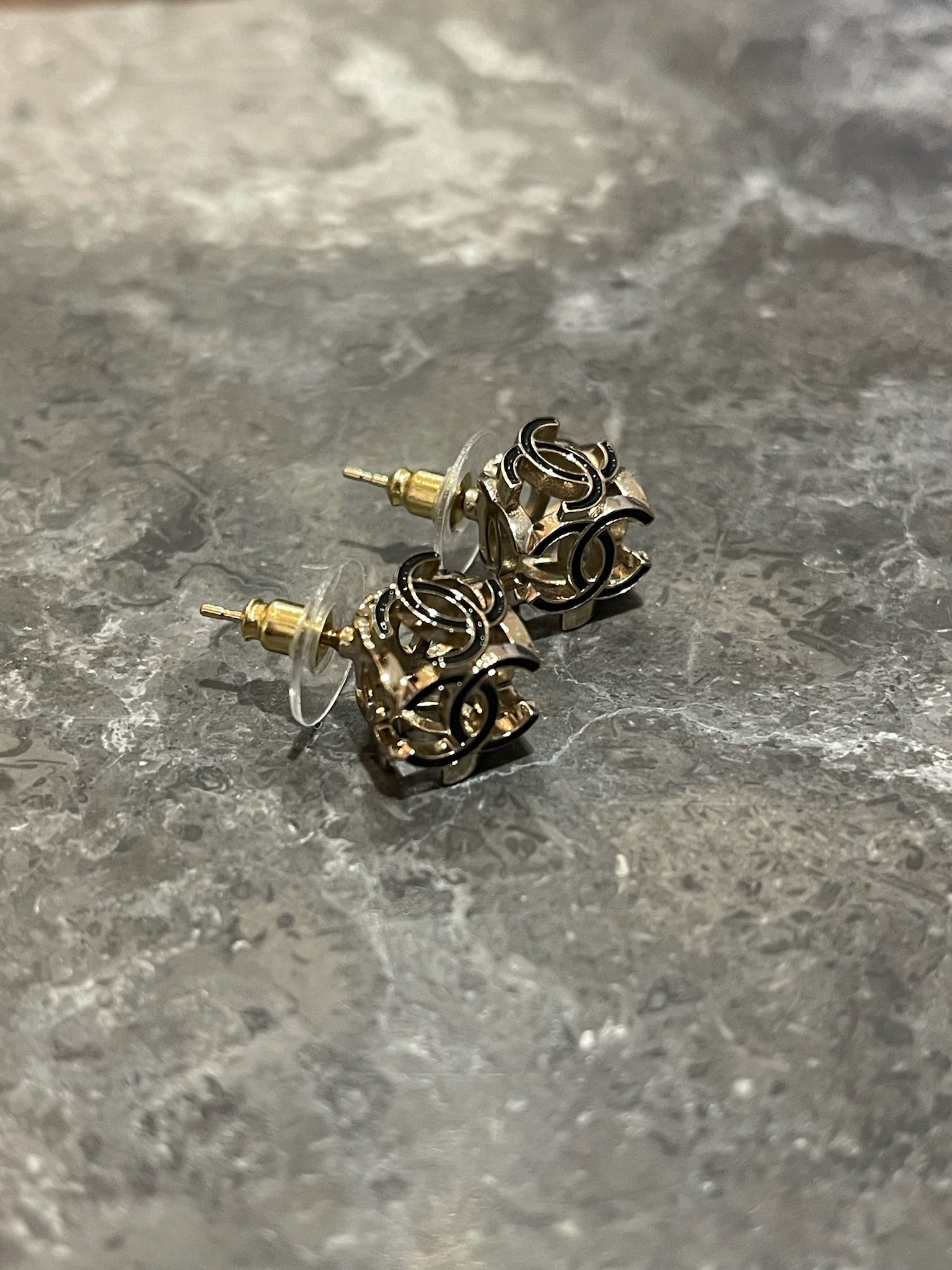 Boucles d'oreilles en cube 3D CC noir et doré.