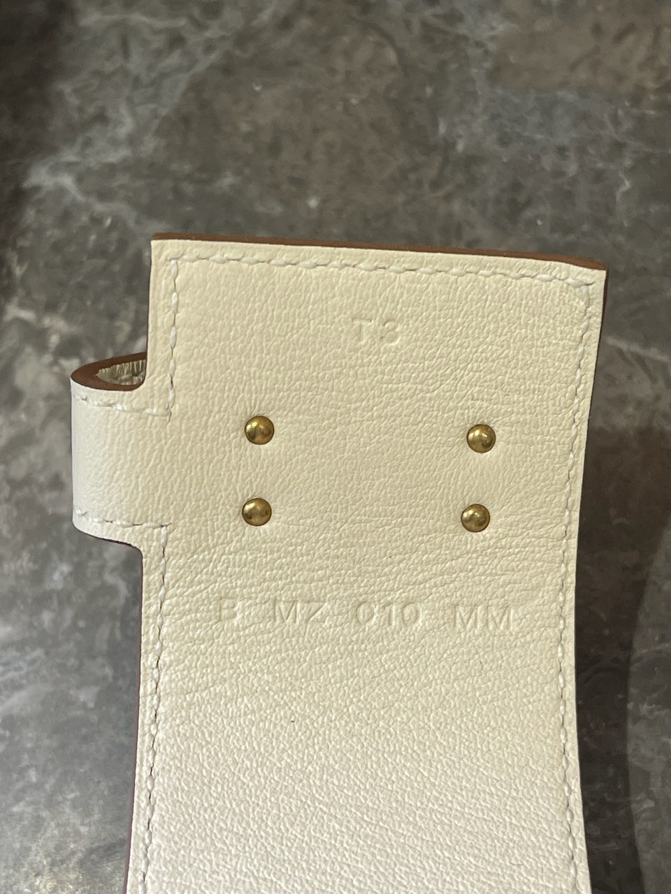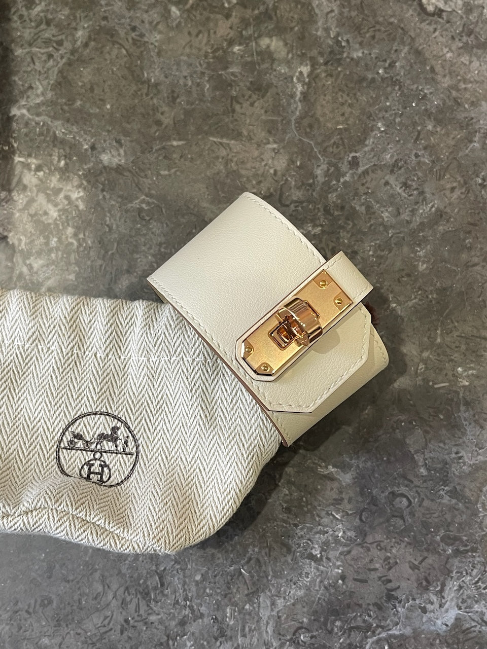 Bracelet en cuir blanc orné de l'iconique fermoir Kelly. Finitions métallique rose gold.