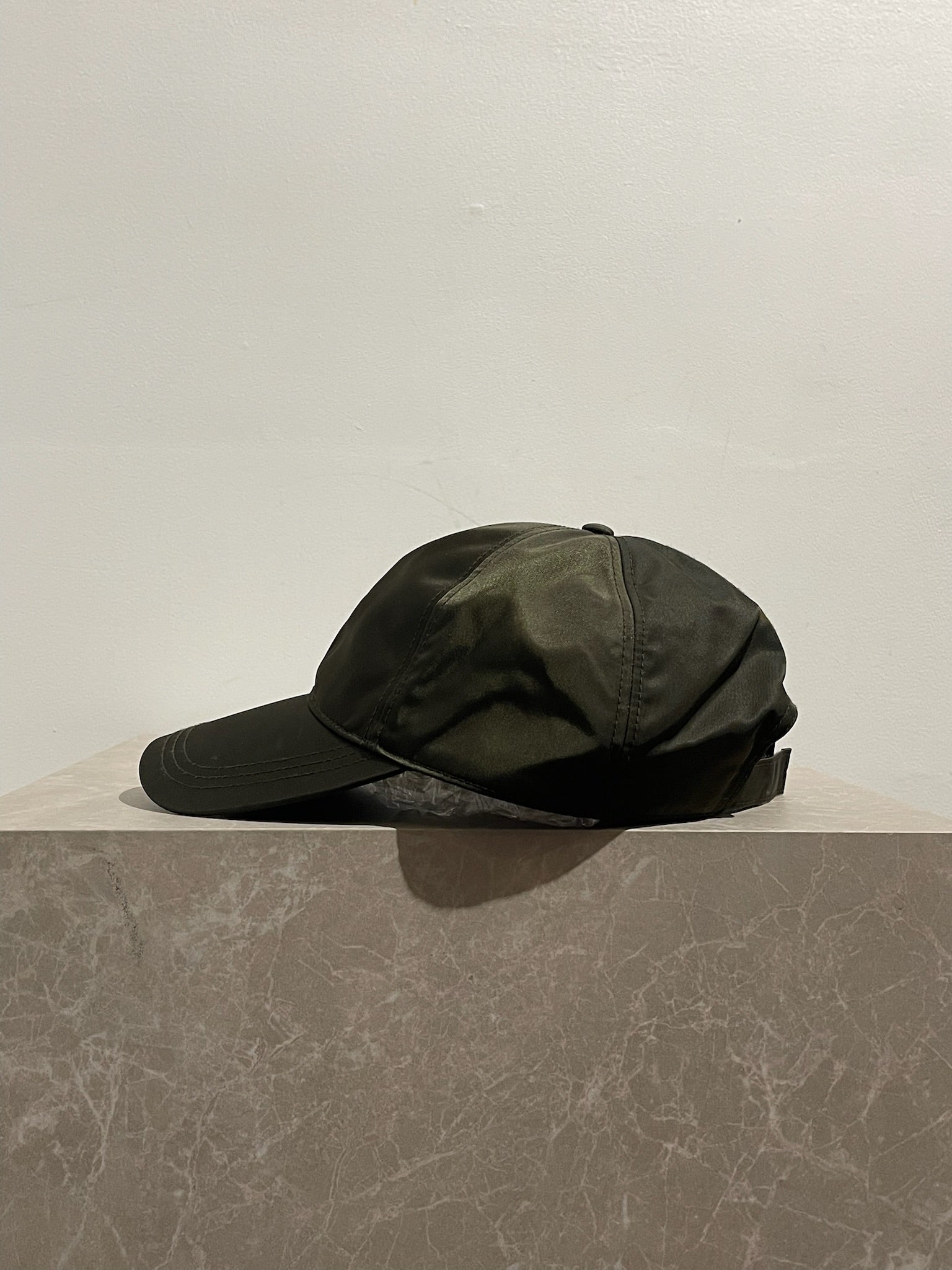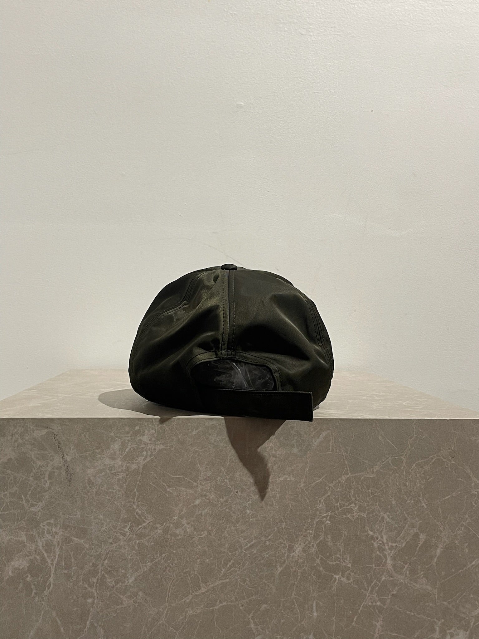 Casquette en nylon kaki, logo Prada brodé sur le coté. Taille ajustable à l'arrière à scratch.