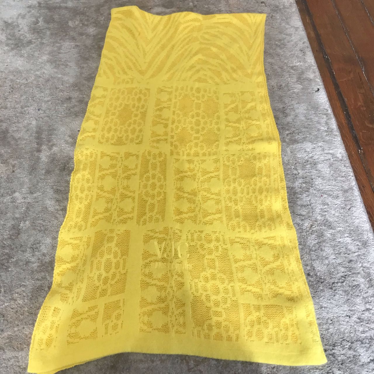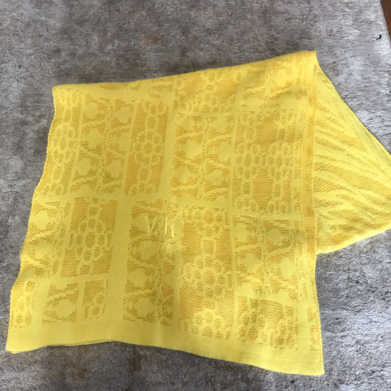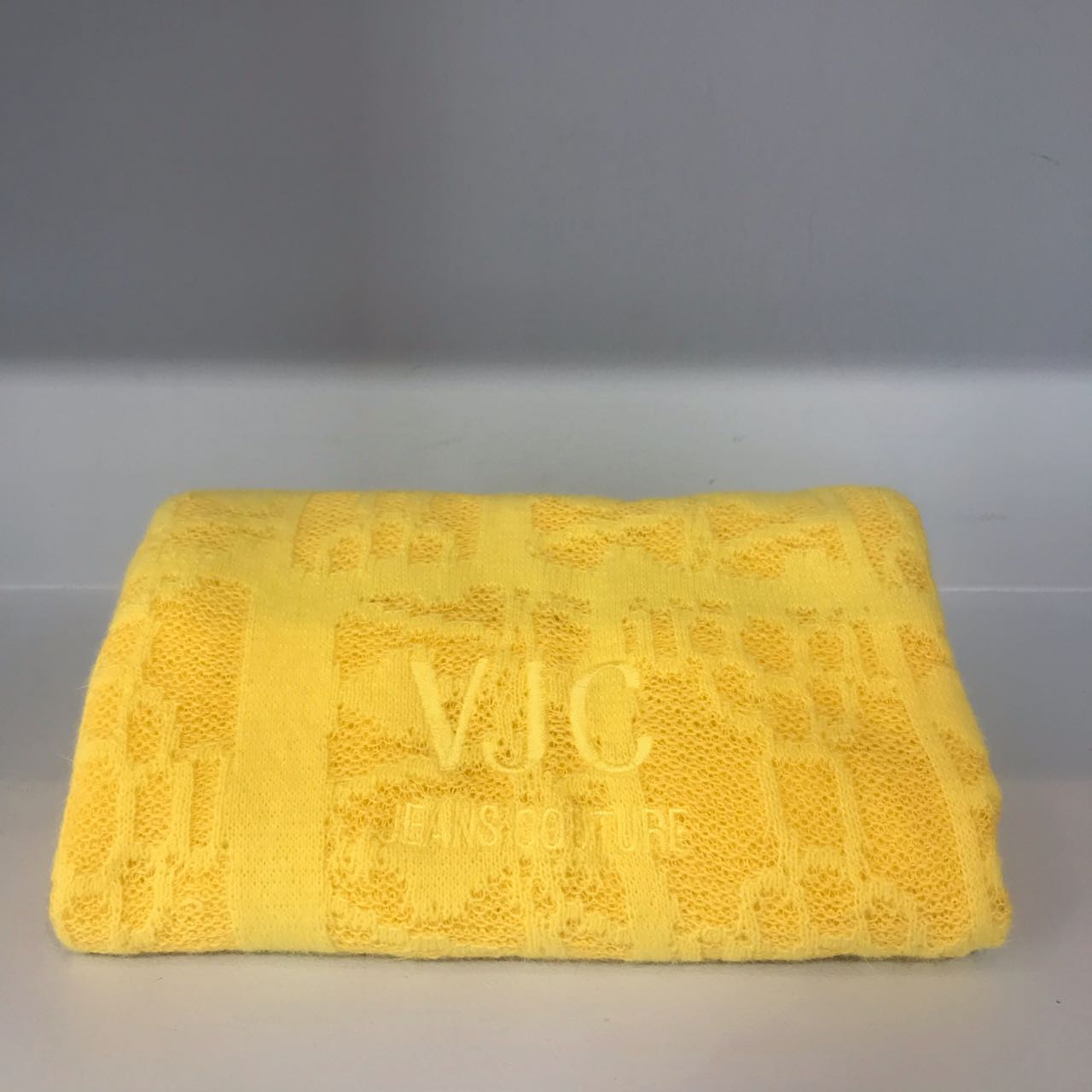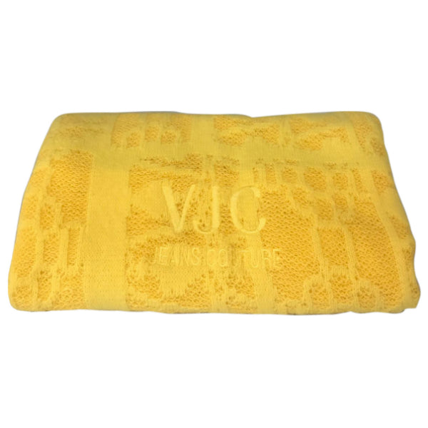 Echarpe en laine et coton jaune avec initiales Versace brodées.