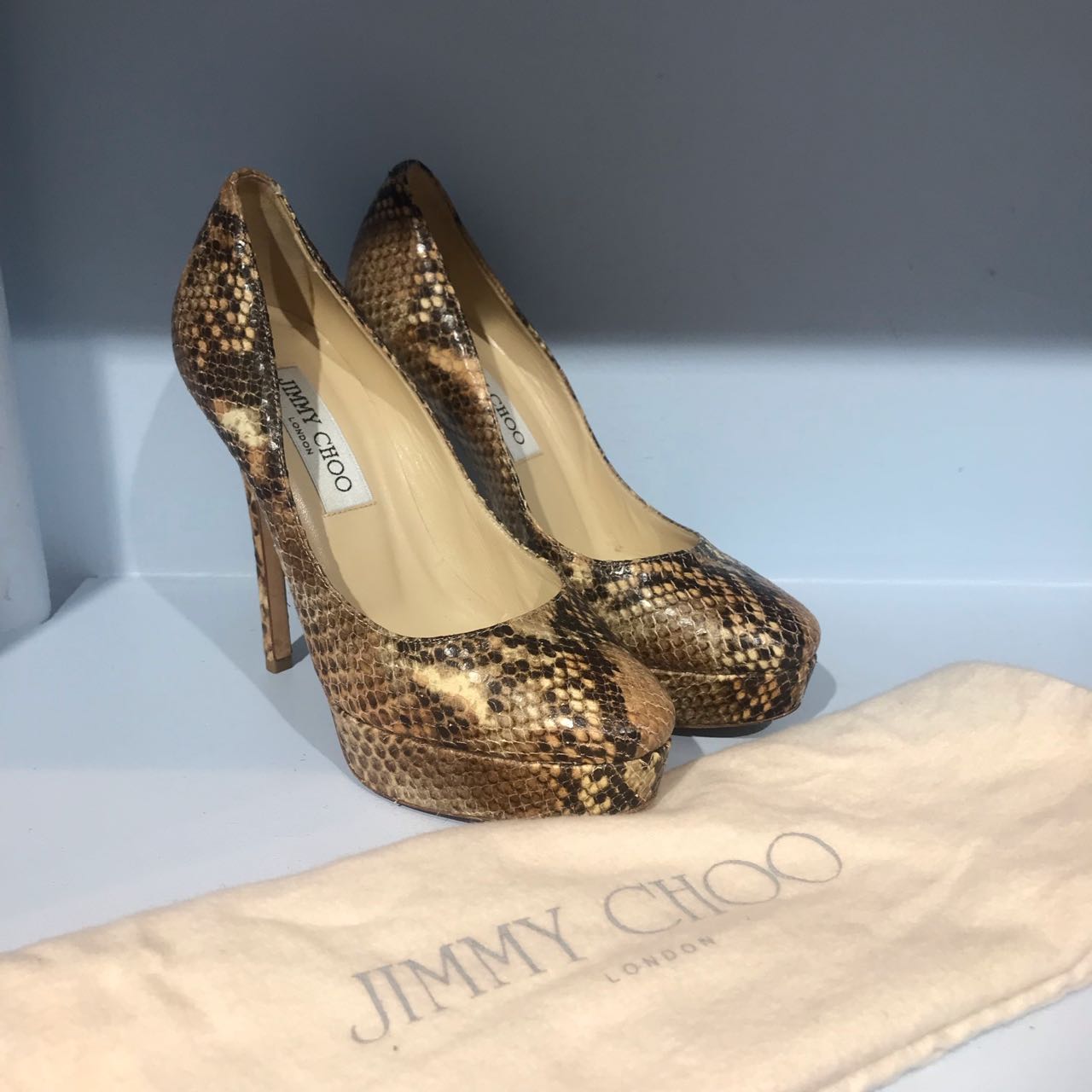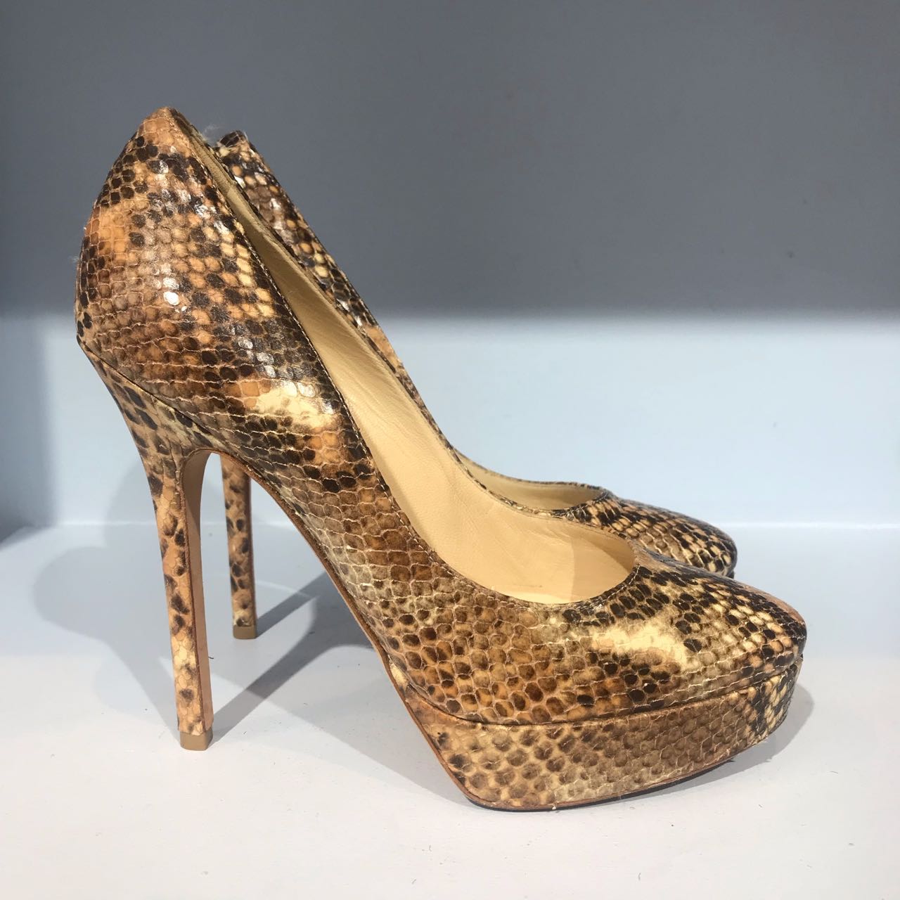 Hauteur des talons 12 cm dont plateforme 2,5 cm.
