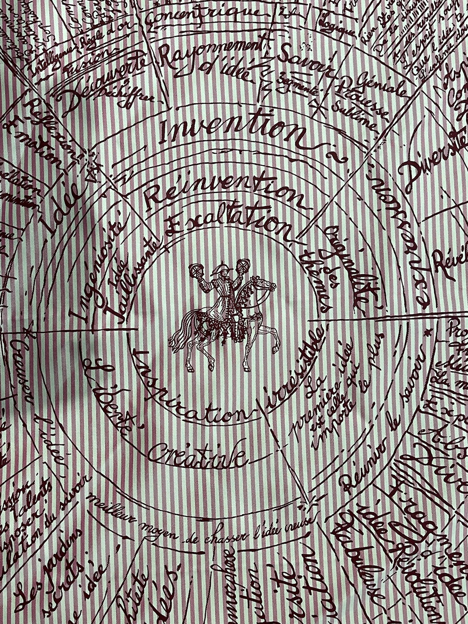 Carré en twill 100 % soie. Coloris rose avec imprimé renaissance.