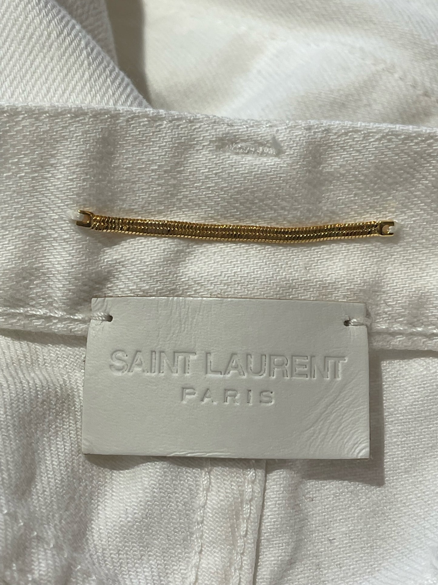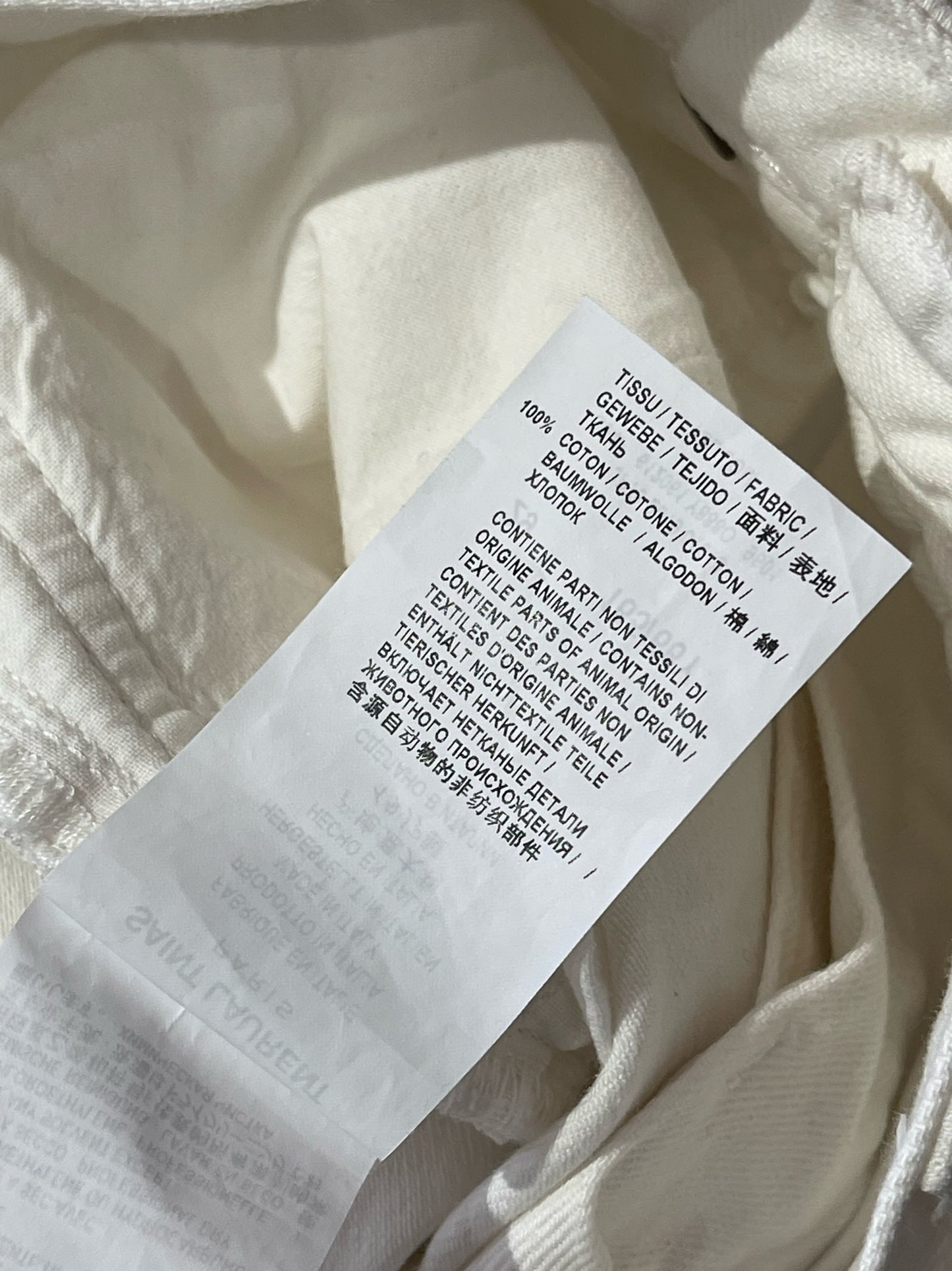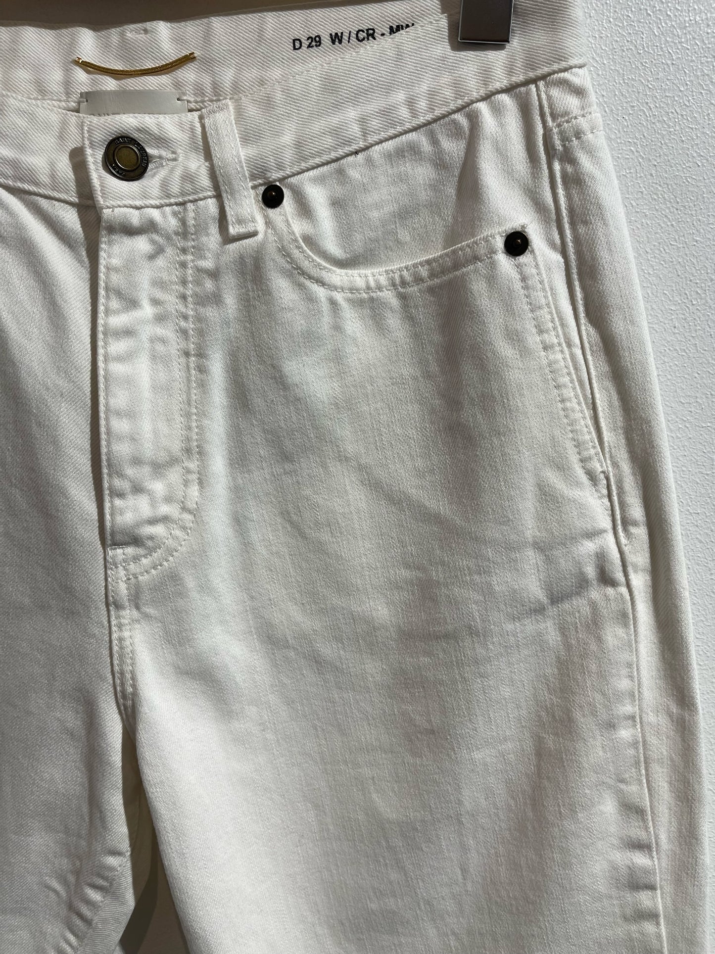 Jeans en coton blanc avec effet usé et ourlets francs. Coupe droite.