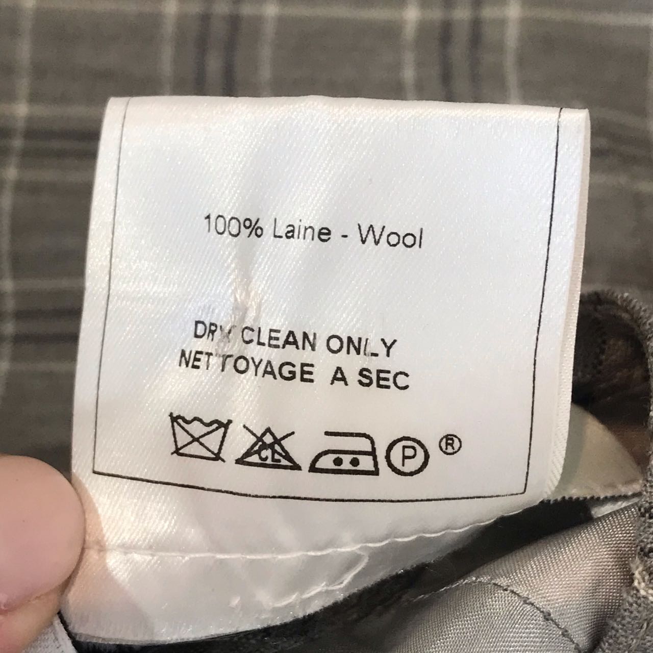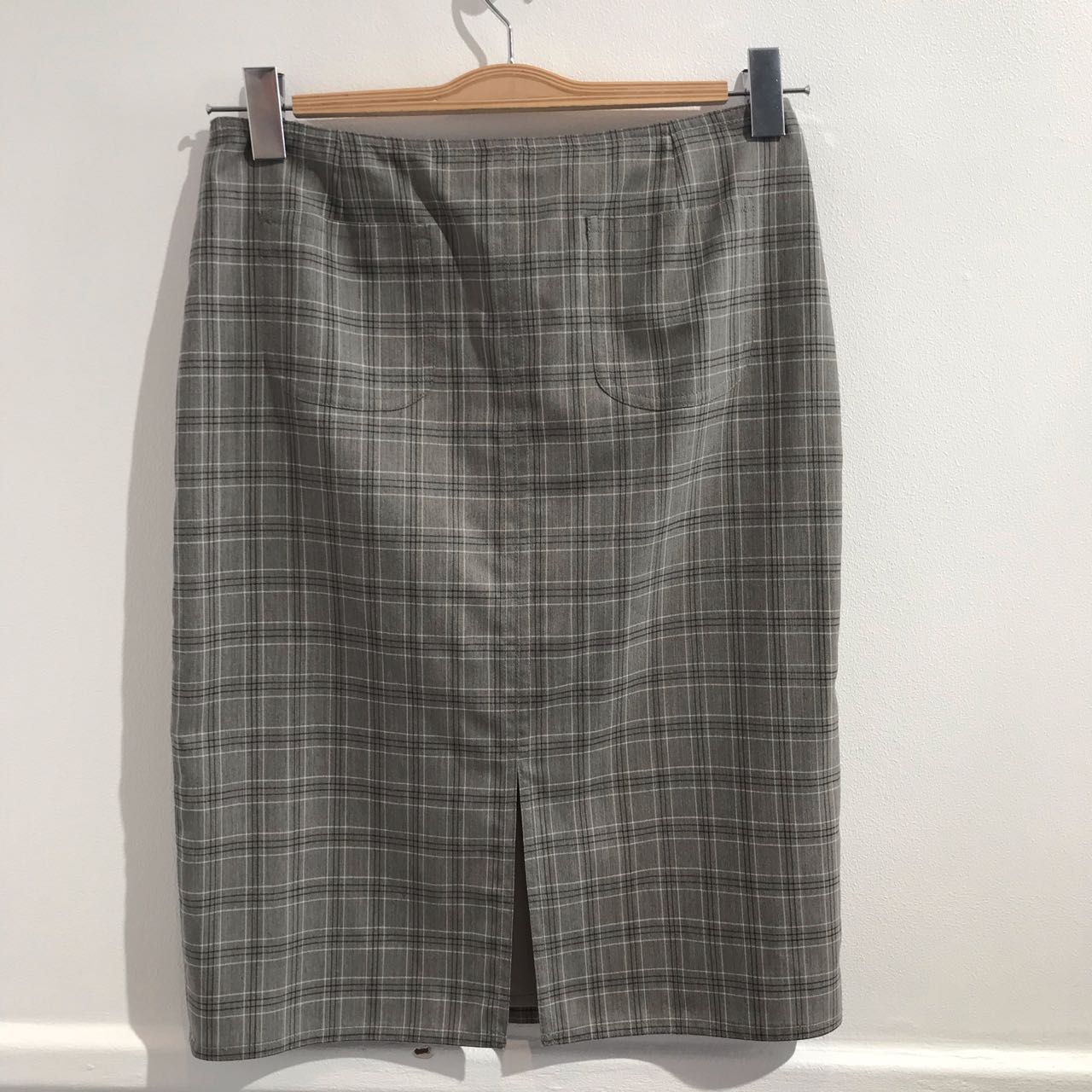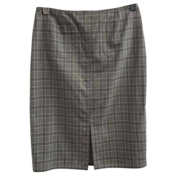 Jupe en laine à carreaux gris.