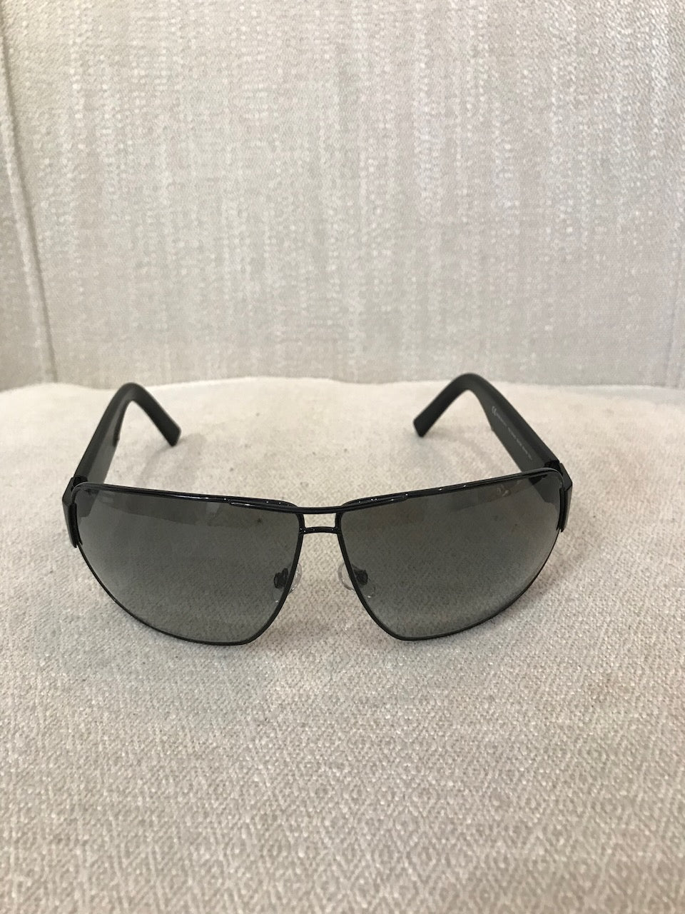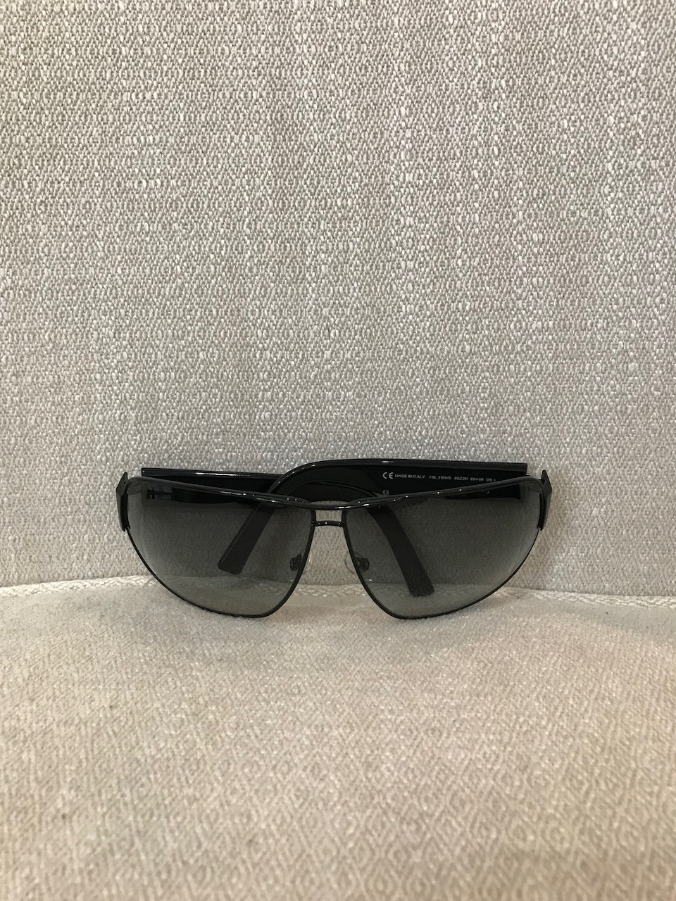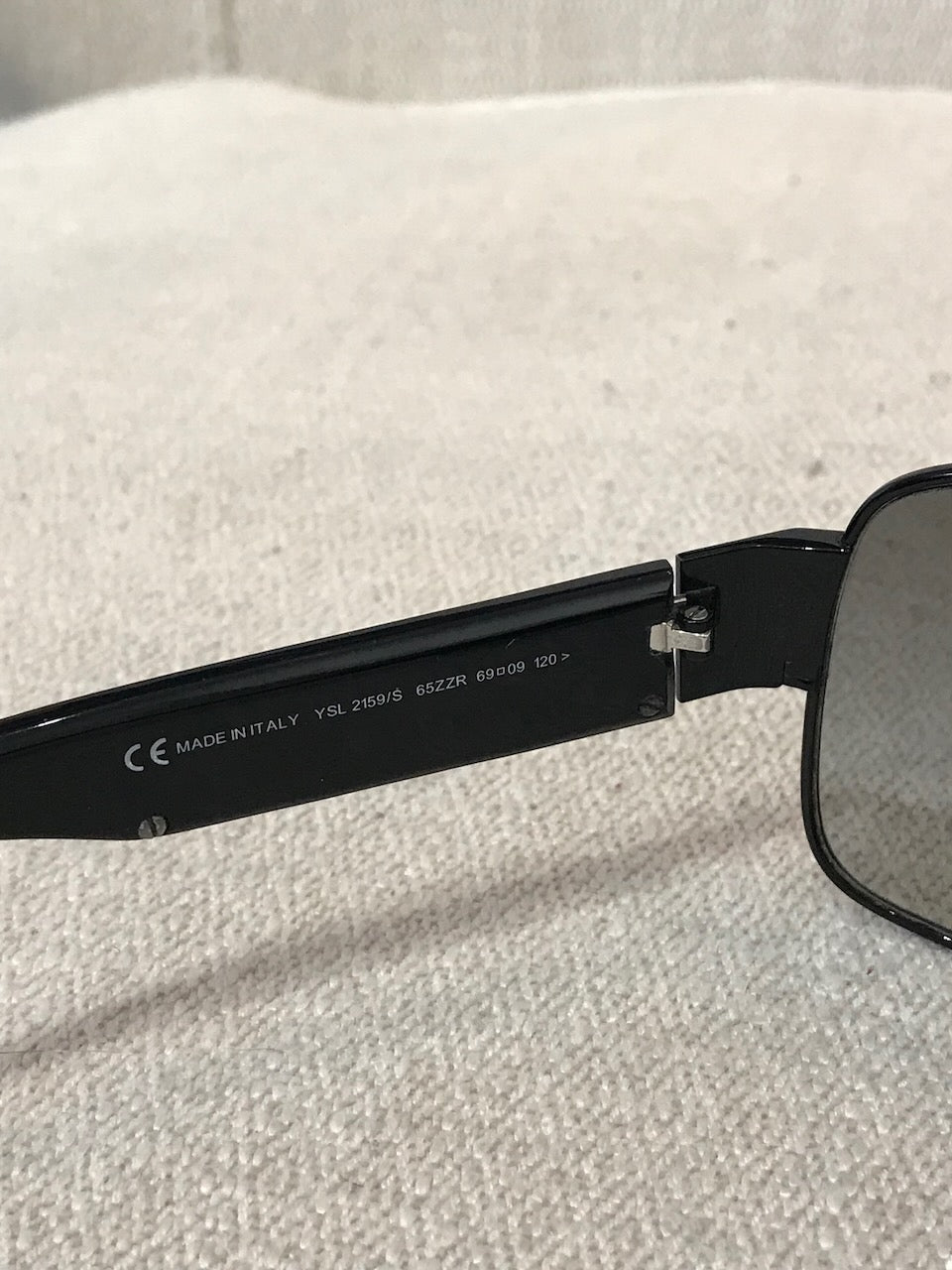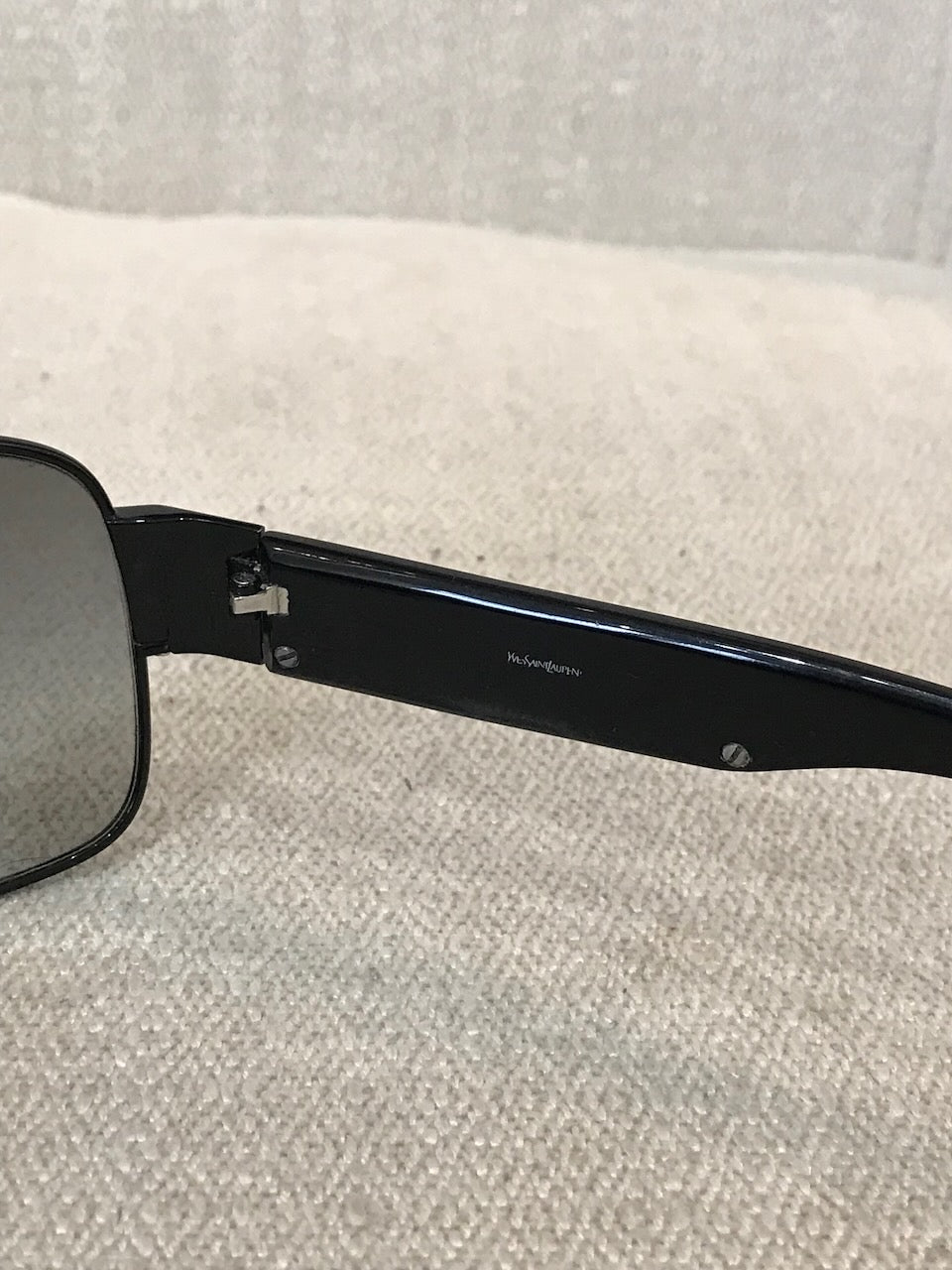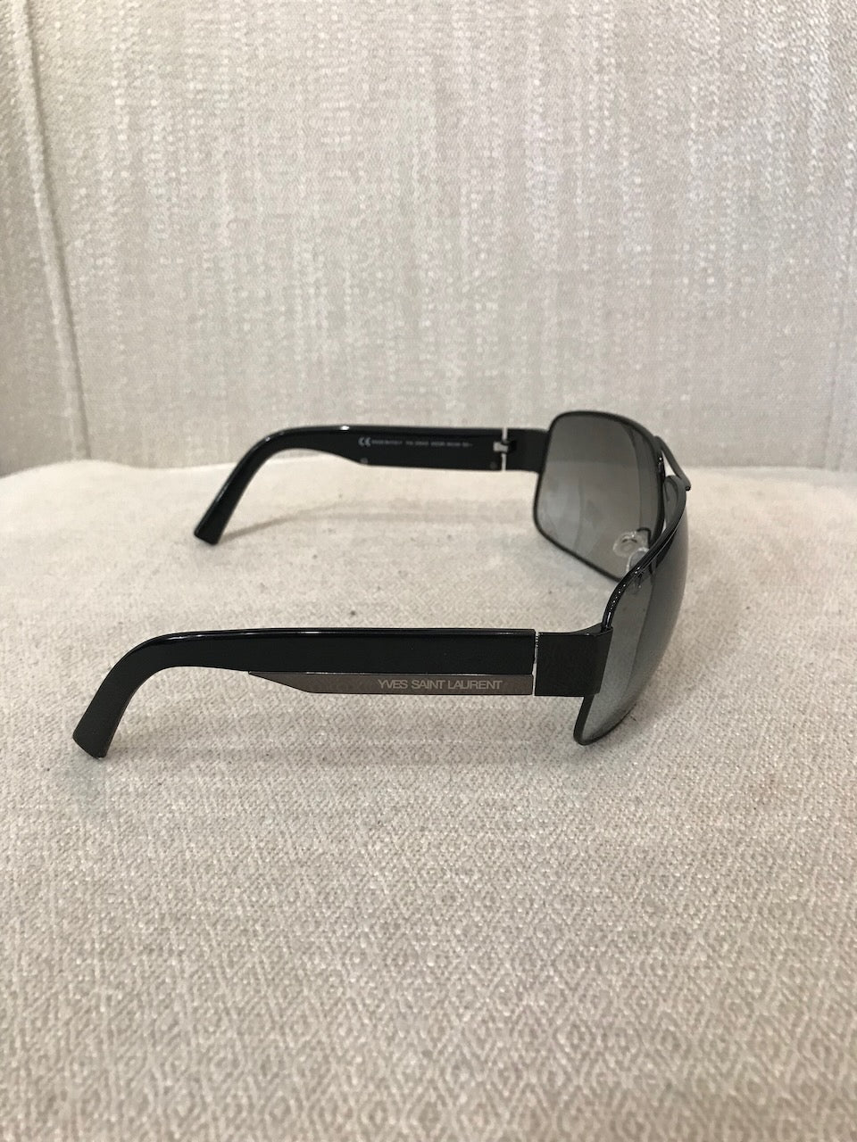 Lunettes en métal noir avec inscription "Yves Saint Laurent" sur les branches.