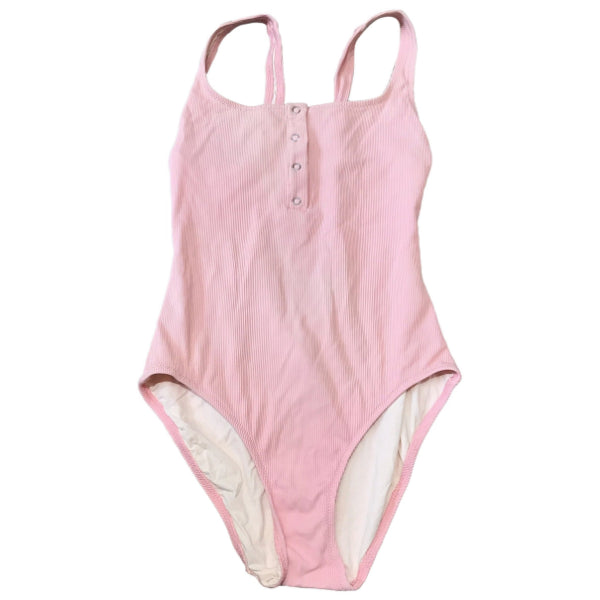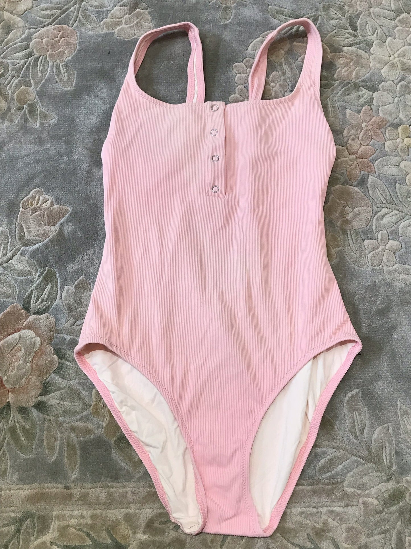 Maillot de bain Solid & Striped, modèle 1 pièce. En polyamide côtelé rose.