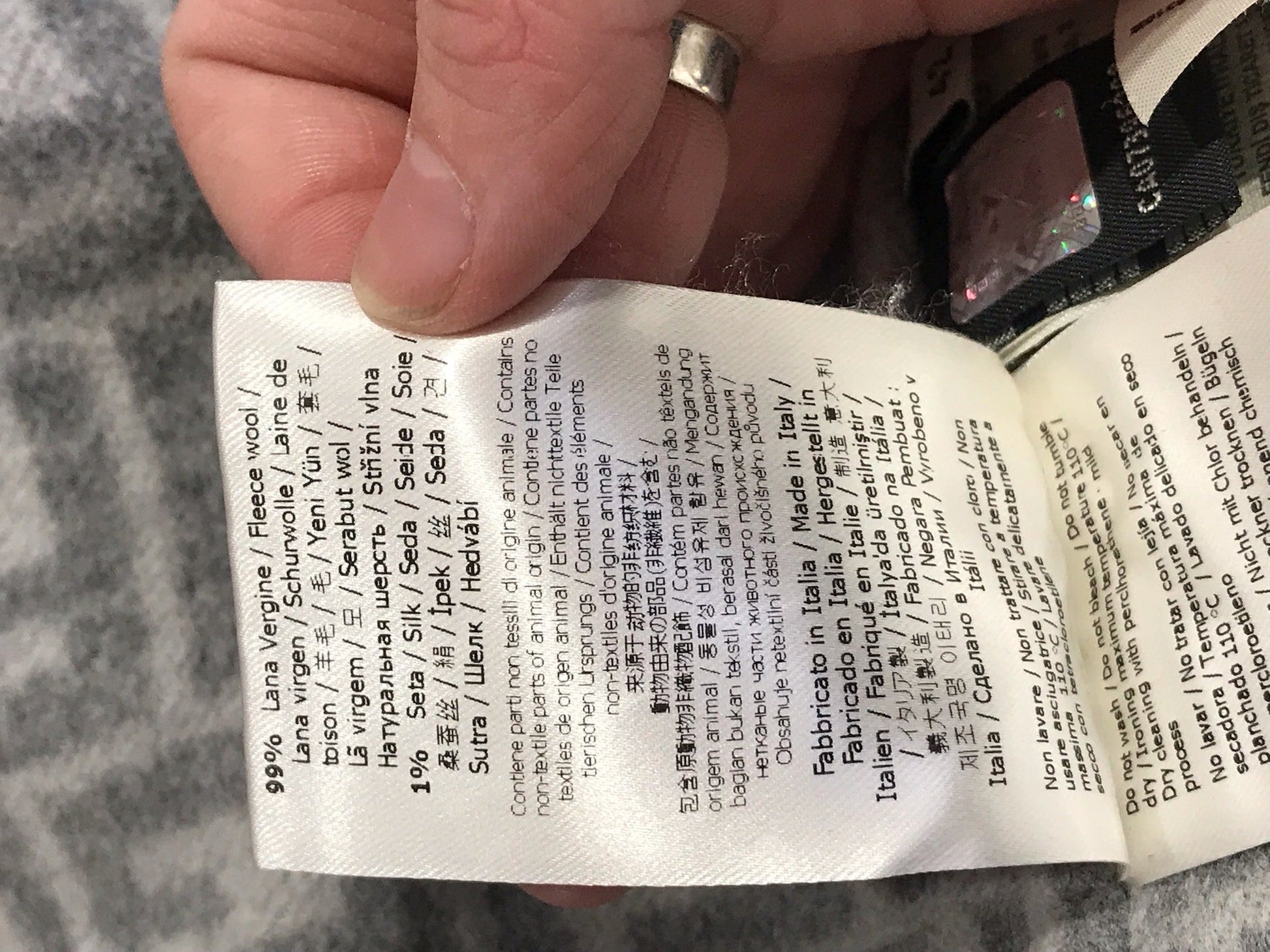 Composition : 99% Laine, 1% Soie. Fabriqué en Italie.