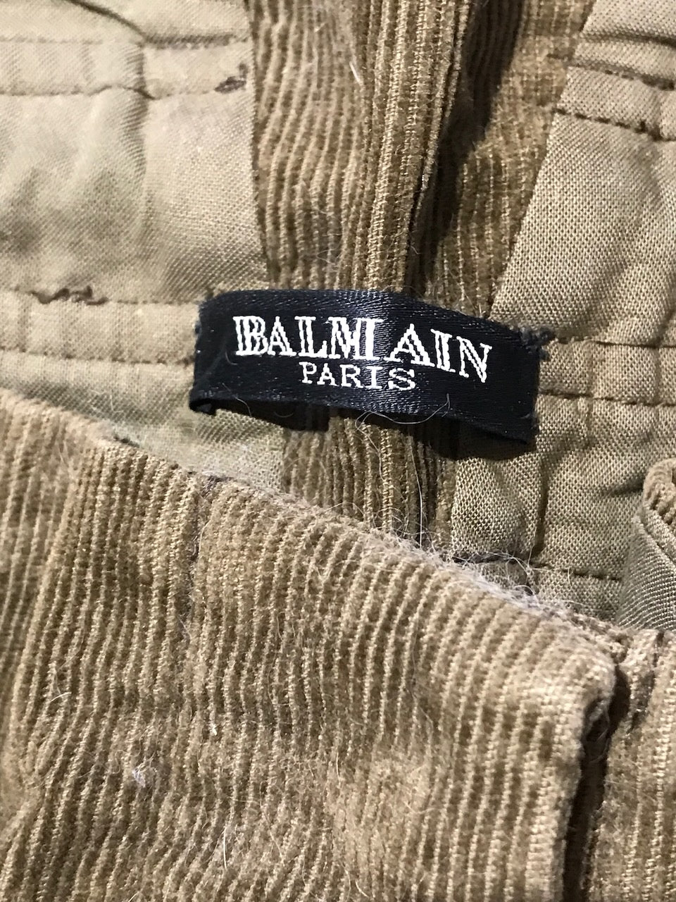 Pantalon en velours côtelé kaki coupe slim saroual , taille haute. Cordon de serrage à la taille.