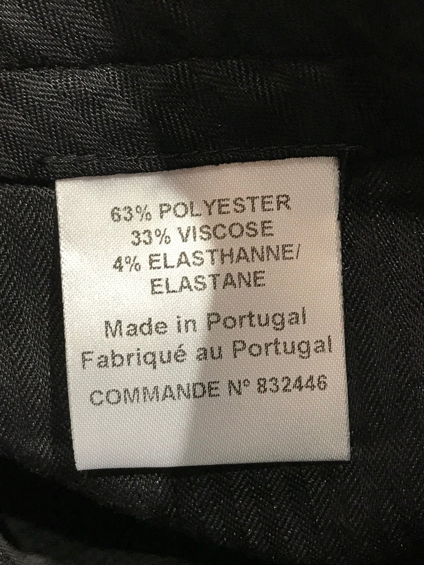 Pantalon en polyester et viscose noir. Fermeture zip et bouton. Coupe slim.