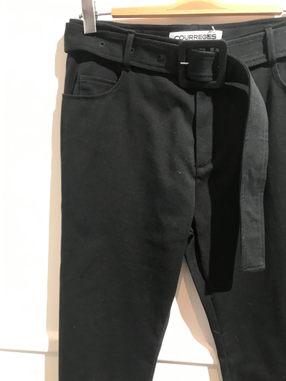 Pantalon en coton noir avec ceinture à la taille, coupe droite.