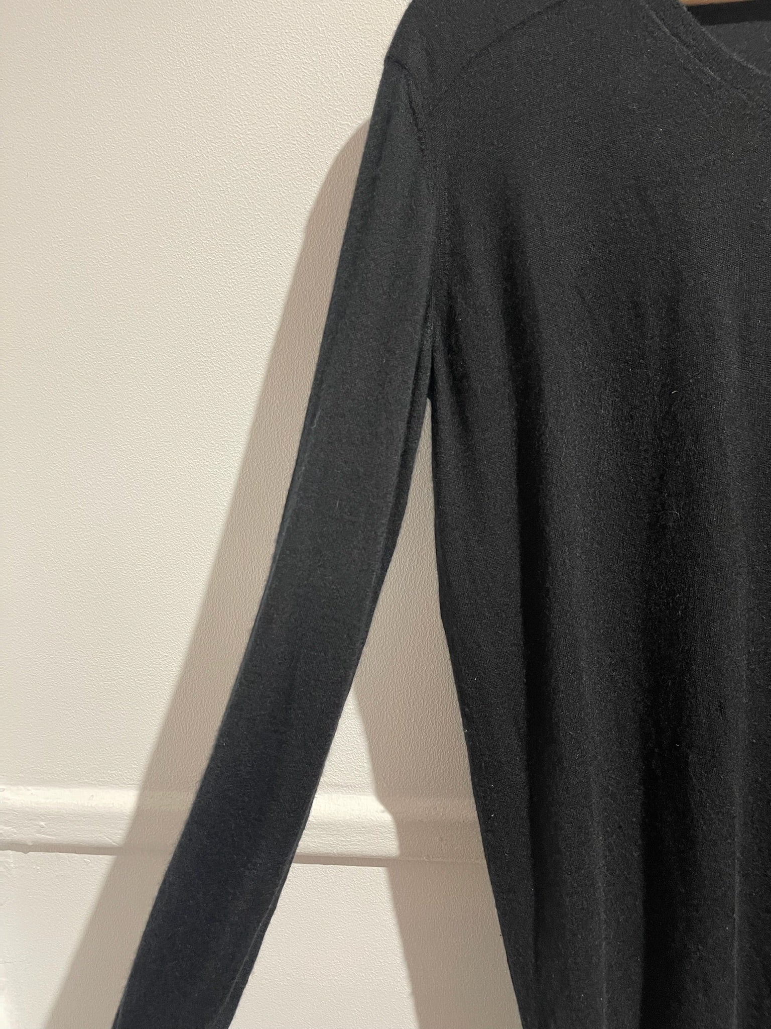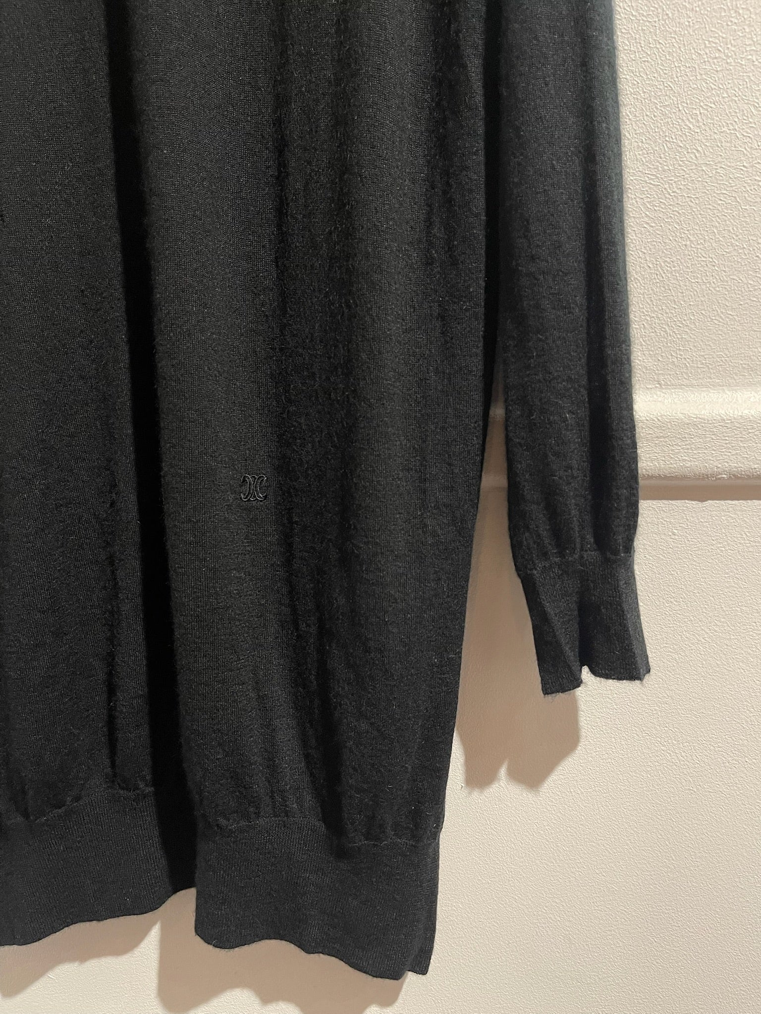 Pull long en cachemire noir avec petit logo triomphe brodé à l'avant, col V et manches longues.