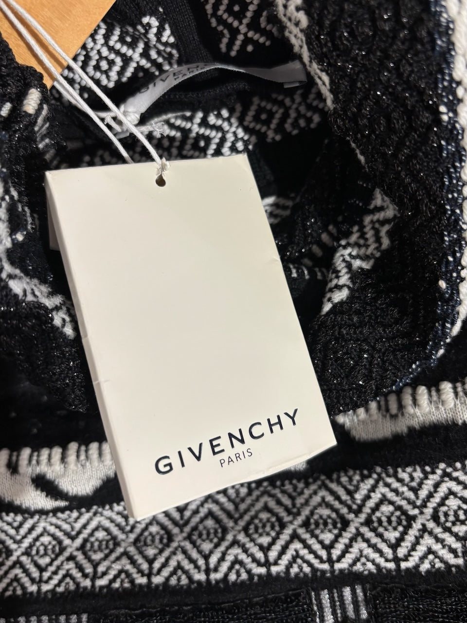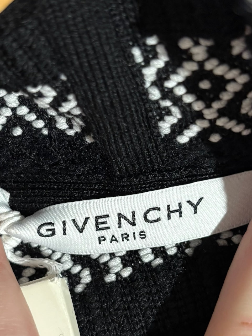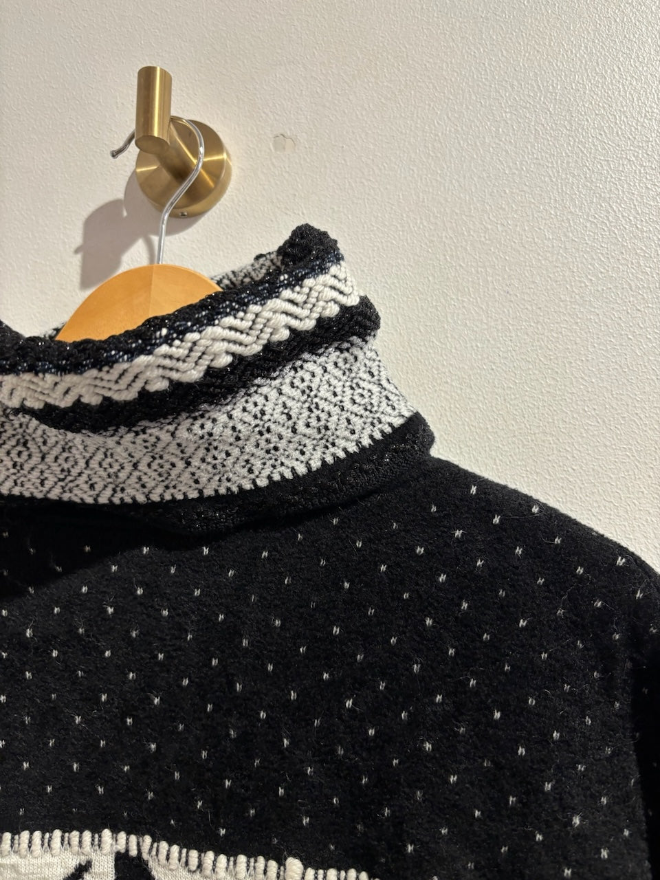 Pull col roulé en laine noir et blanc avec logo Givenchy à sequins. Coupe oversize.
