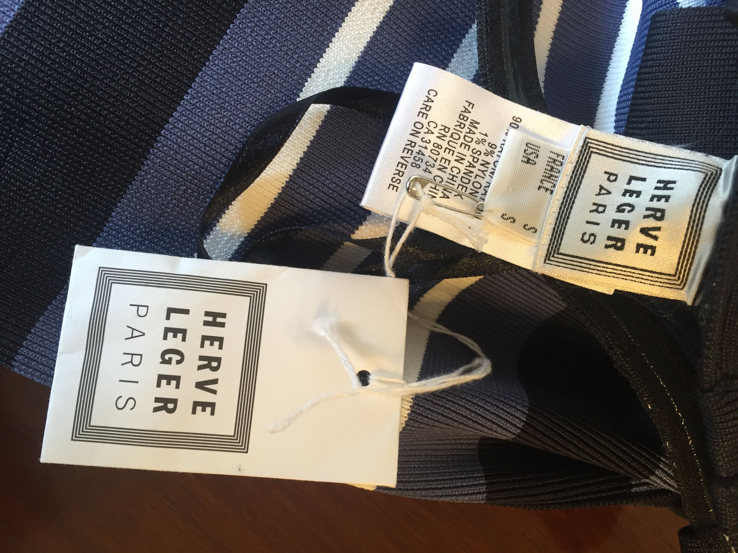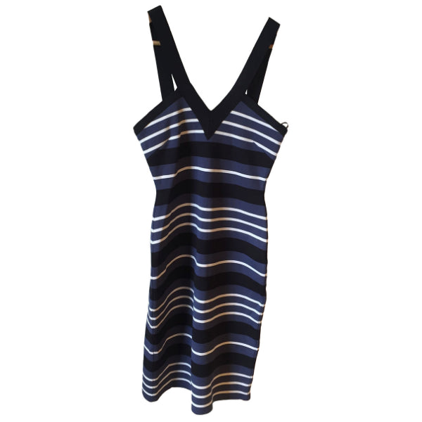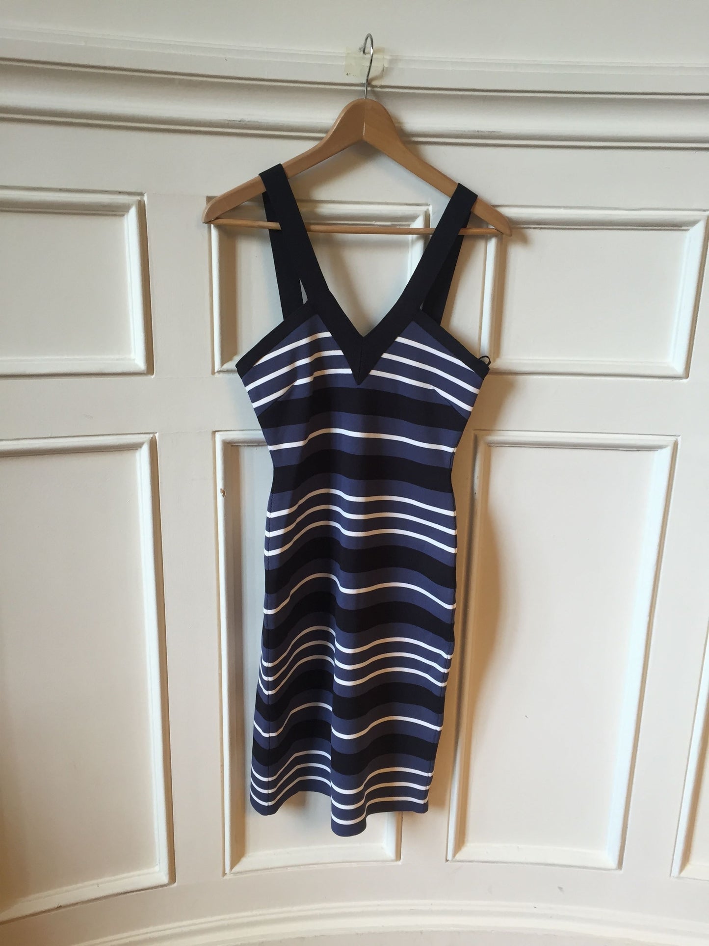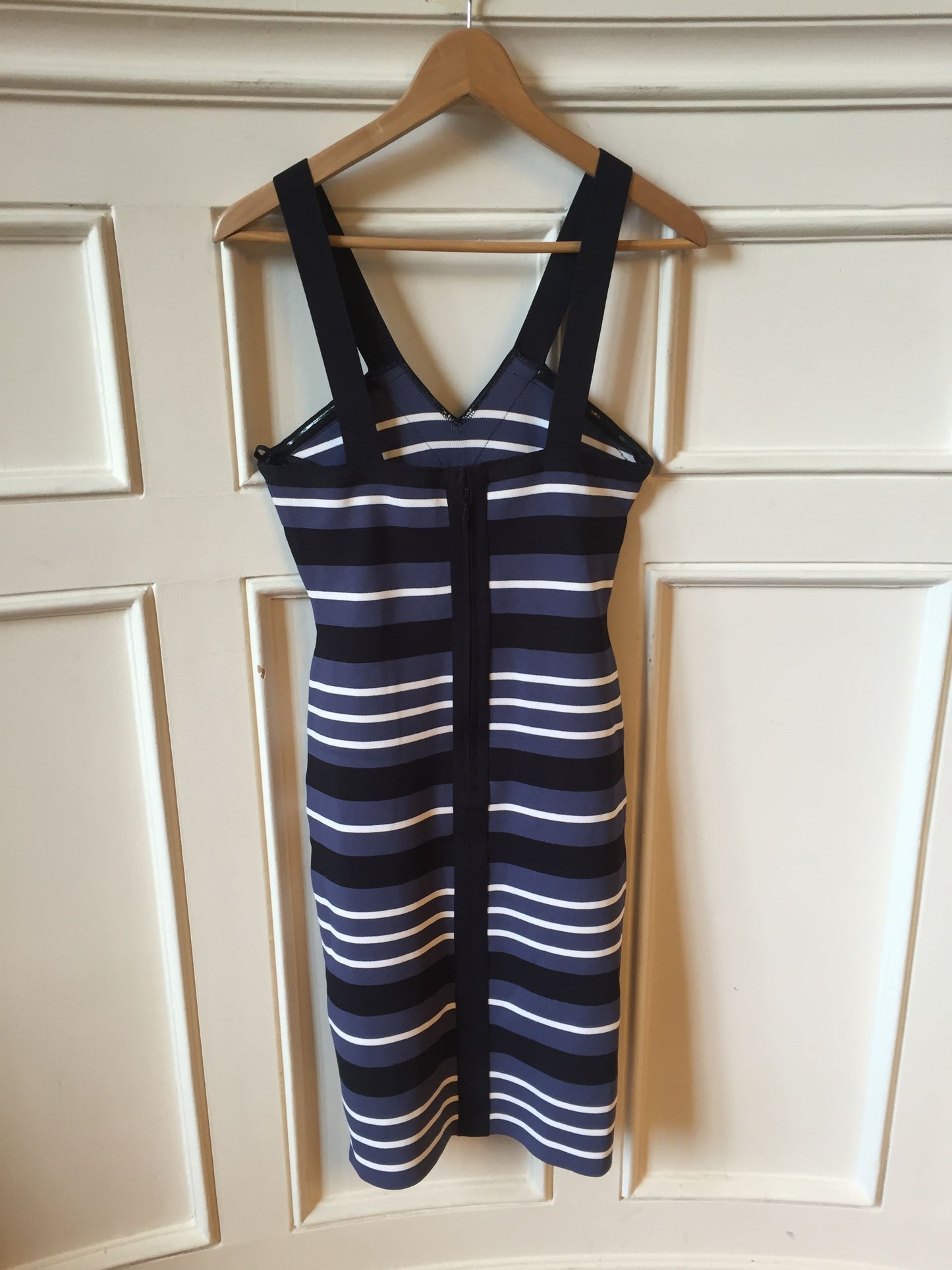 Robe bandage près du corps à rayures bleu, blanc et noir