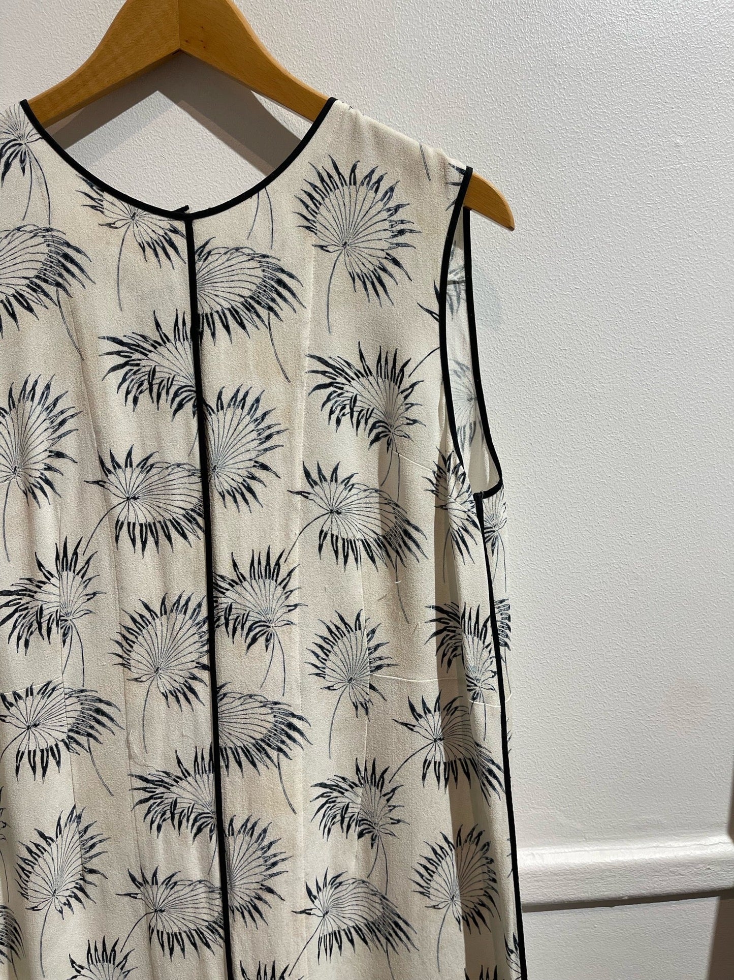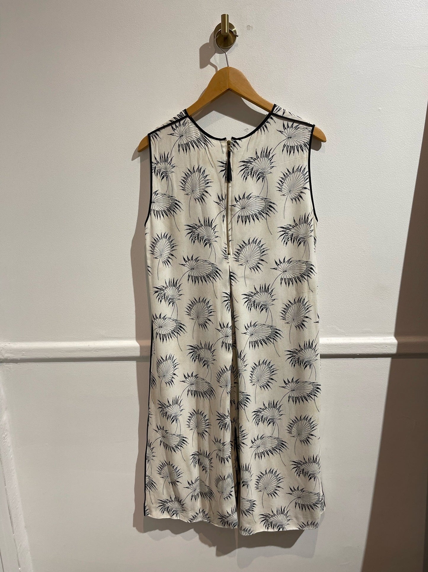 Robe courte en viscose blanc à motif fleuri bleu marine. Fermeture zip au dos.