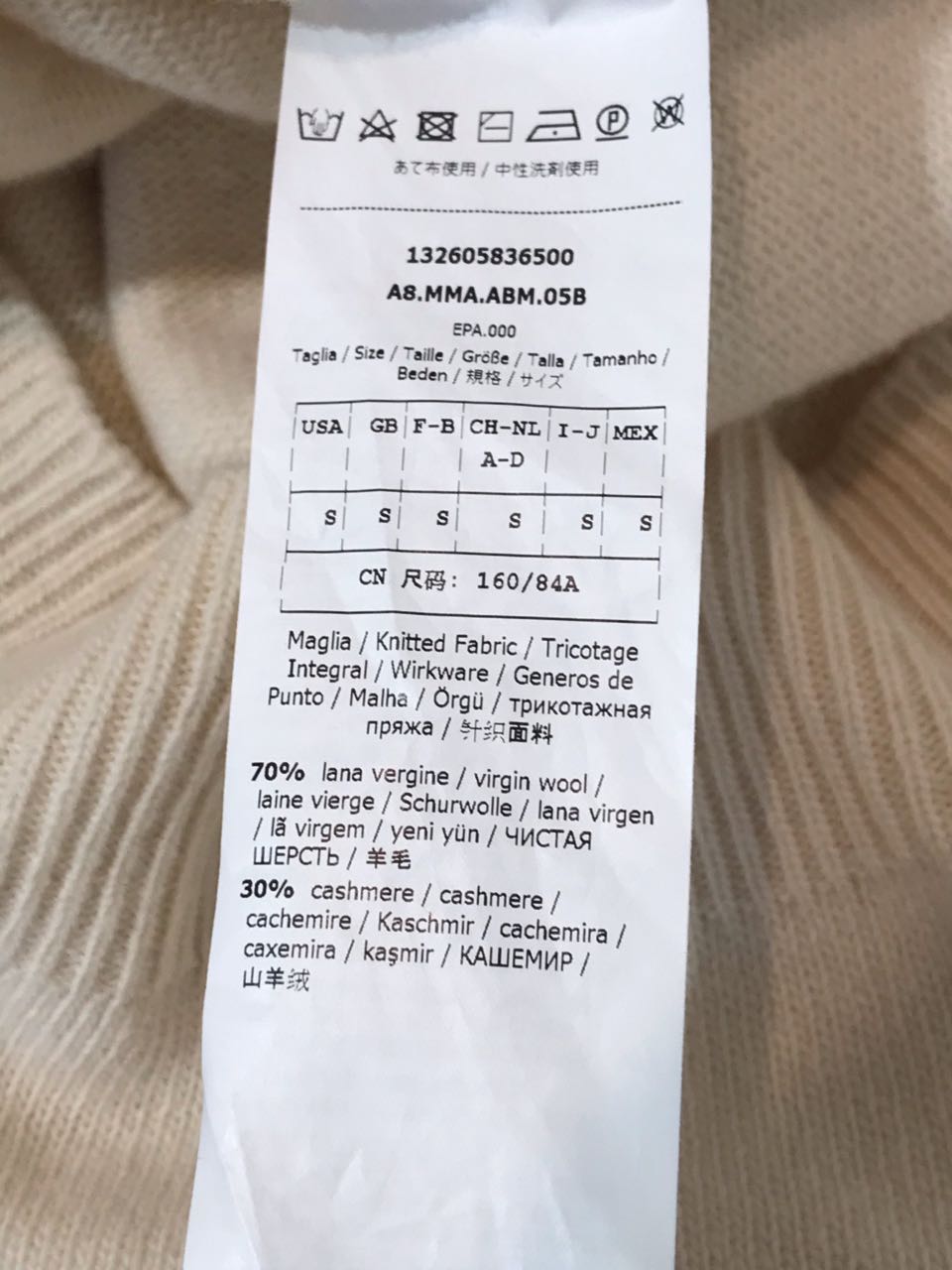 Robe pull en laine et cachemire beige, col roulé et manches longues.