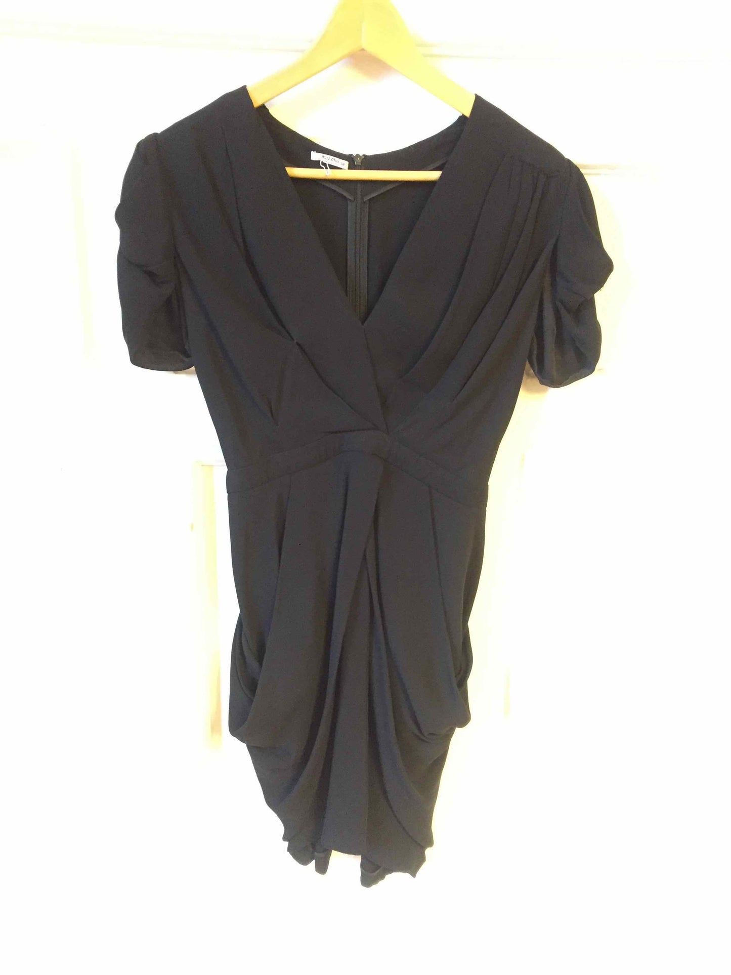 Petite robe noire avec manches courtes.