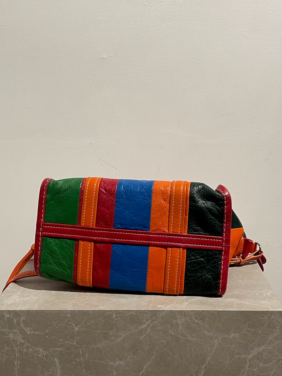 Sac à main en cuir effet vieilli rayé multicolore avec anse sur le dessus pour un porté main et bandoulière ajustable et amovible pour un porté crossbody. Fermeture zippée. Poche intérieure zippée et poche plate. Bijouterie argent.