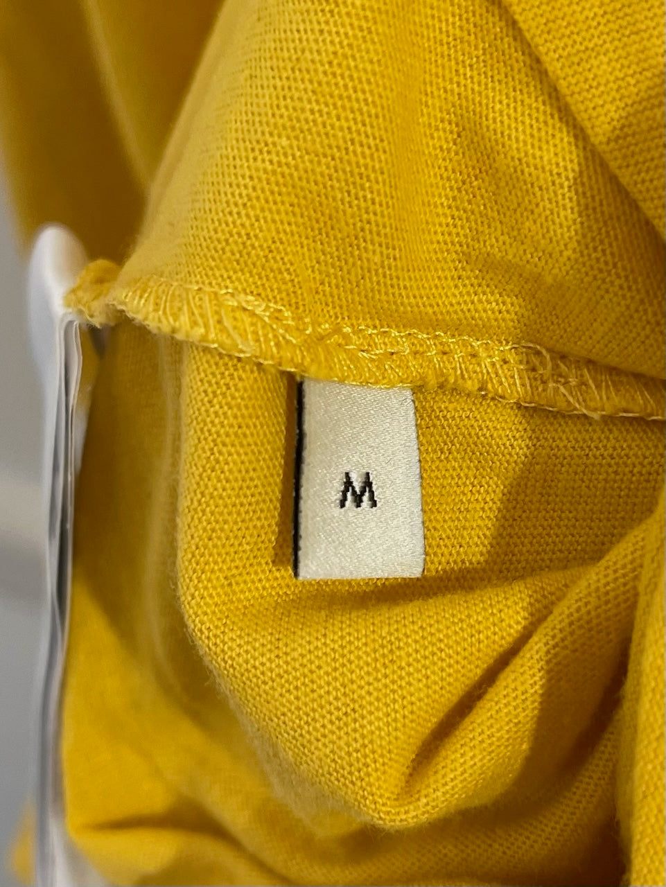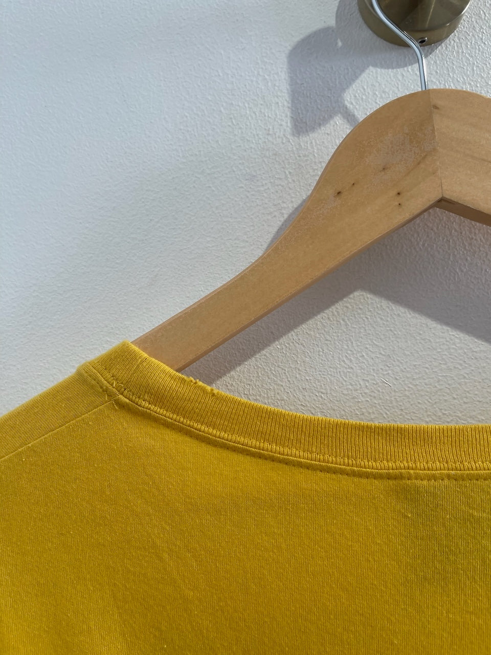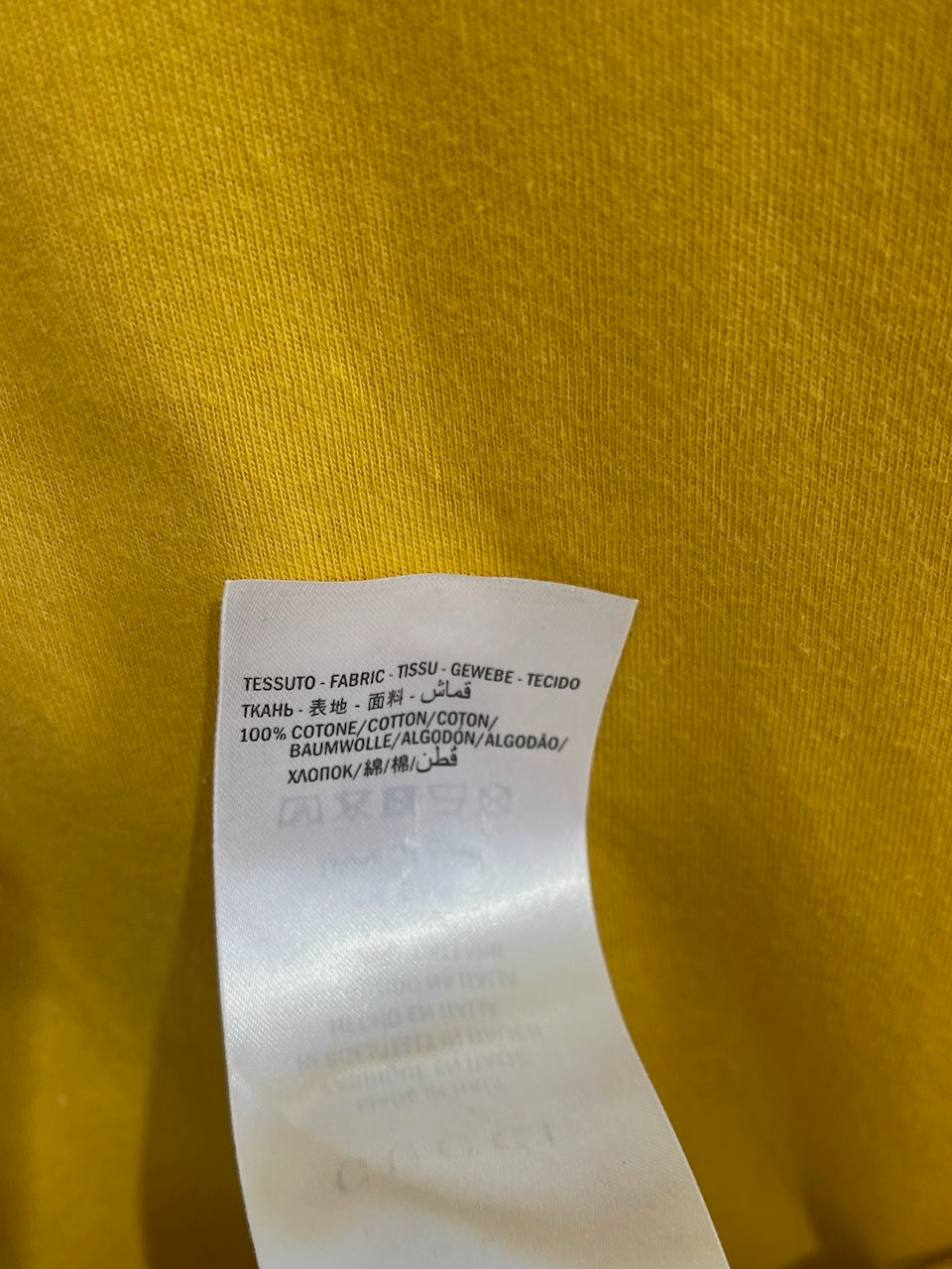 T-shirt à manches courtes en jersey de coton jaune avec imprimé Gucci vintage à l'avant. Col rond et manches courtes. Effet usé d'origine sur les bords du col. Coupe ample.
