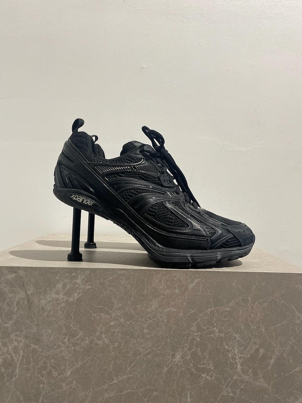 Baskets basses en maille et nylon noir avec talons et fermeture à lacets. Effet usé d'origine.