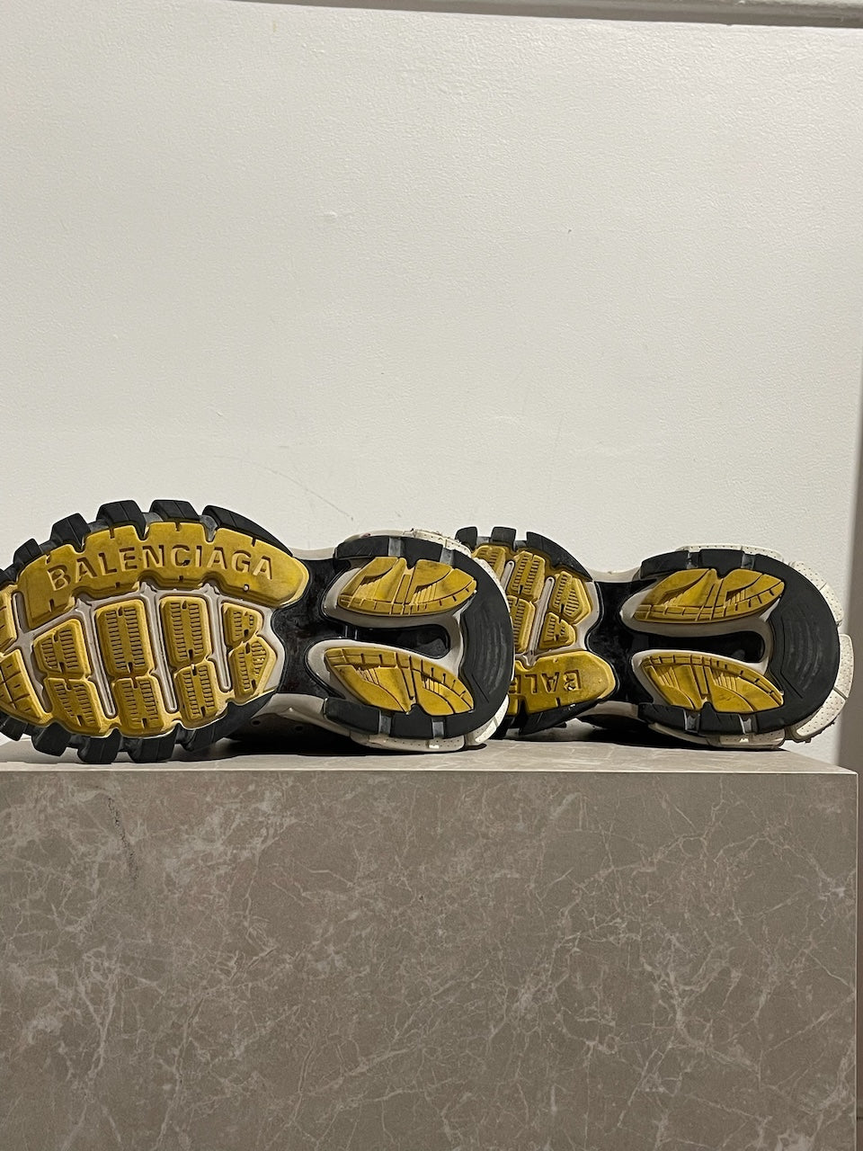 Baskets basses en maille et nylon gris et jaune avec fermeture à lacets et semelle épaisse en gomme.