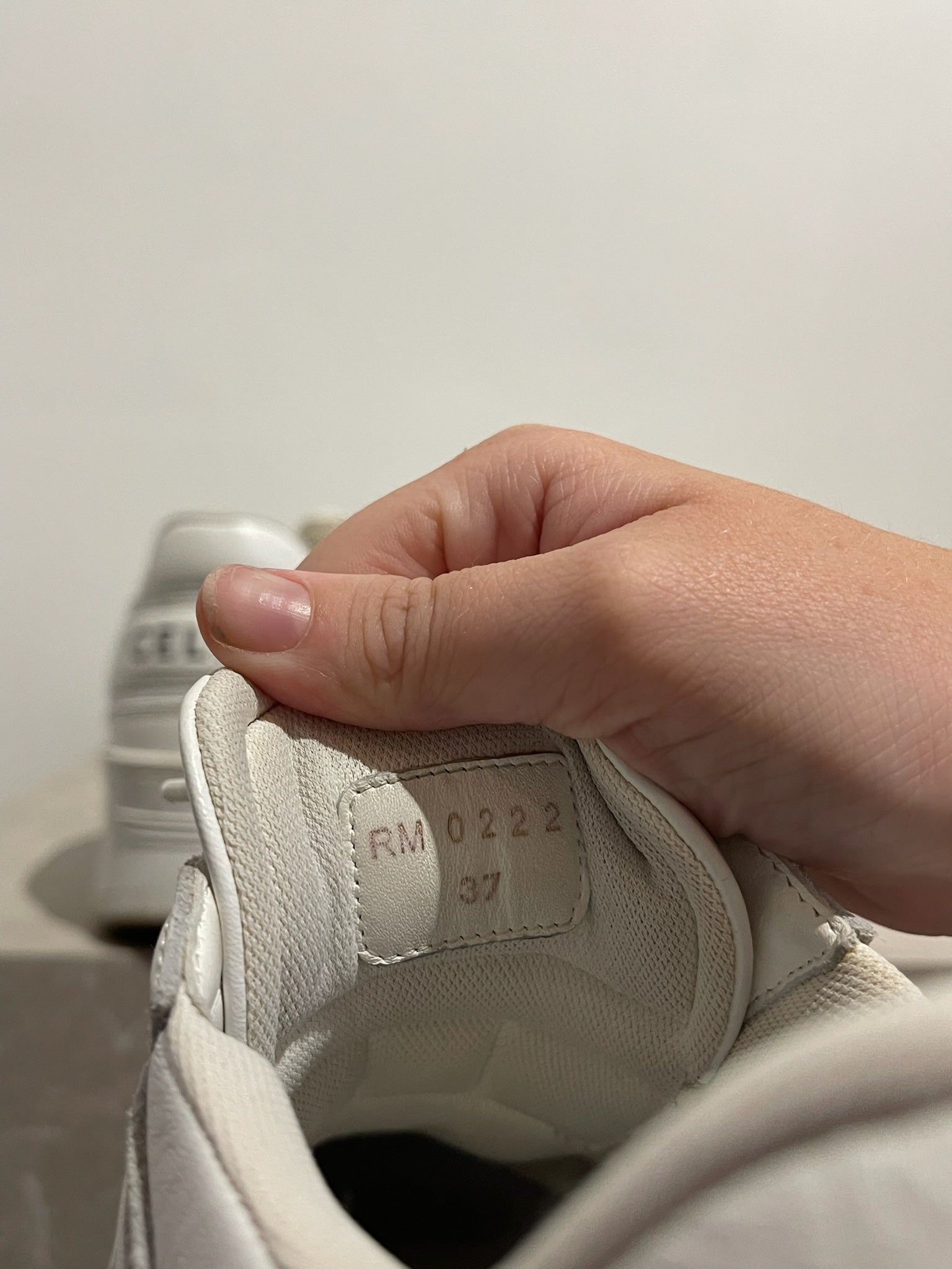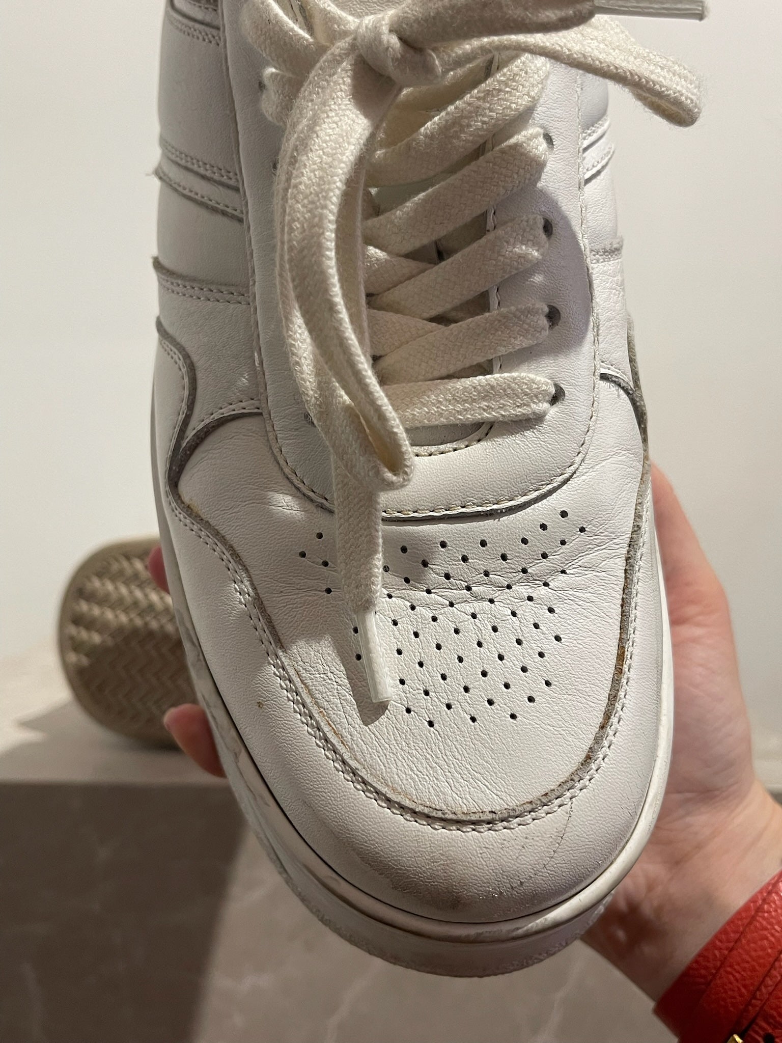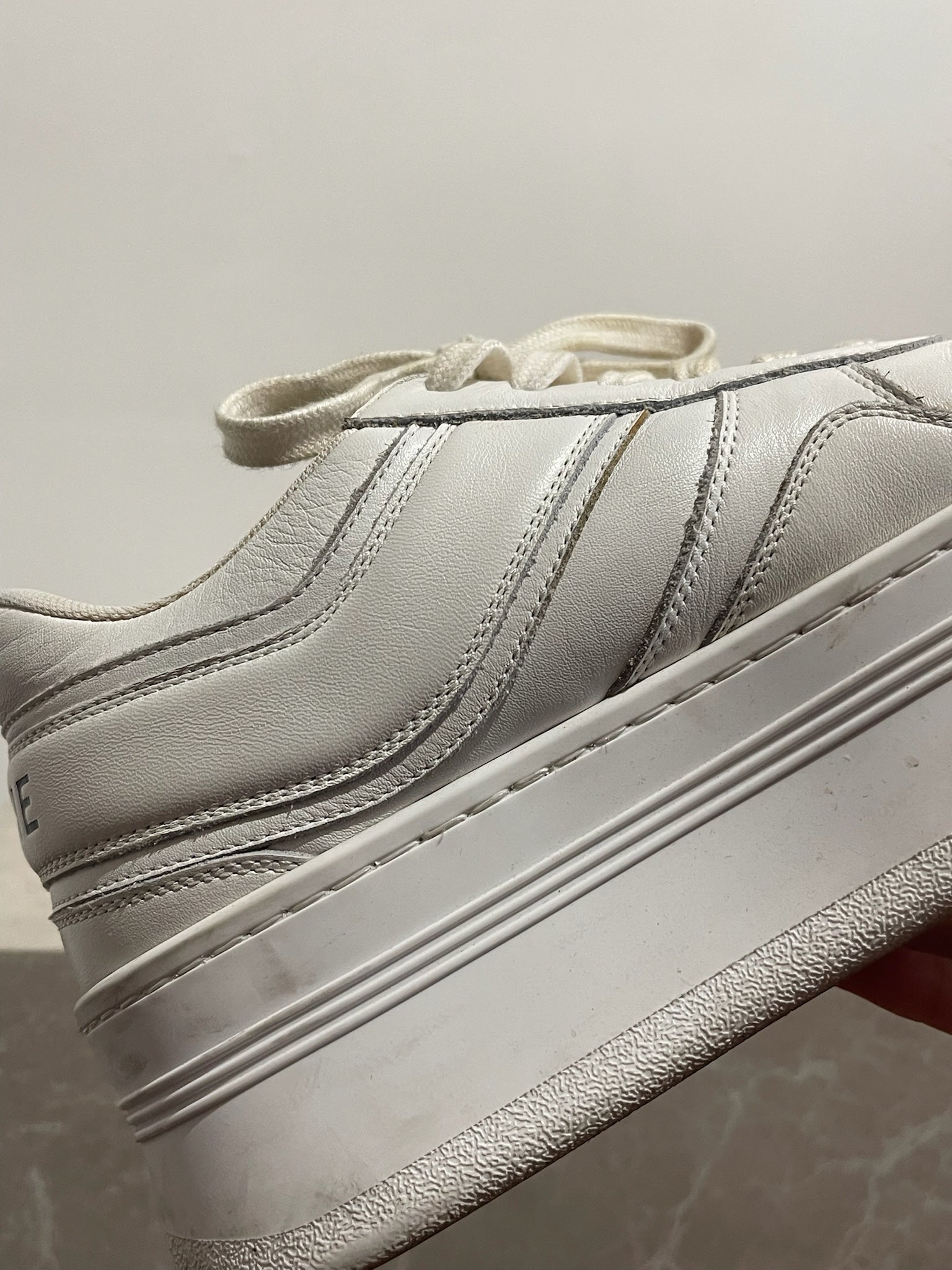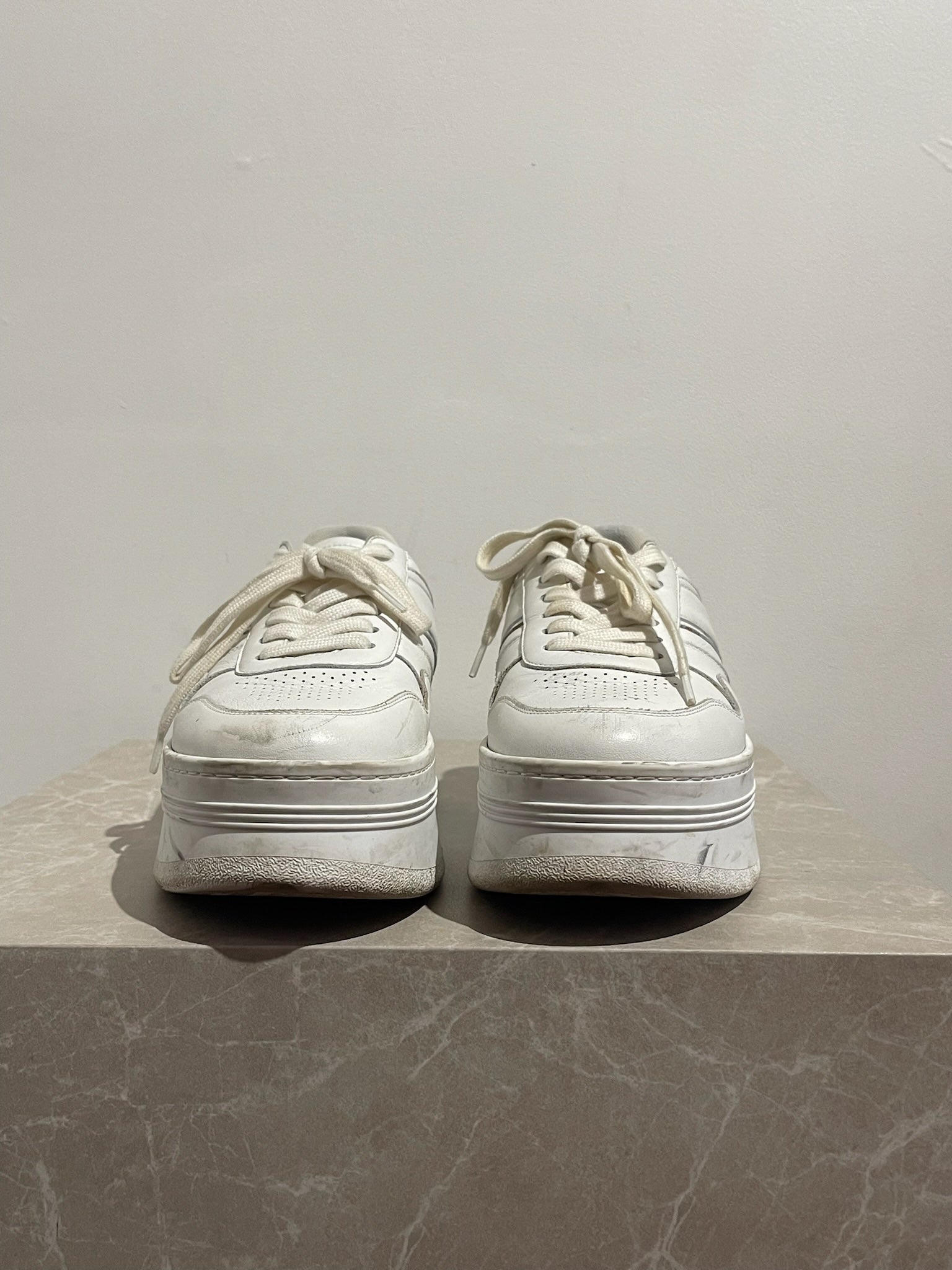 Baskets compensées en cuir blanc signé Céline sur la semelle et au dos de la basket. Fermeture à lacets.