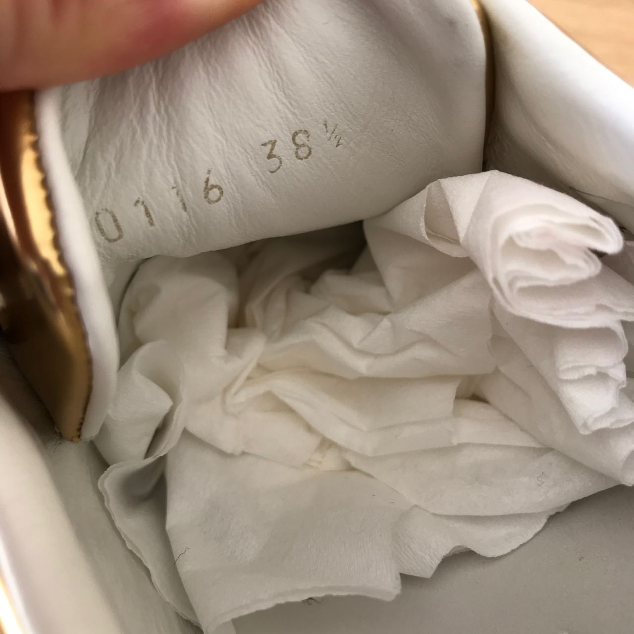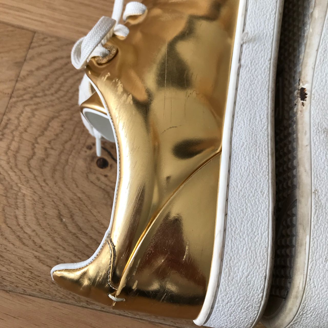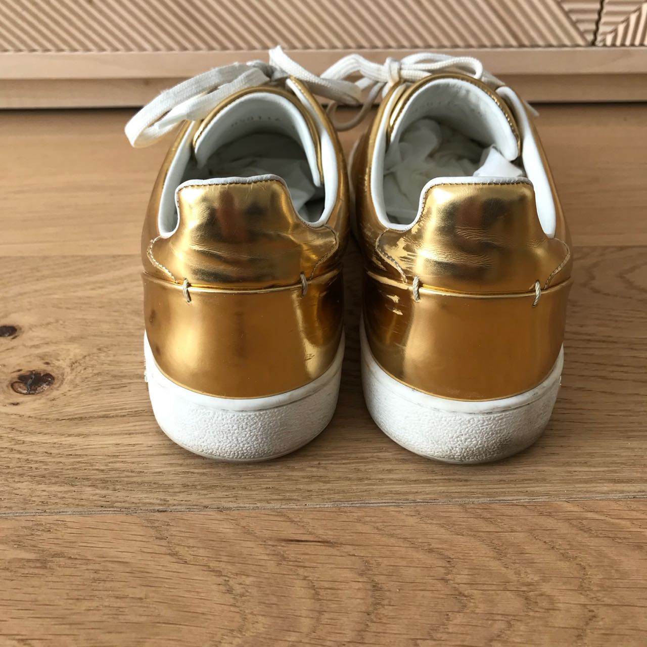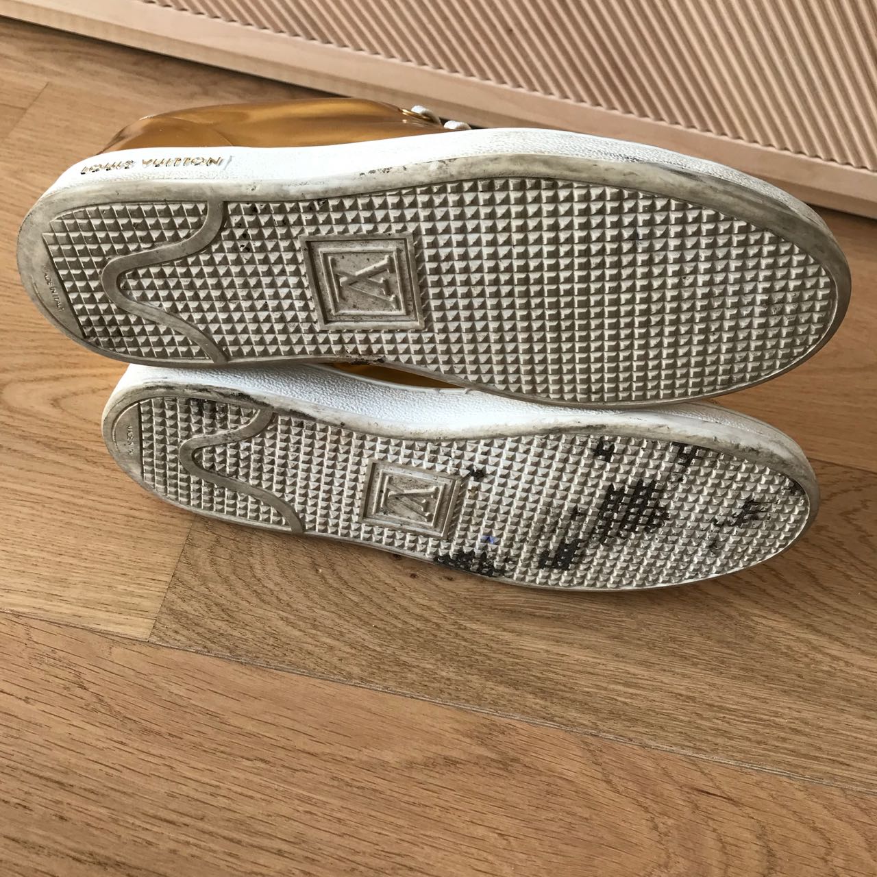 Baskets à lacets en cuir miroir doré. Inscription Louis Vuitton sur la semelle.