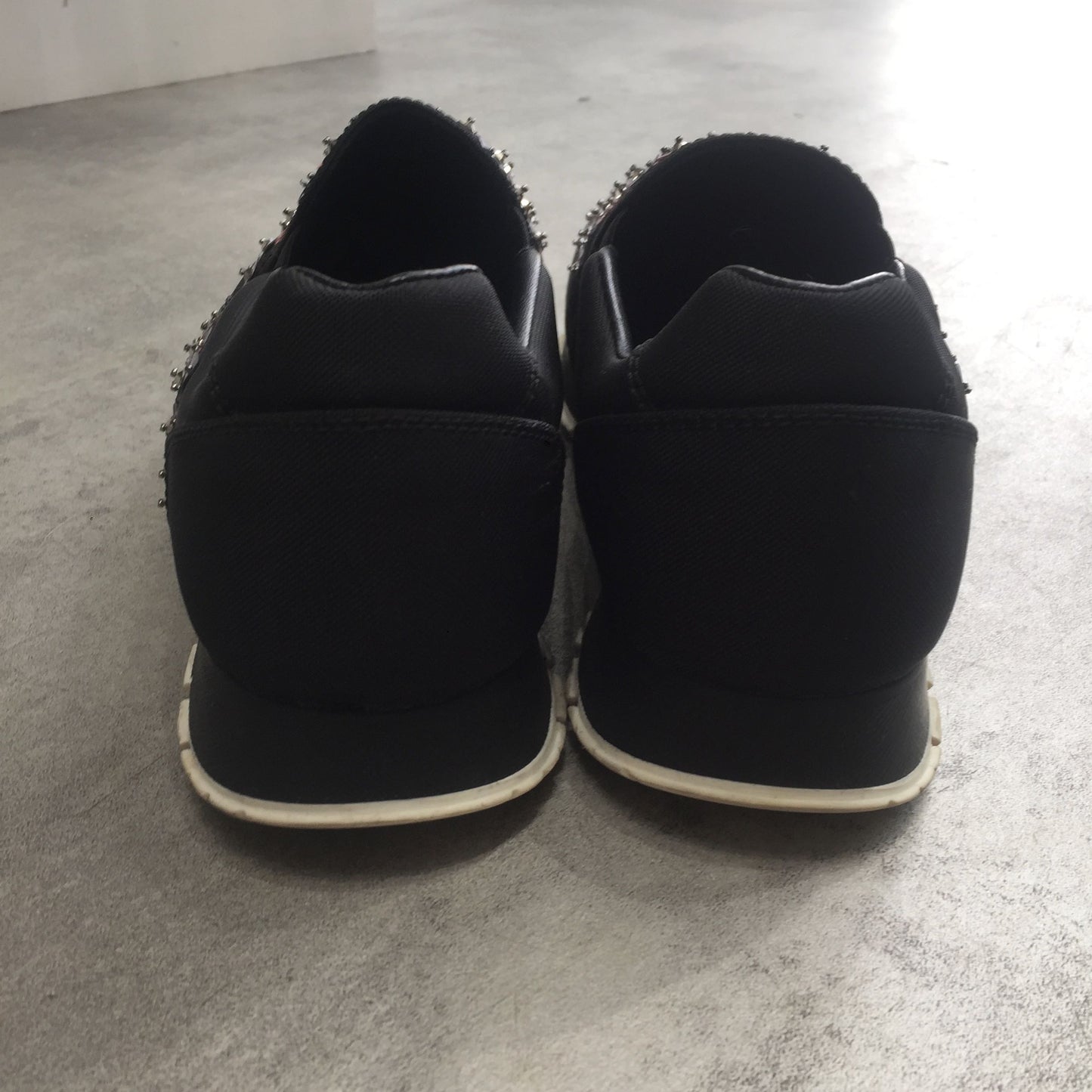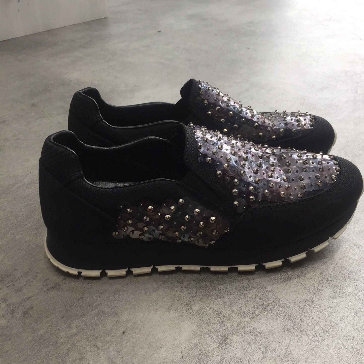 Baskets en toile noire et perles.