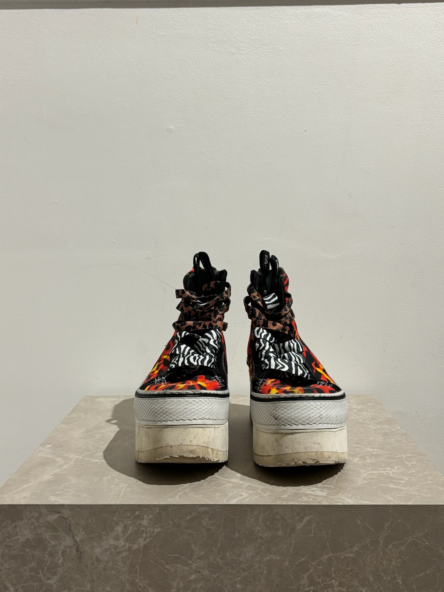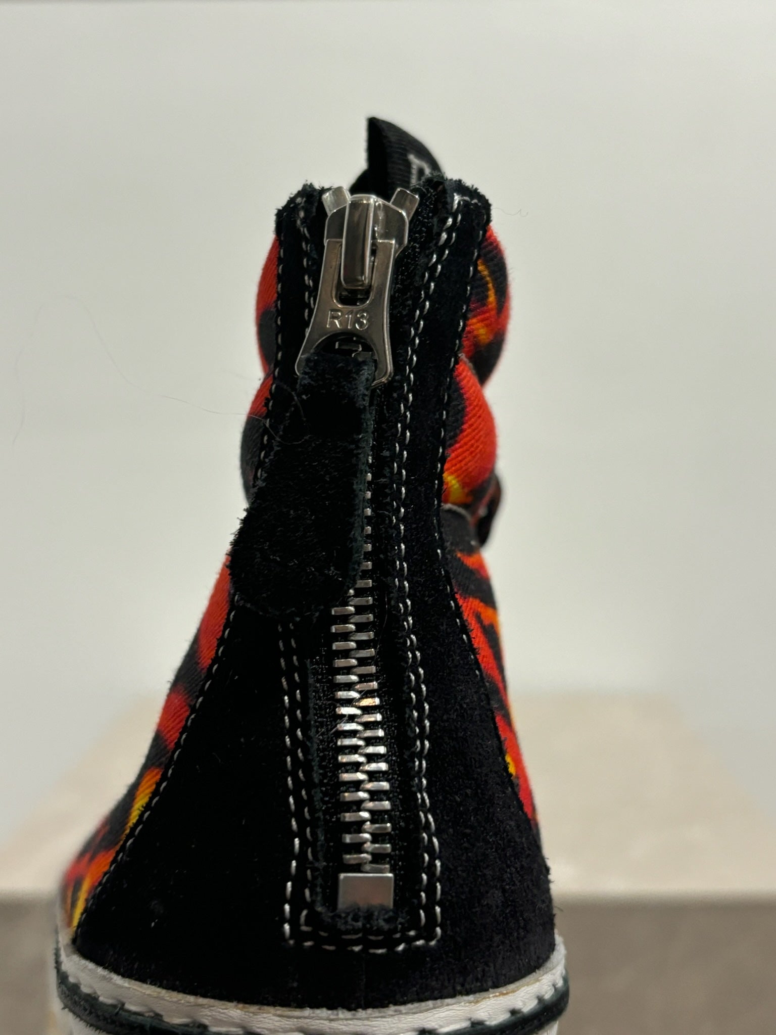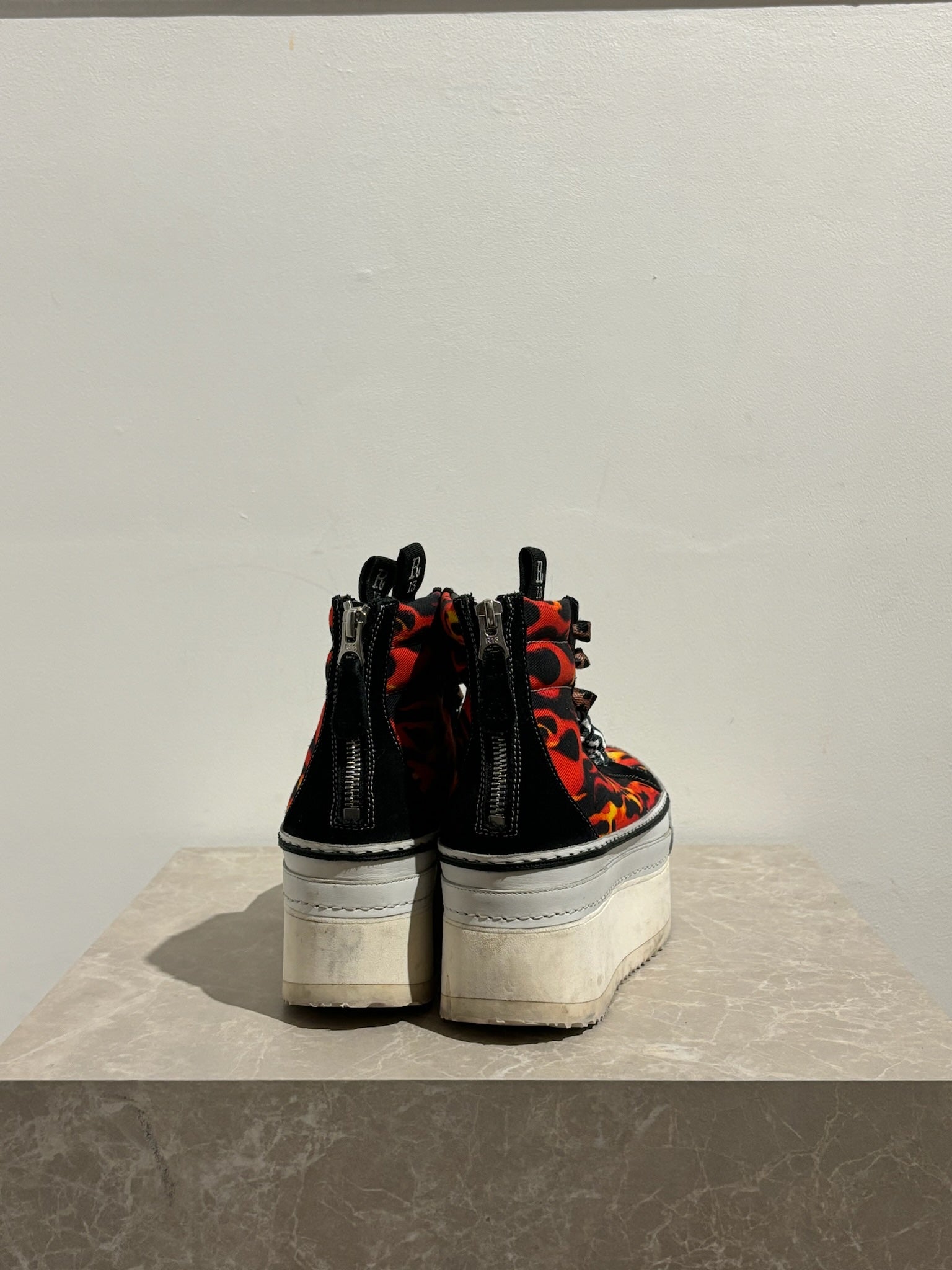 Baskets montantes à plateforme à motif flammes avec ouverture zip à l'arrière et fermeture à lacets sur le devant R13.