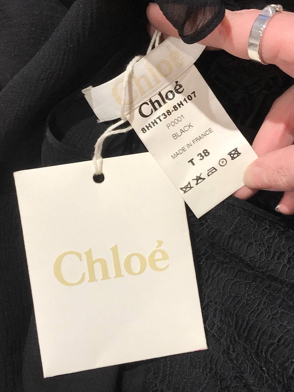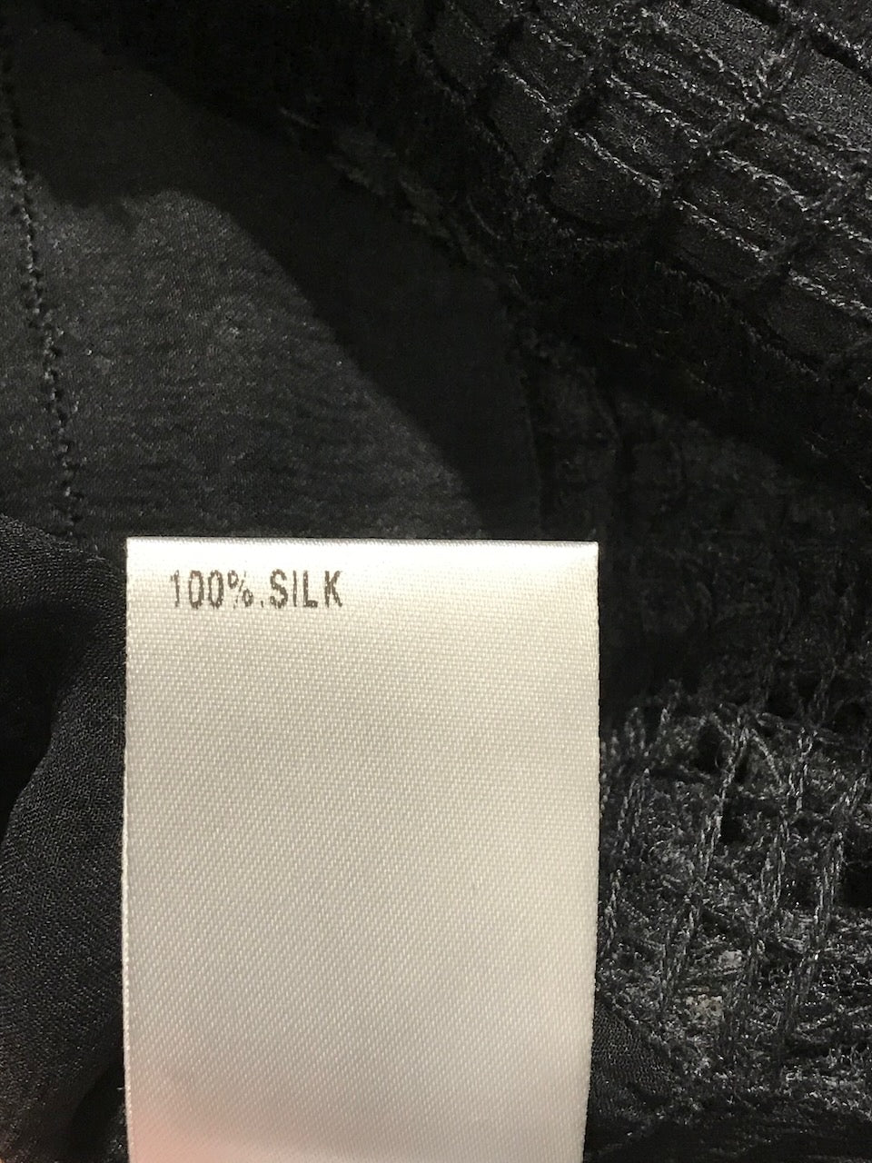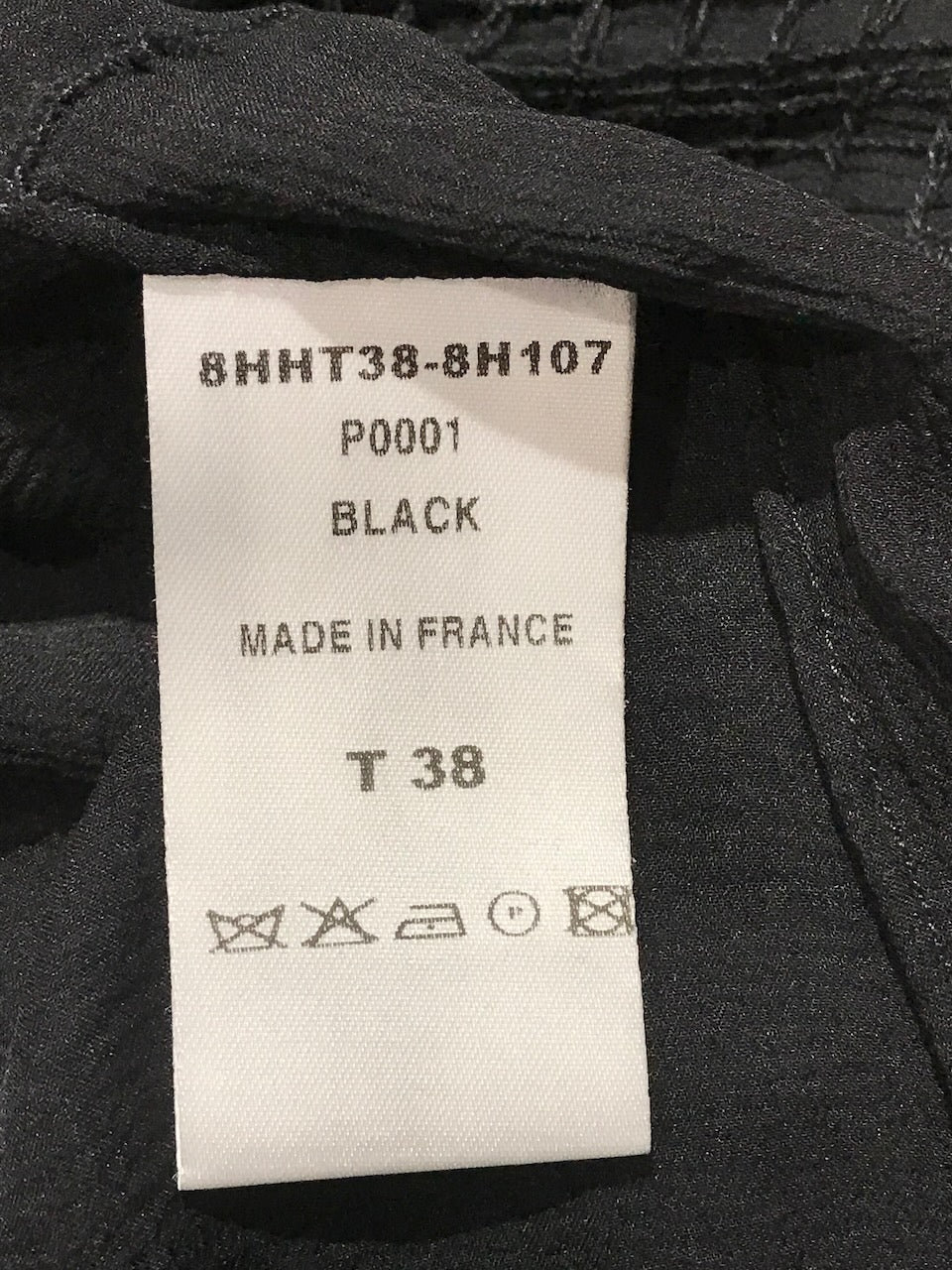 Blouse en organza de soie noire avec détails broderies et strass. 100% soie.