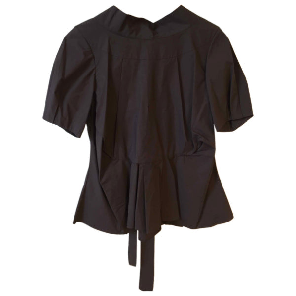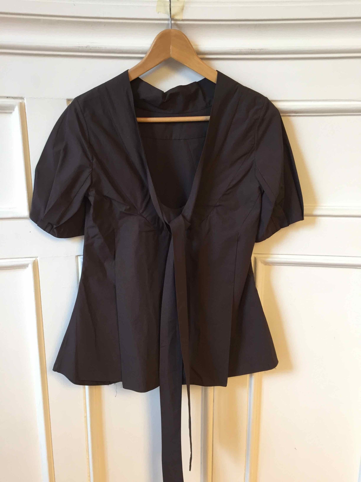 Très jolie blouse en coton marron, décolleté dans le dos avec un noeud.