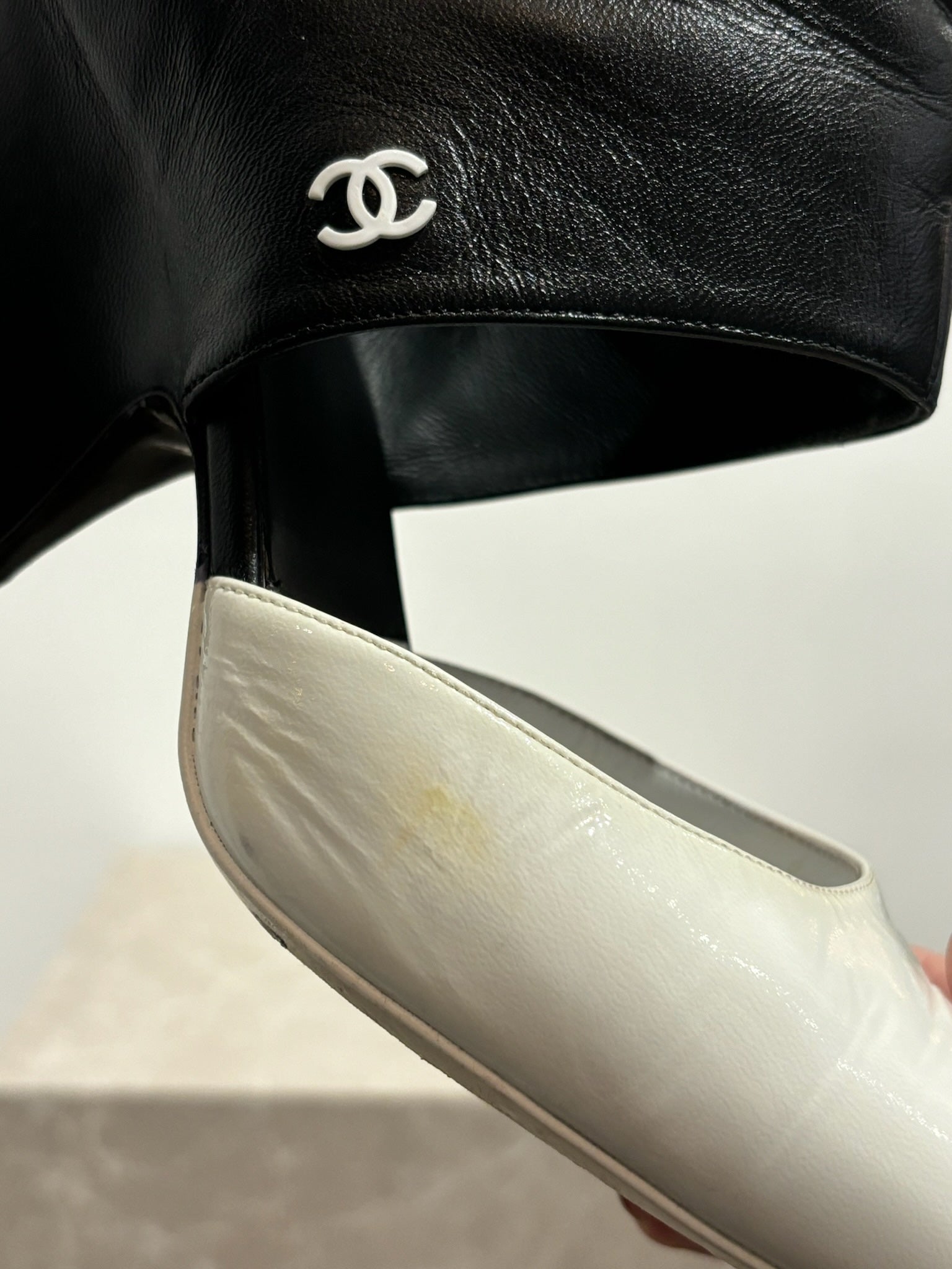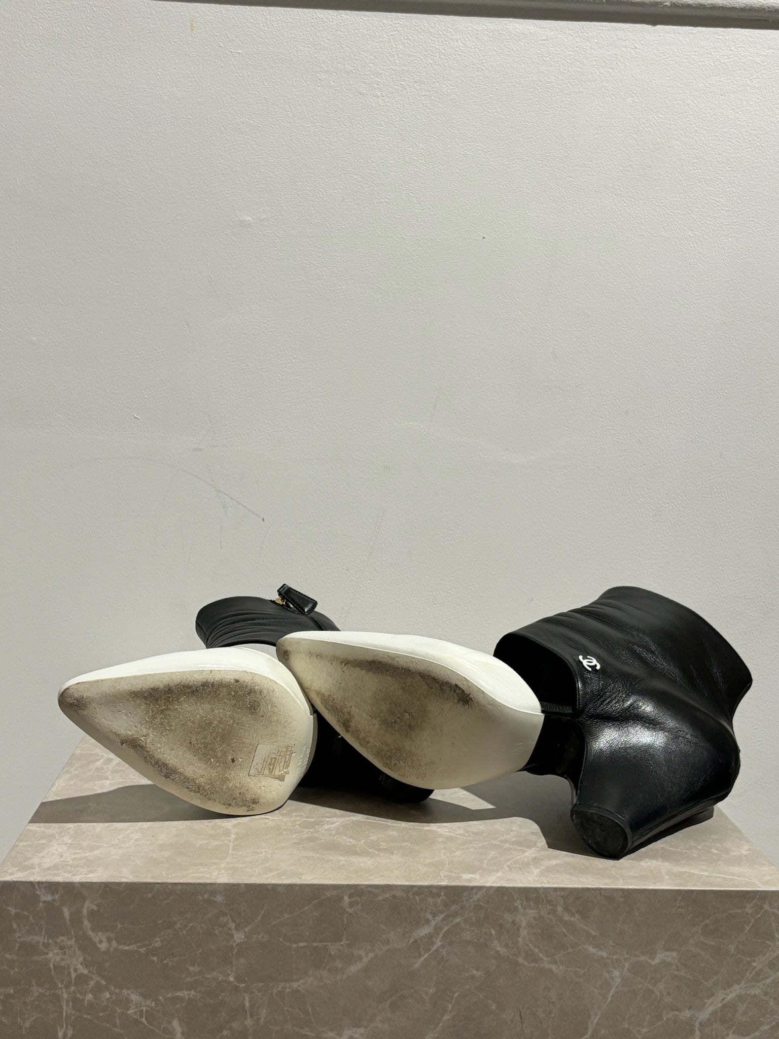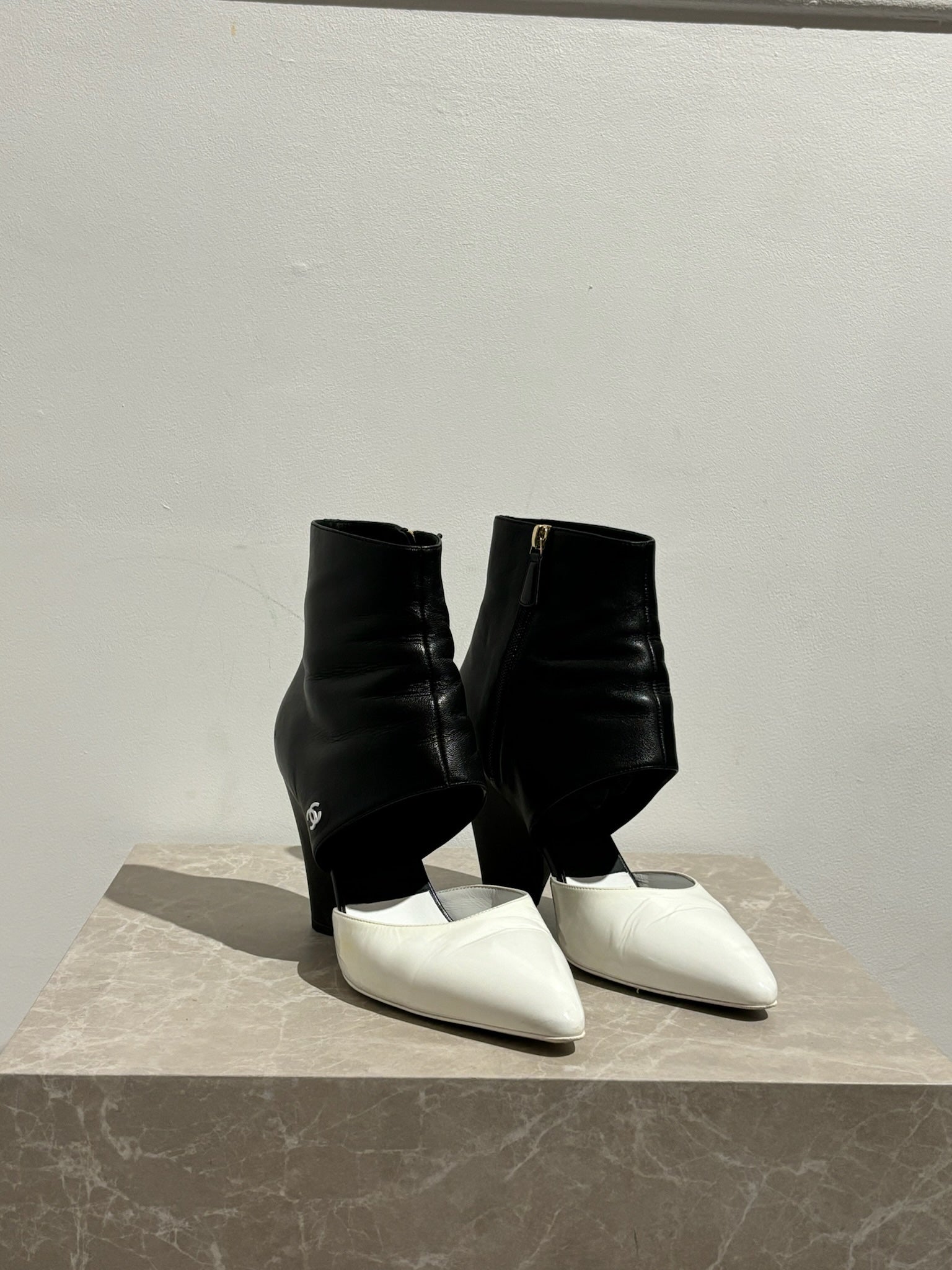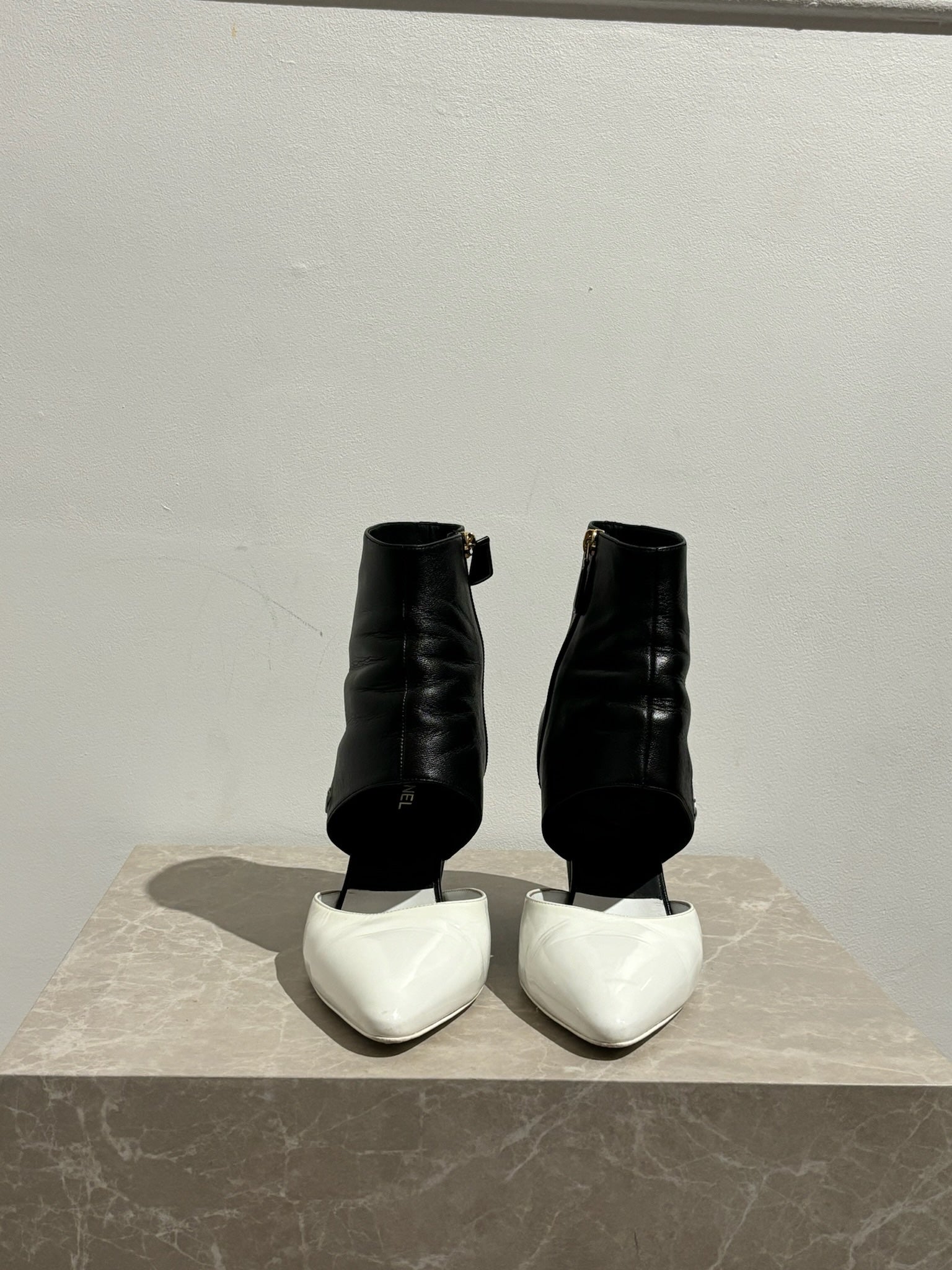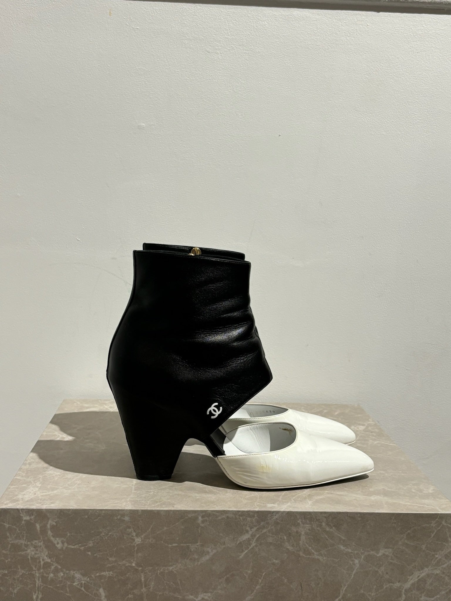 Boots Chanel noir et blanc,