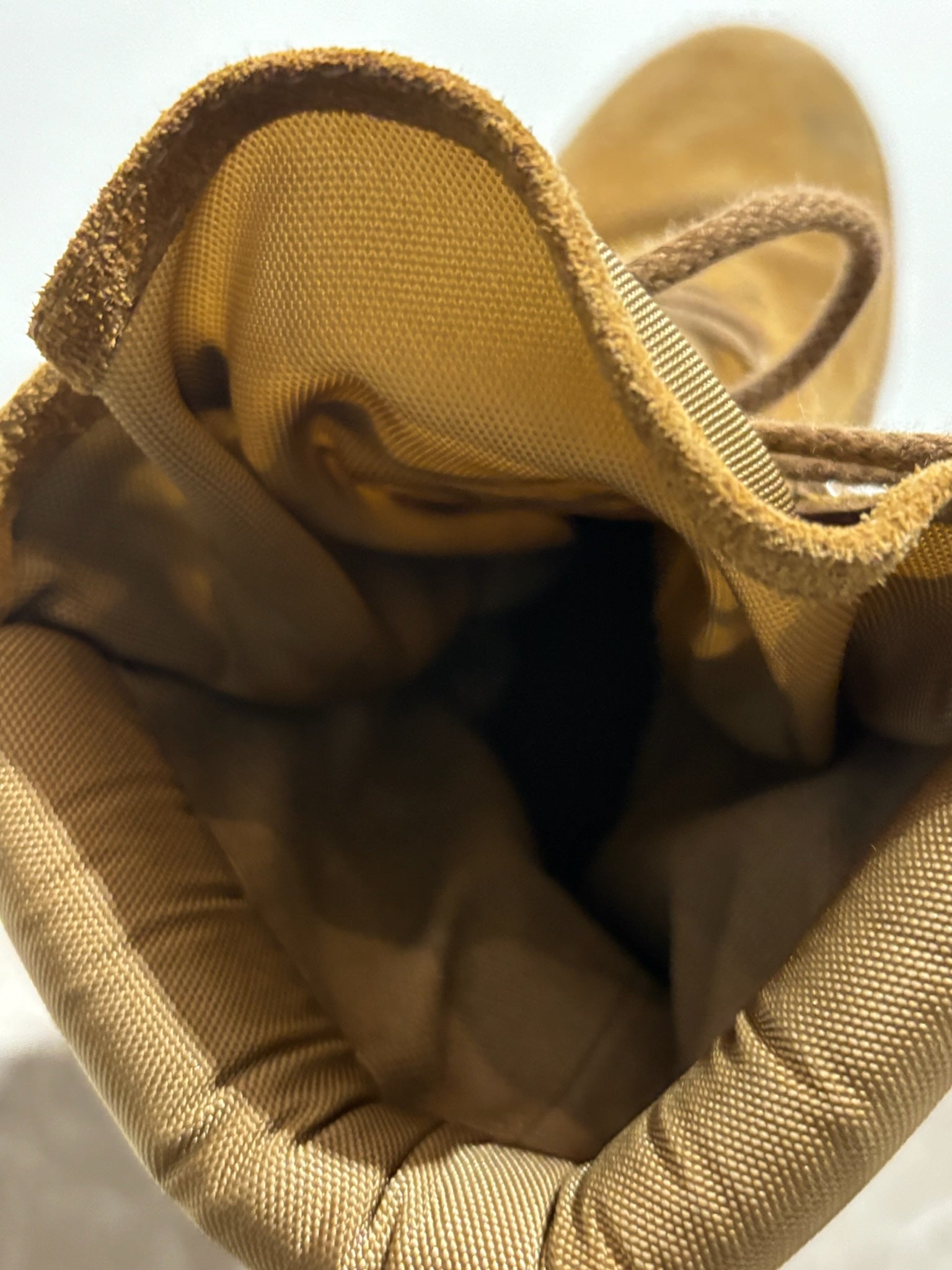 Très bon état, il faut noter que le daim est patiné à certains endroits (voir photos). Avec dustbag et boite.