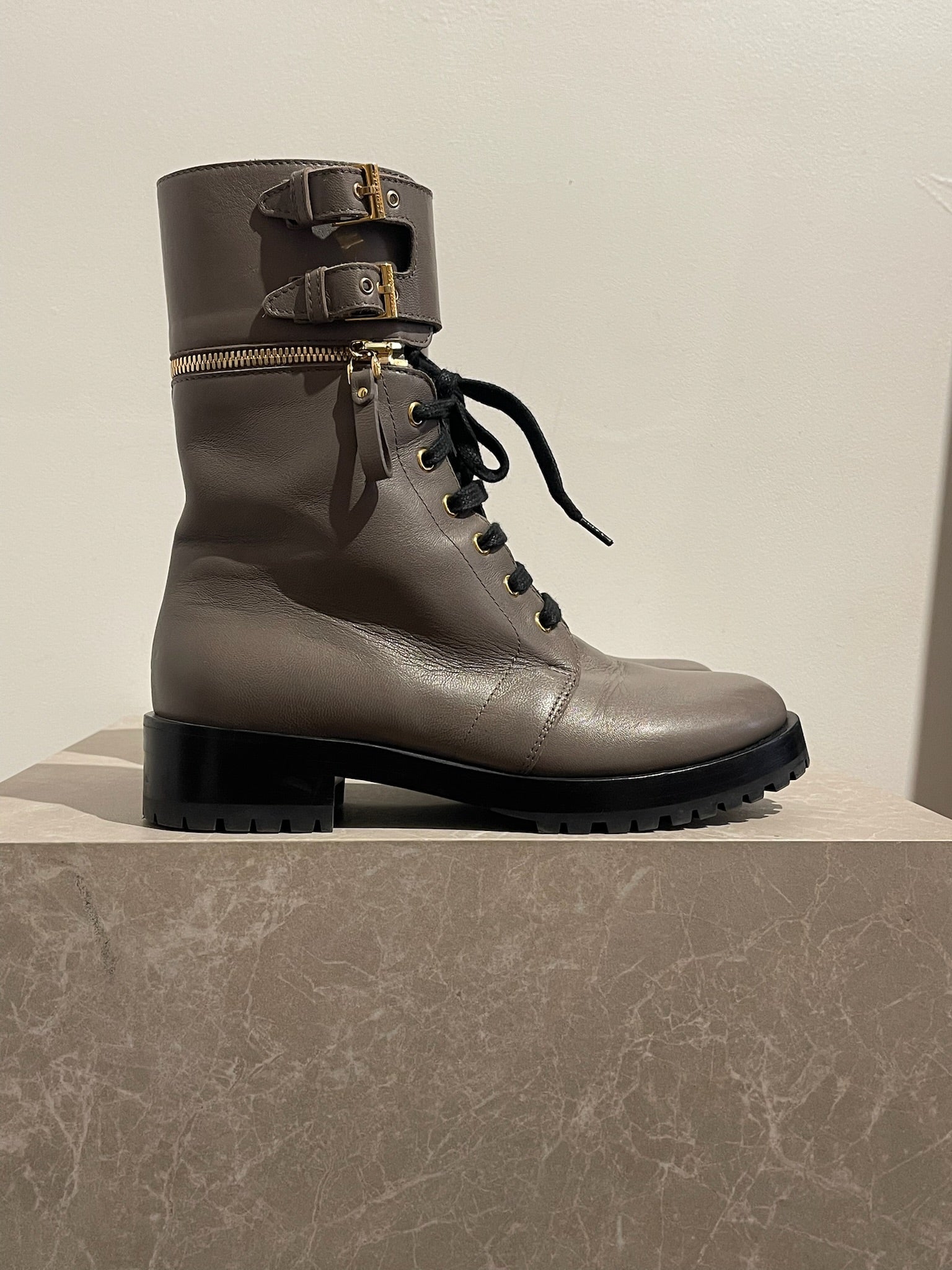 Rangers en cuir gris avec fermeture à lacets noir. Elles peuvent être transformées de façon basse grâce à un zip pour enlever la partie supérieure avec les sangles.