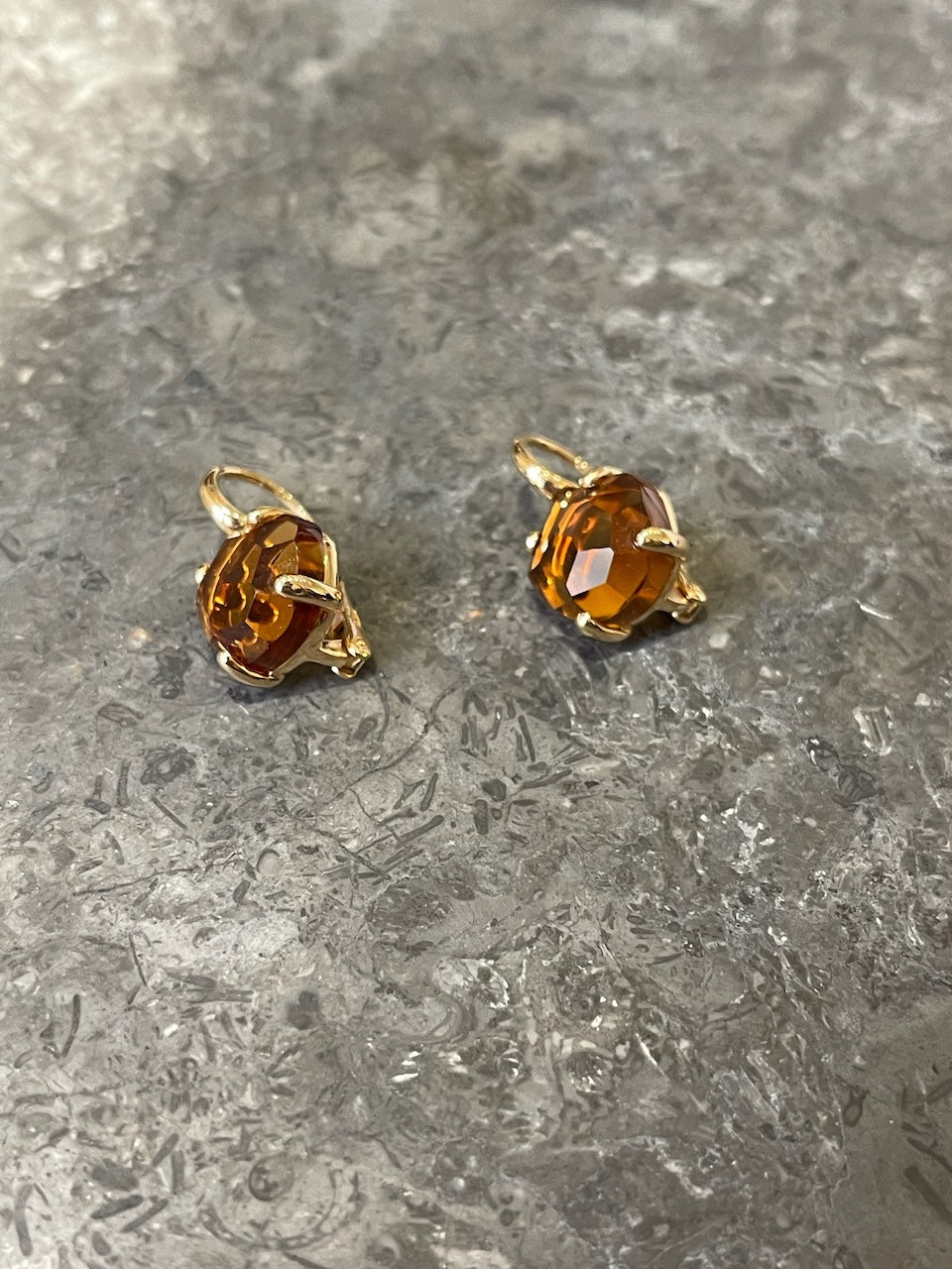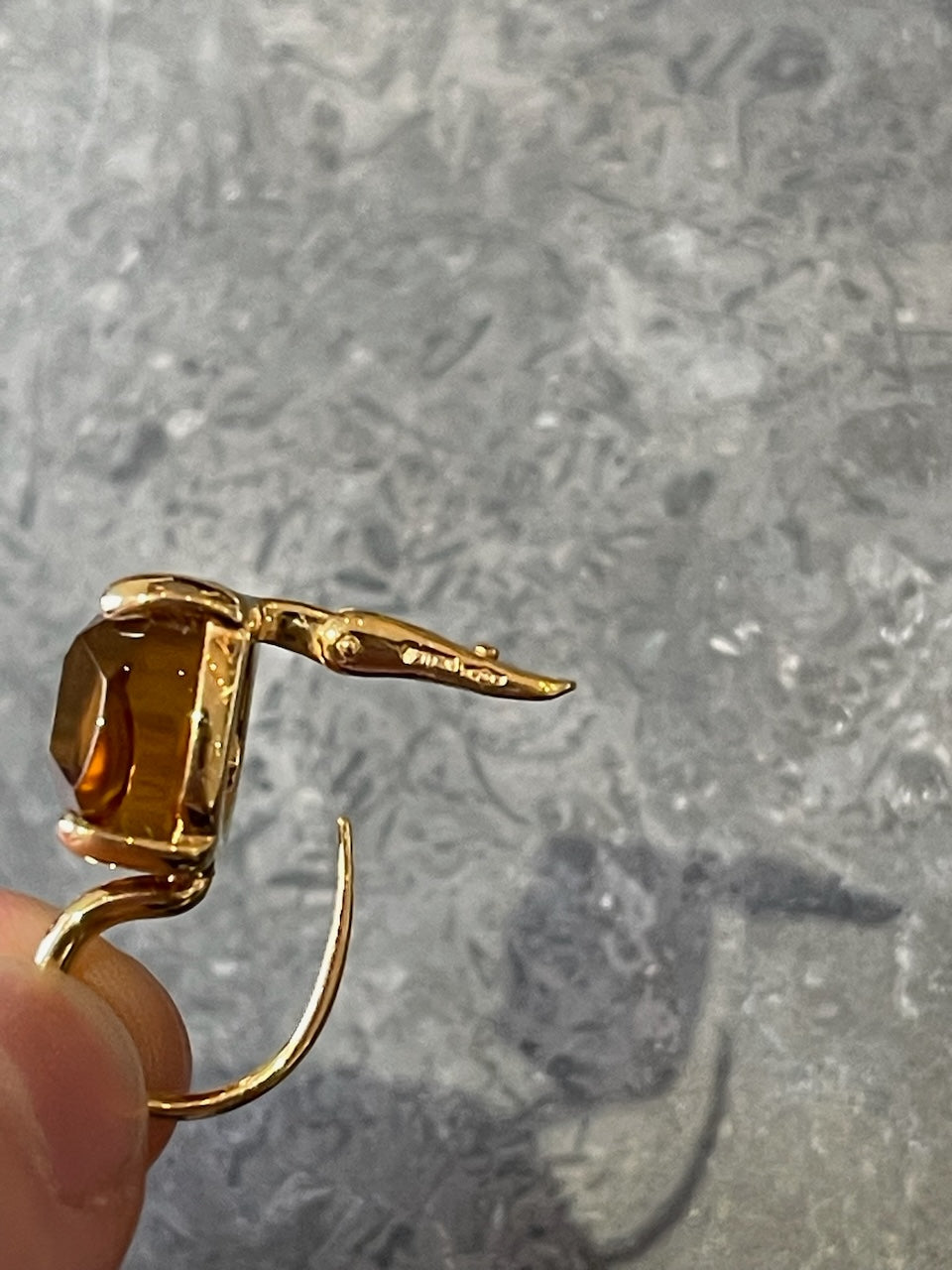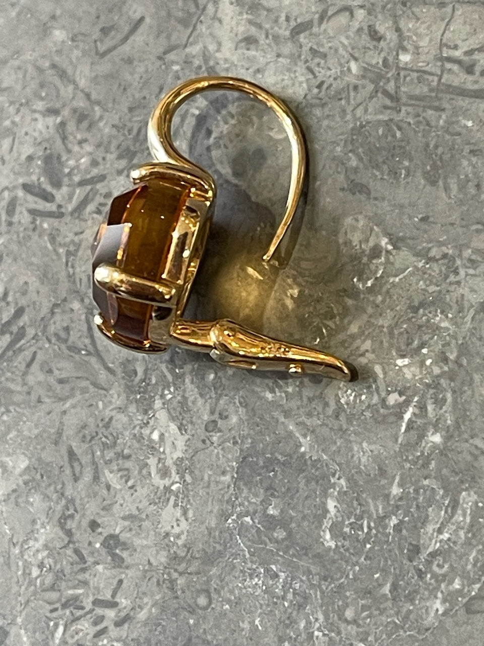 Boucles d'oreilles en or jaune 18 K avec 2 pierres Quartz couleur ambre. Fermoir dormeuse.