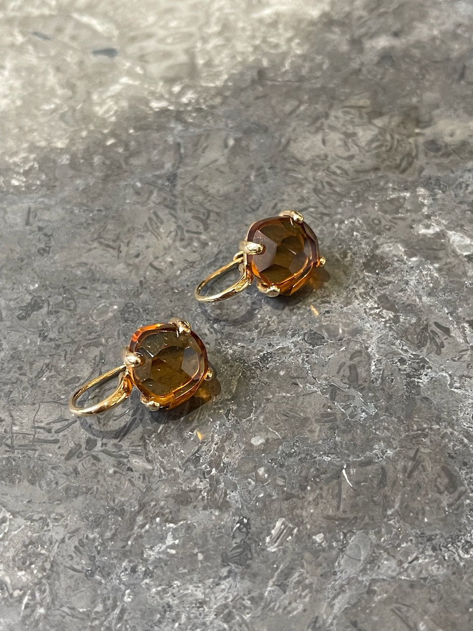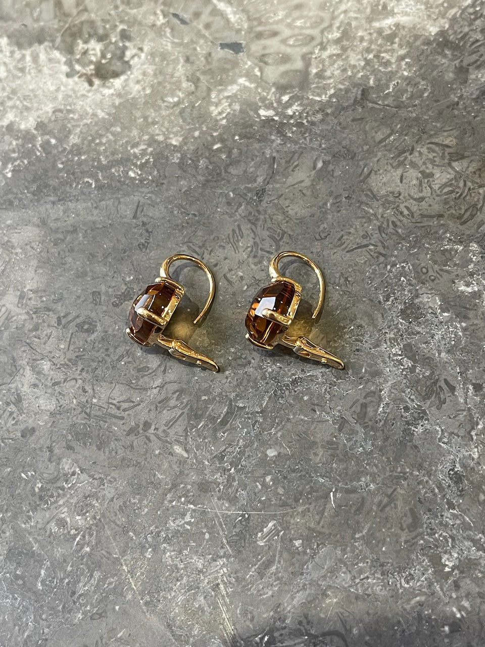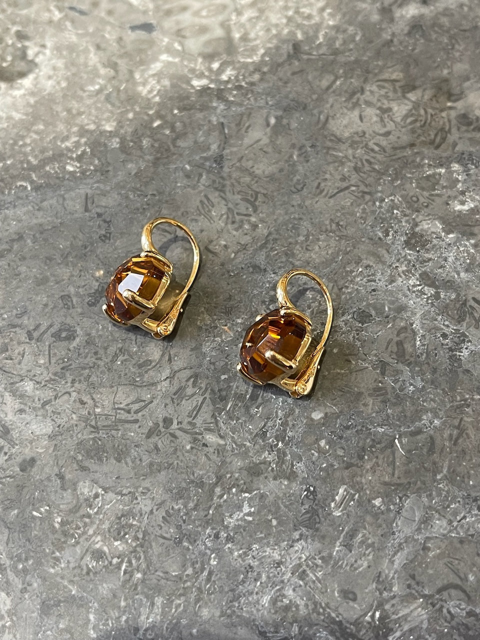 Boucles d'oreilles en or jaune 18 K avec 2 pierres Quartz couleur ambre. Fermoir dormeuse.
