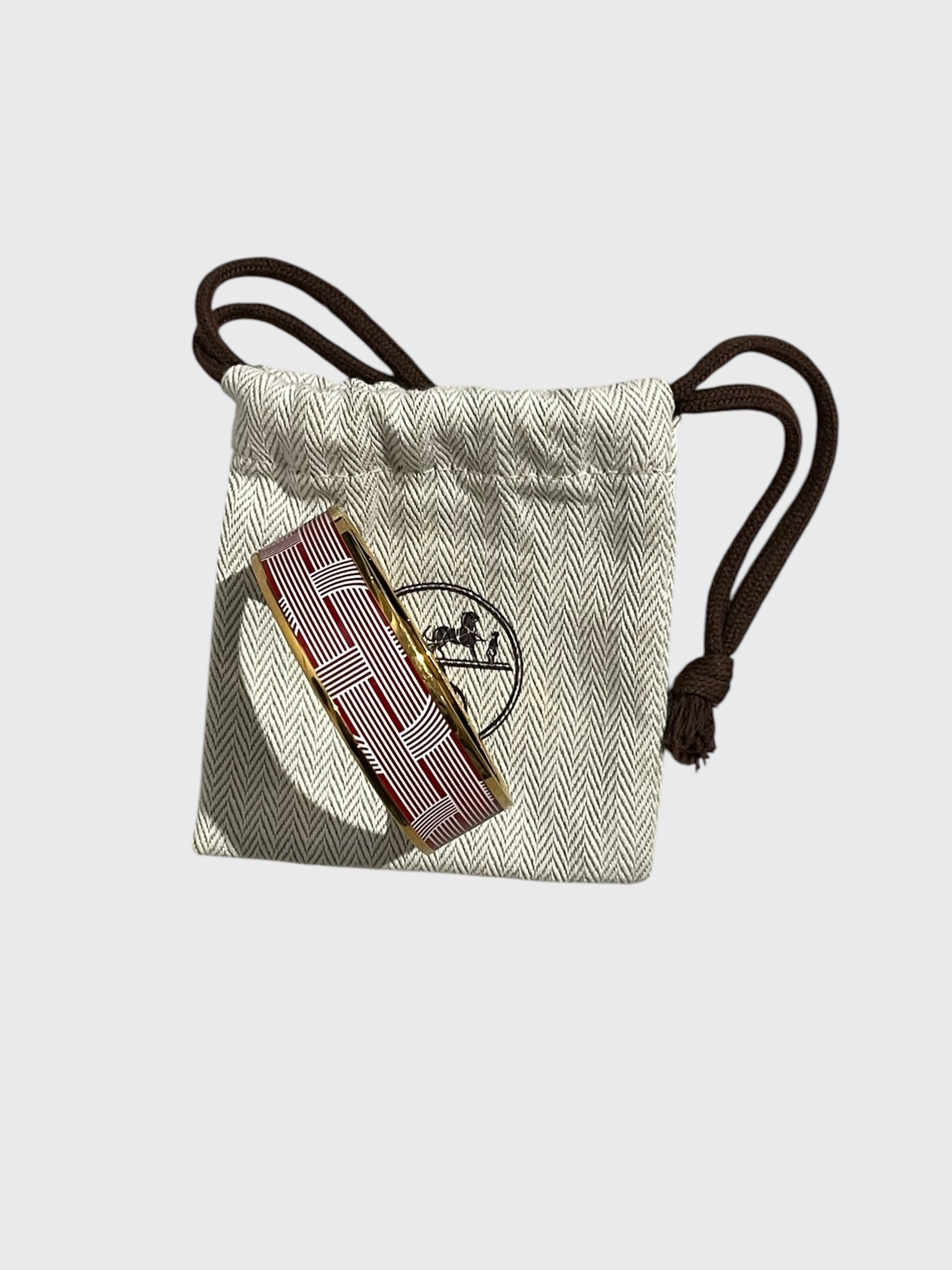 Bracelet jonc en émail doré avec imprimé coloré: rouge et blanc.