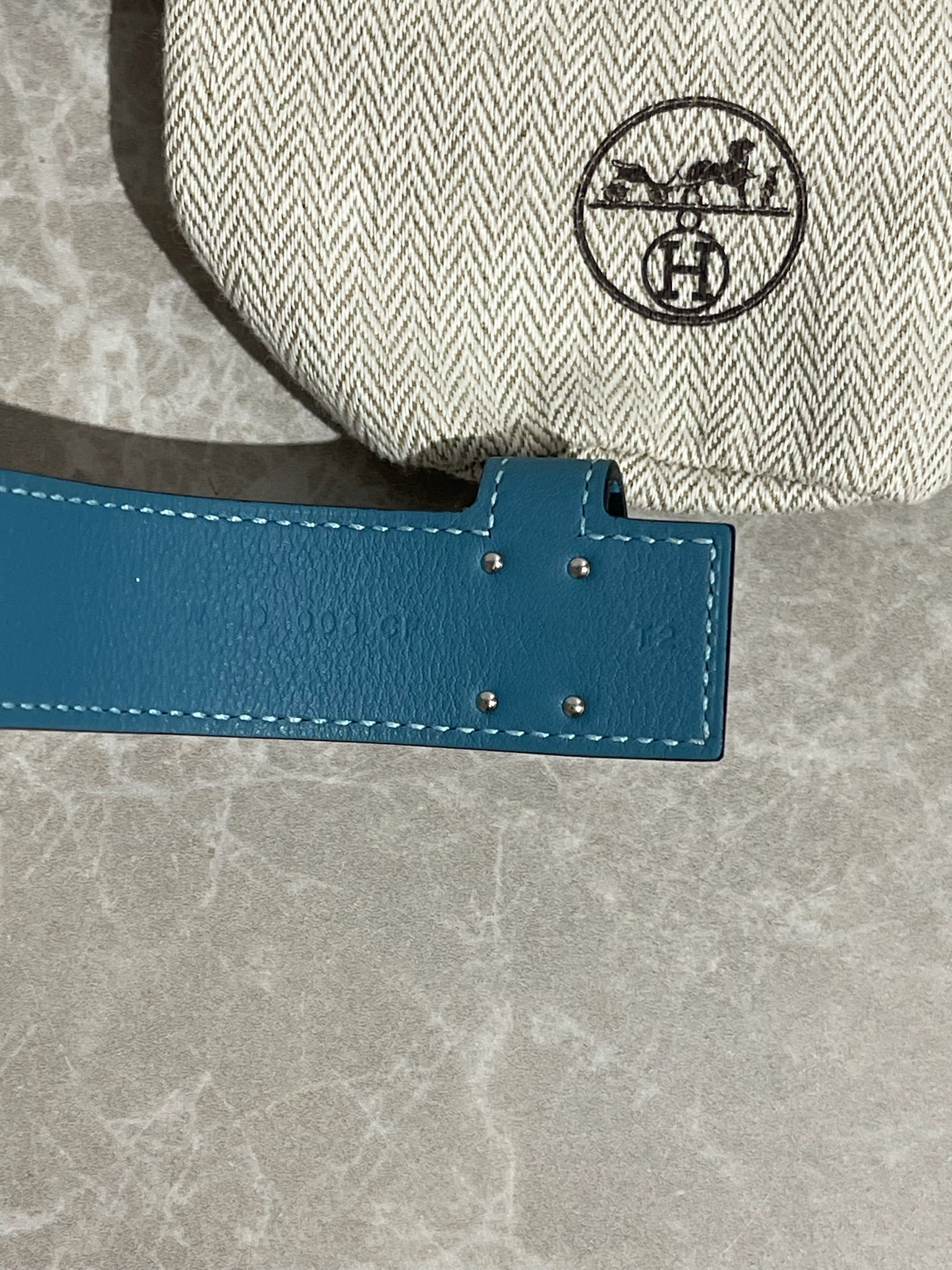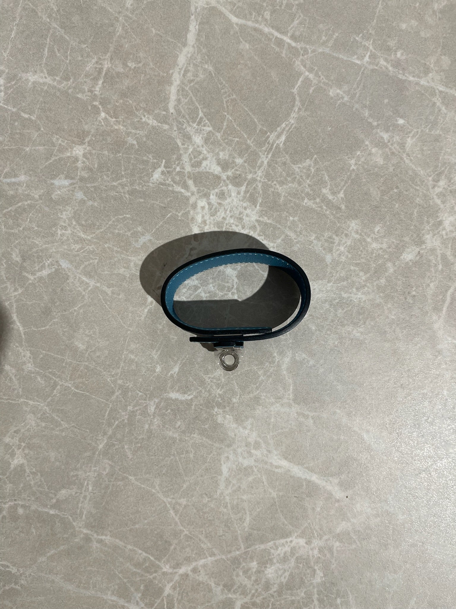 Bracelet en cuir de veau Swift bleu orné de l'iconique fermoir Kelly. Finitions métallique palladium.
