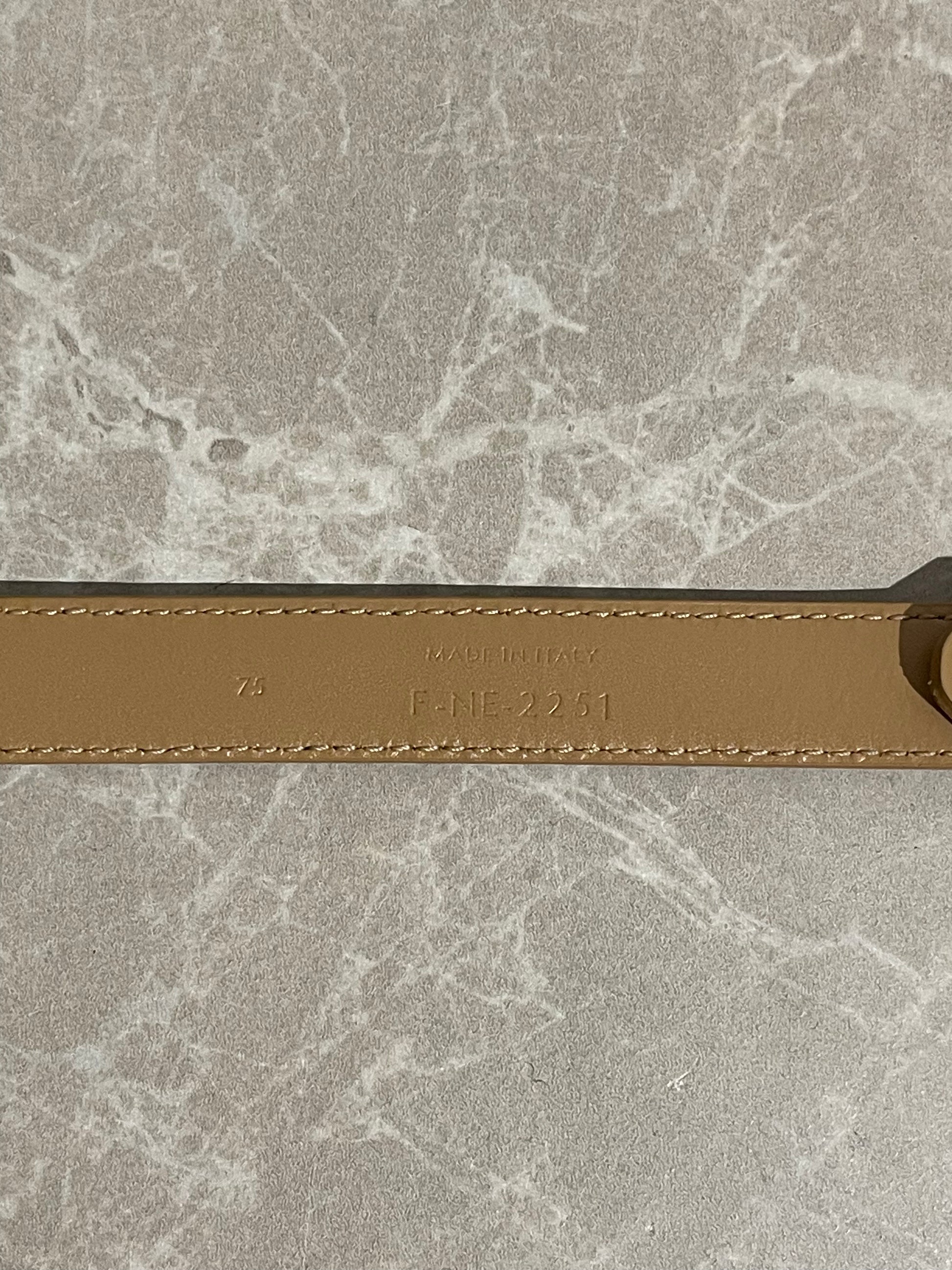 Ceinture en cuir lisse beige avec boucle ajustable Triomphe dorée.