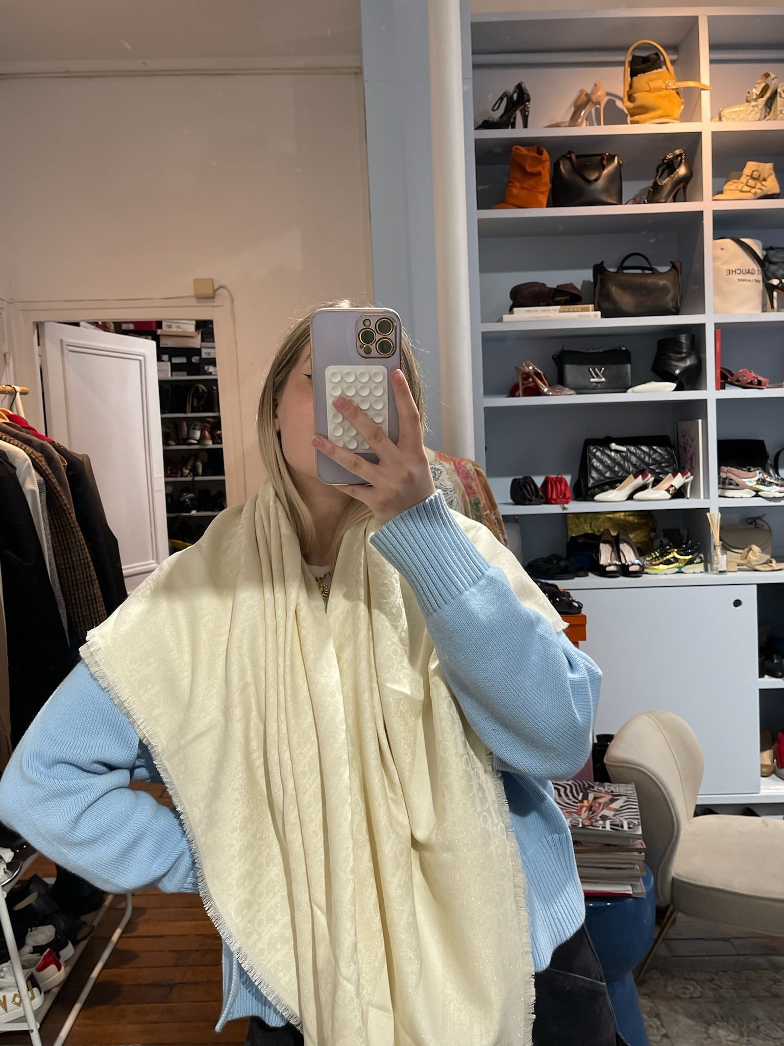 Châle Dior Oblique écru