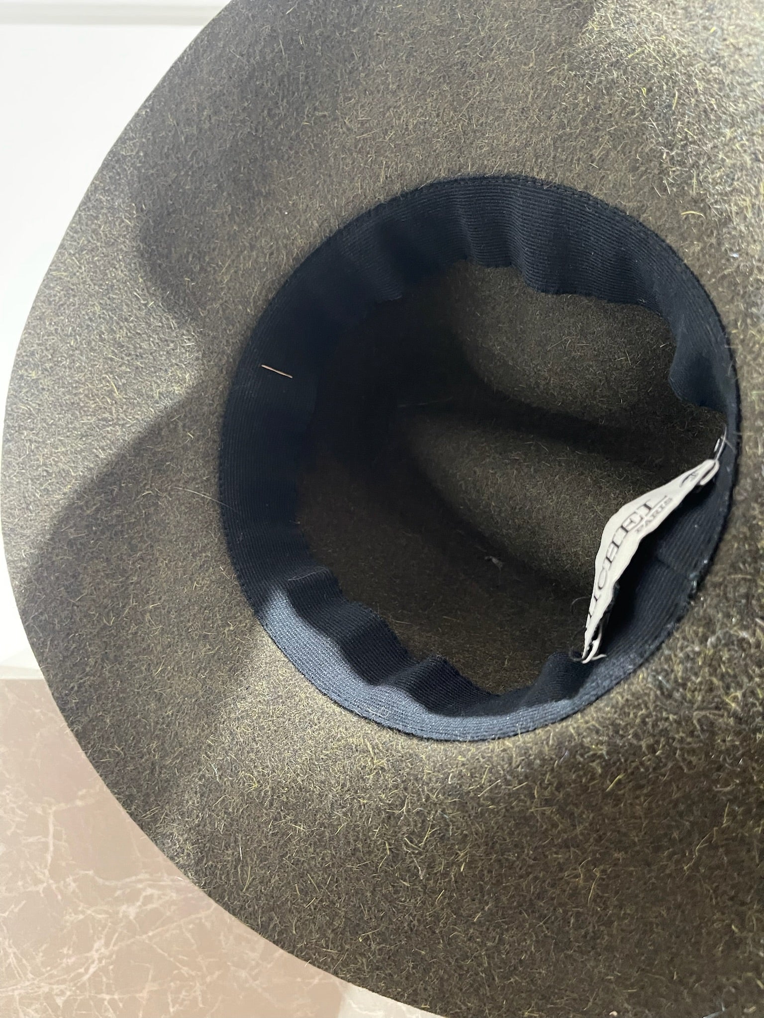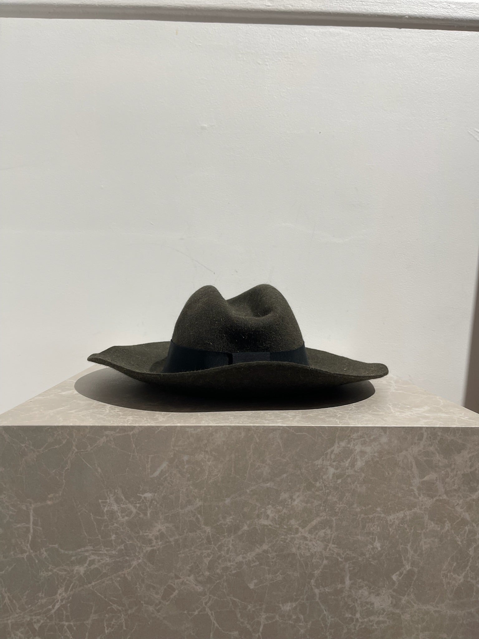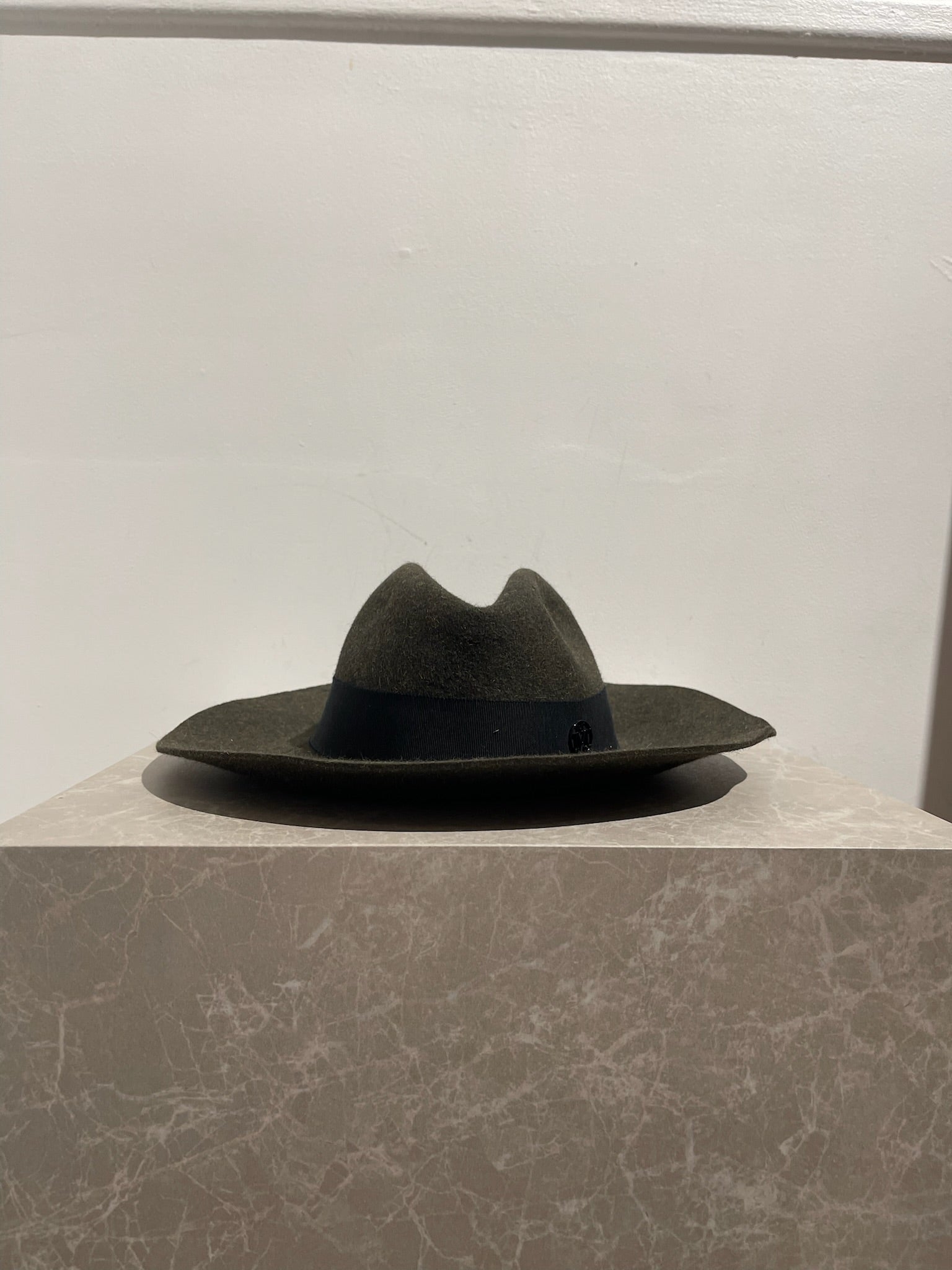Chapeau en laine kaki, ruban large noir avec le logo M.