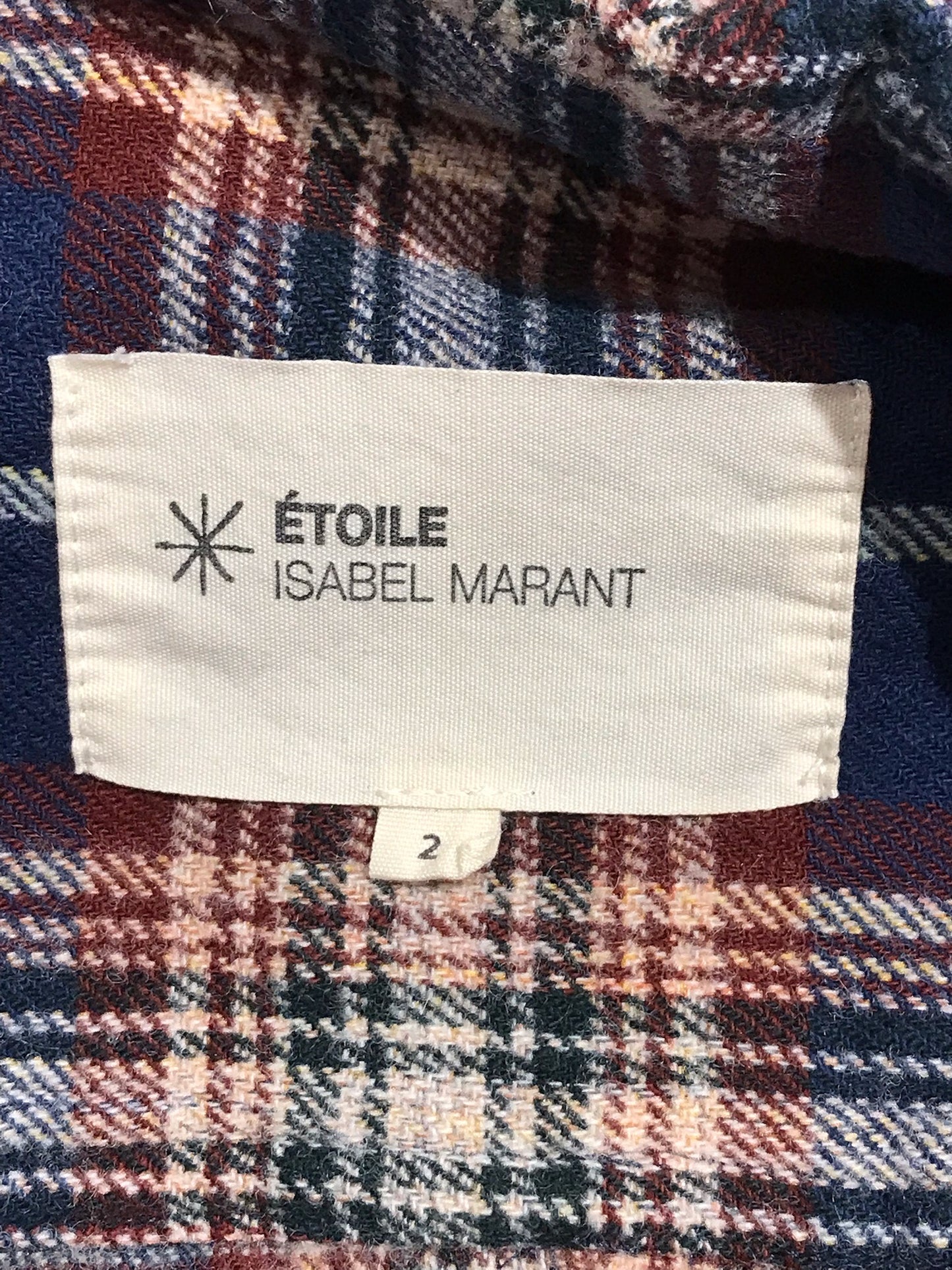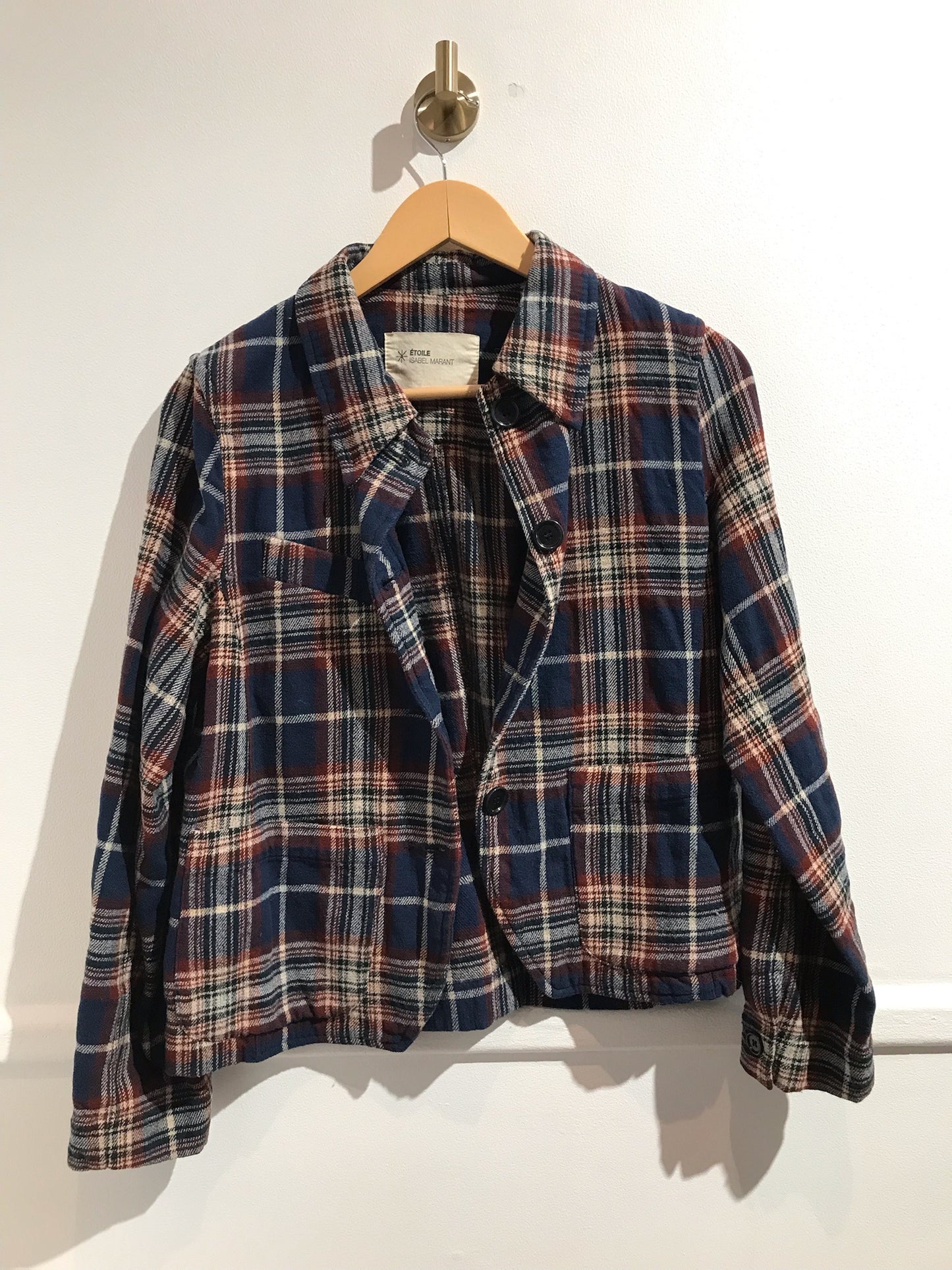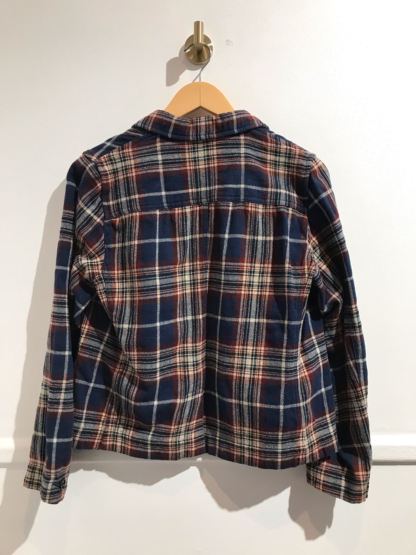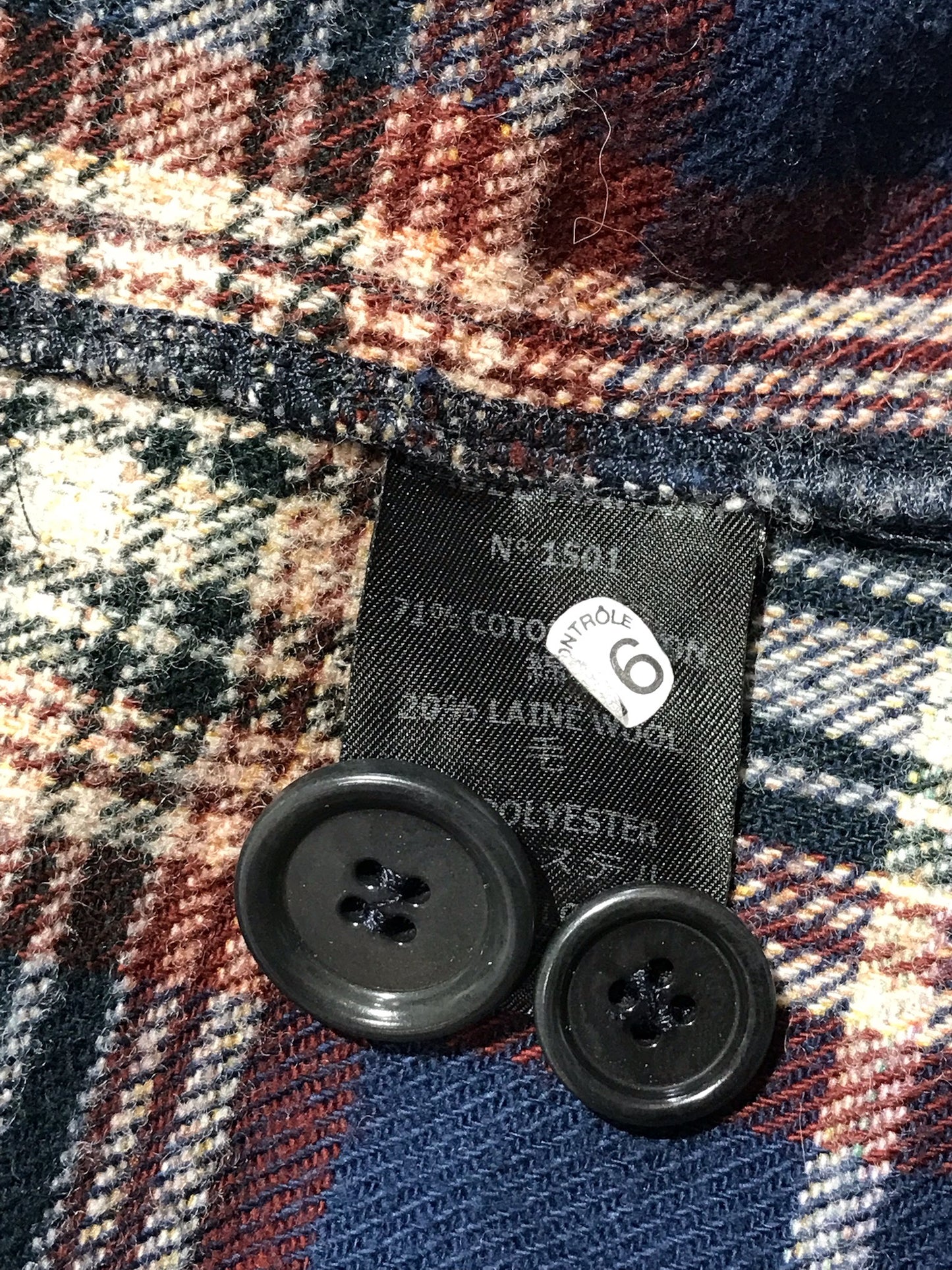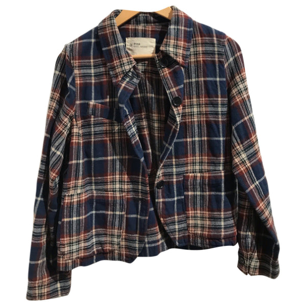 Chemise / veste en coton et laine imprimé carreaux bleu, rouge et blanc. Fermeture boutonnée.