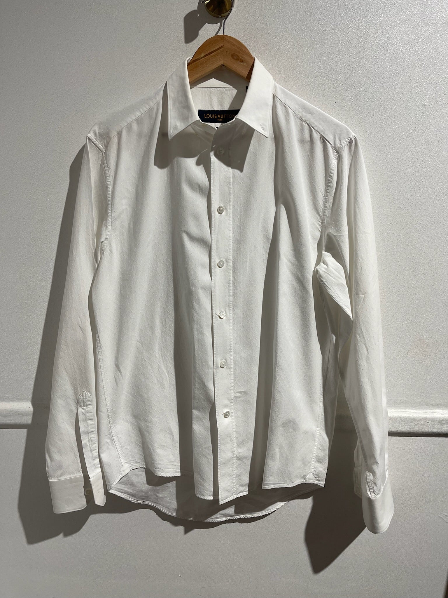 Chemise en coton blanc avec fermeture boutonnée et poignets boutonnés. Logo LV brodé en bas de la chemise. Coupe Regular fit .