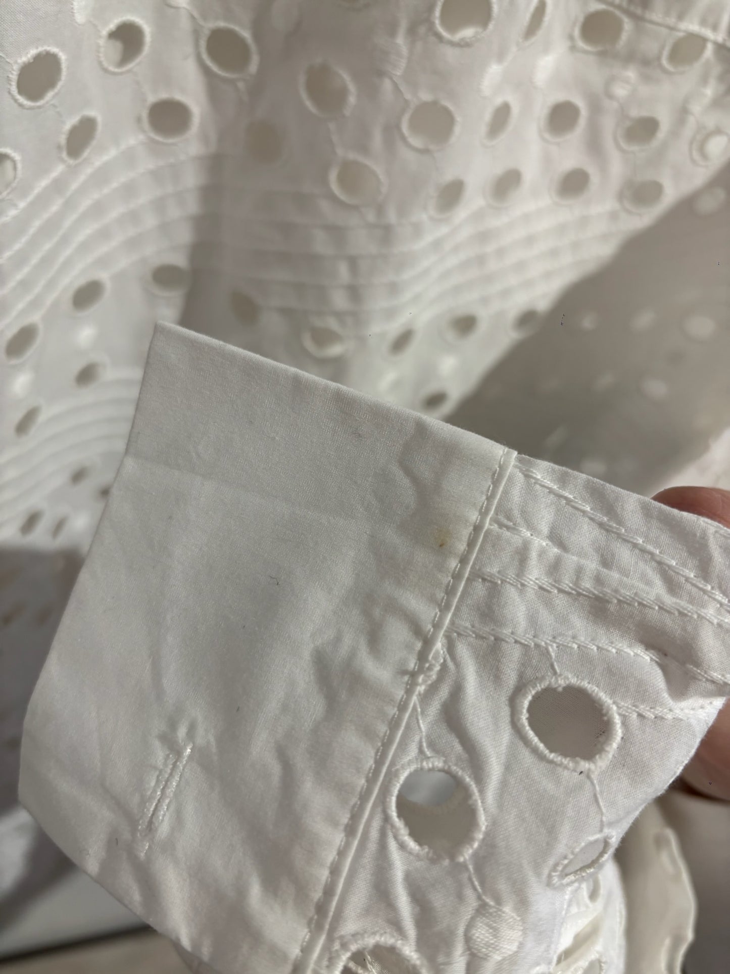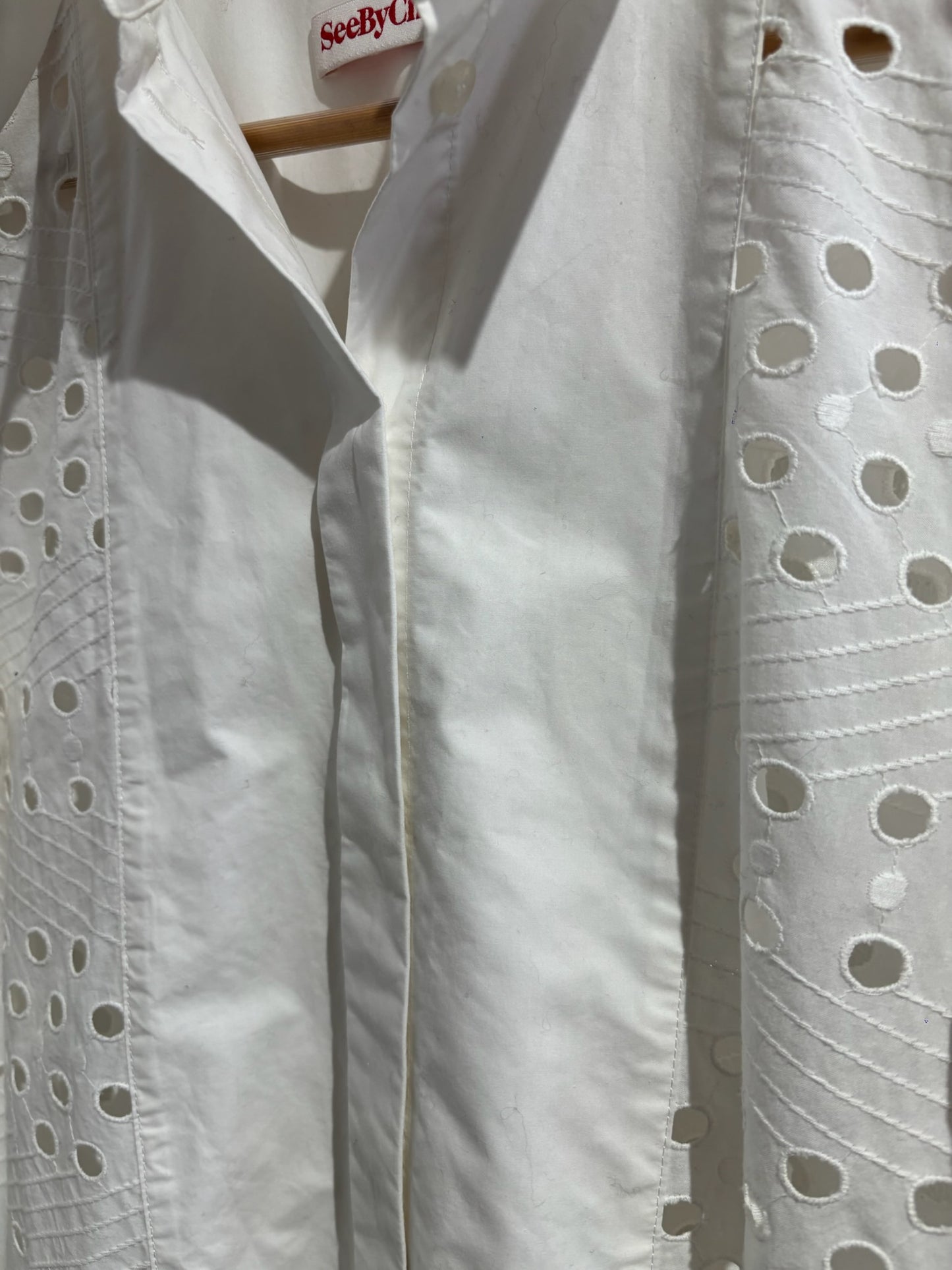Chemisier See By Chloé en coton ajouré blanc. Col classique et manches longues avec poignets boutonnés. 100 % coton.