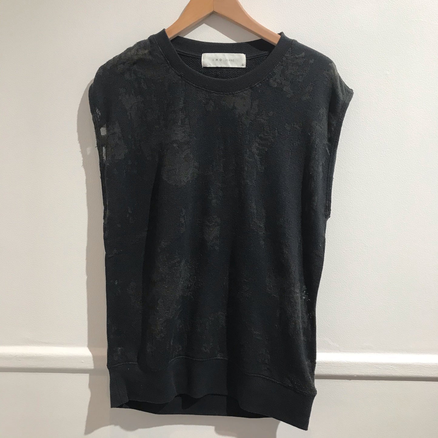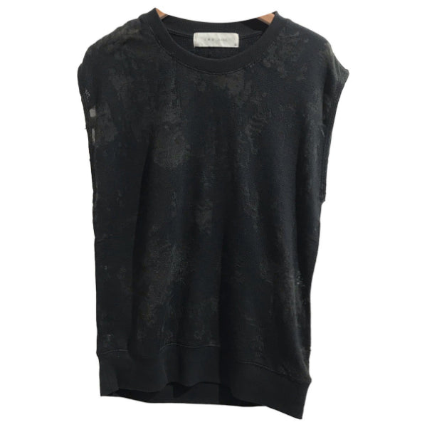 Top manches courtes en coton mélangé gris foncé avec effet déchiré.