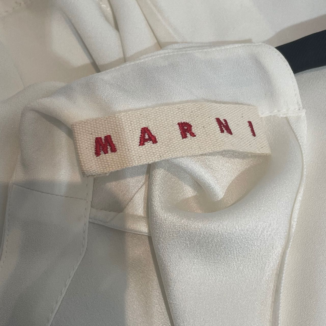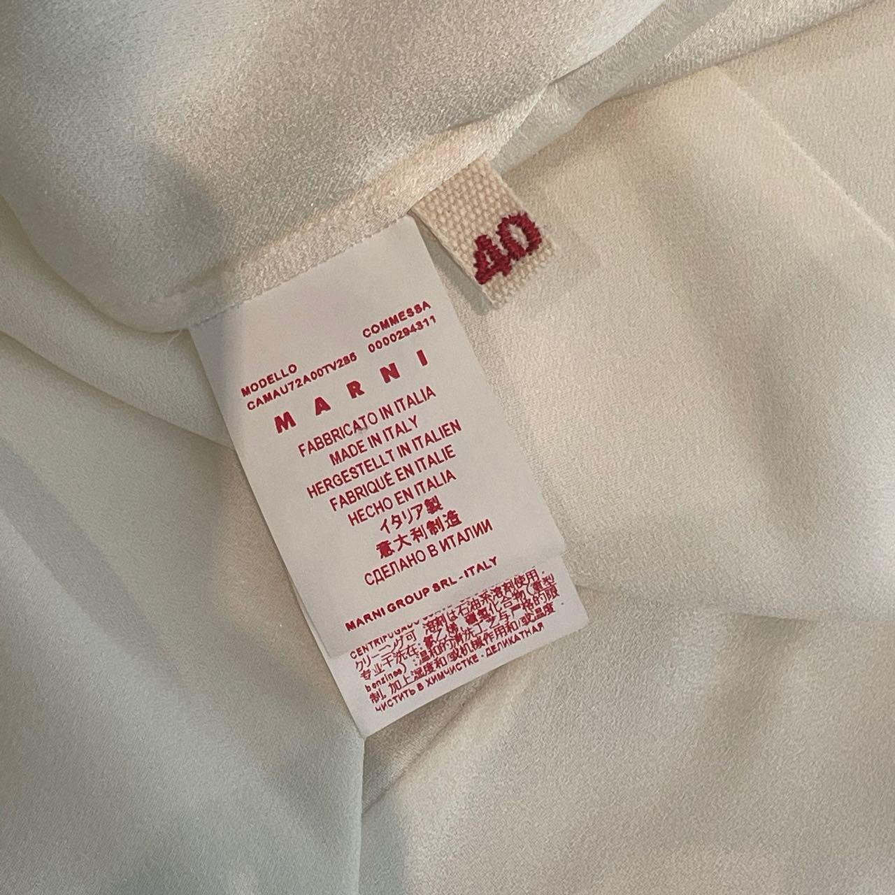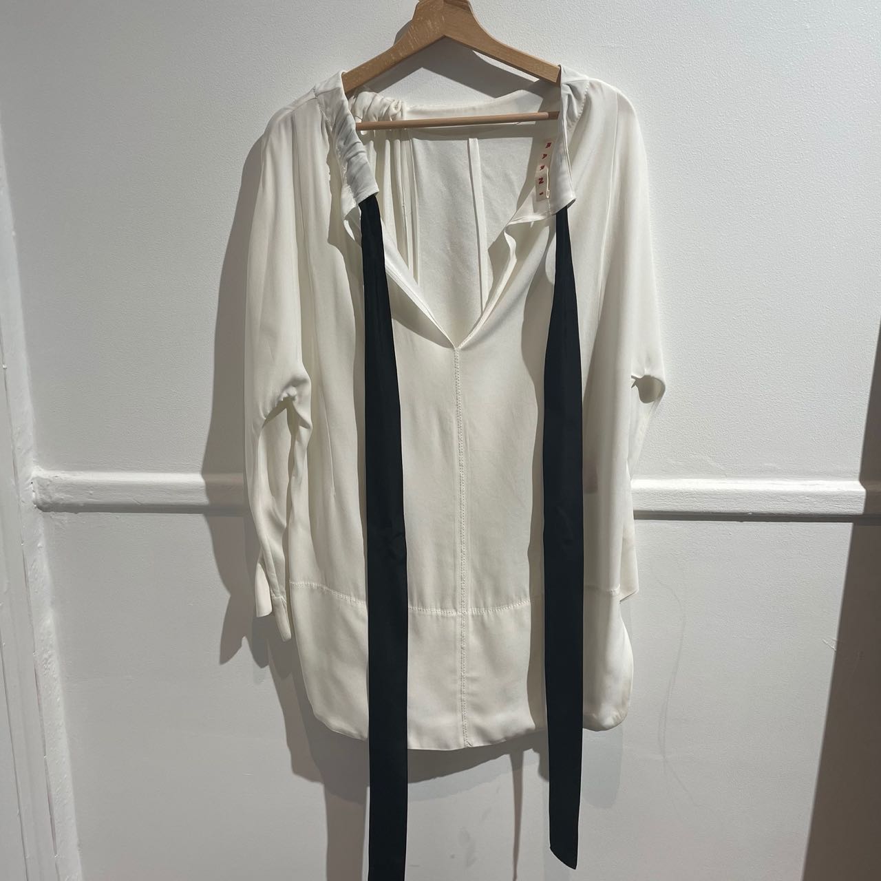 Top en tissu blanc, col rond à liens noirs à nouer au dos. Coupe oversize.