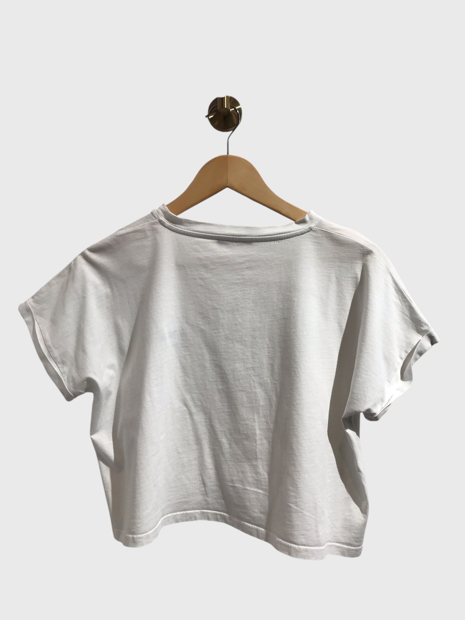 Crop top en coton blanc avec l'inscription Balmain Paris en velours noir sur le devant. Coupe ample.
