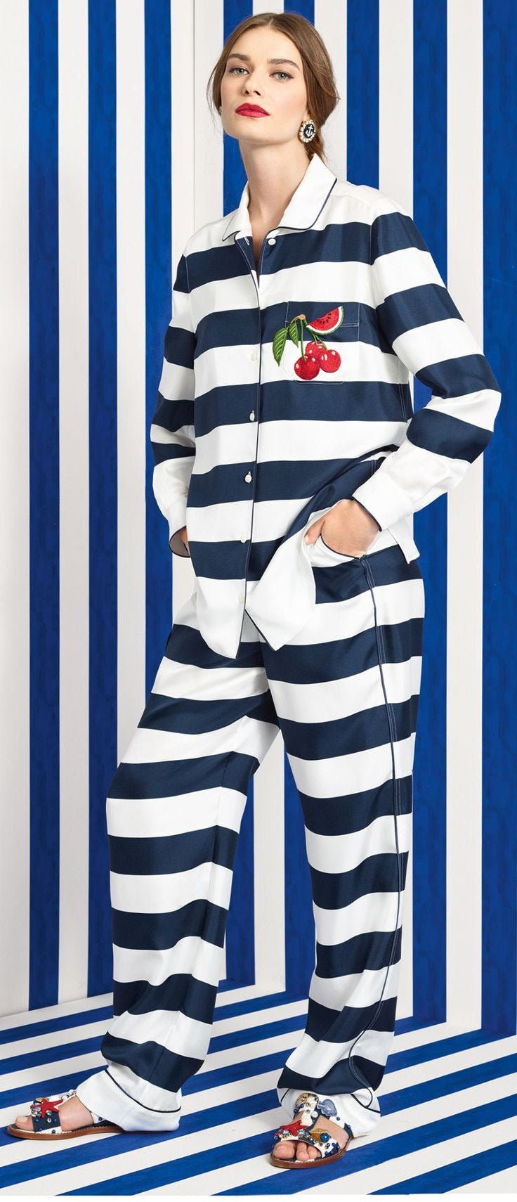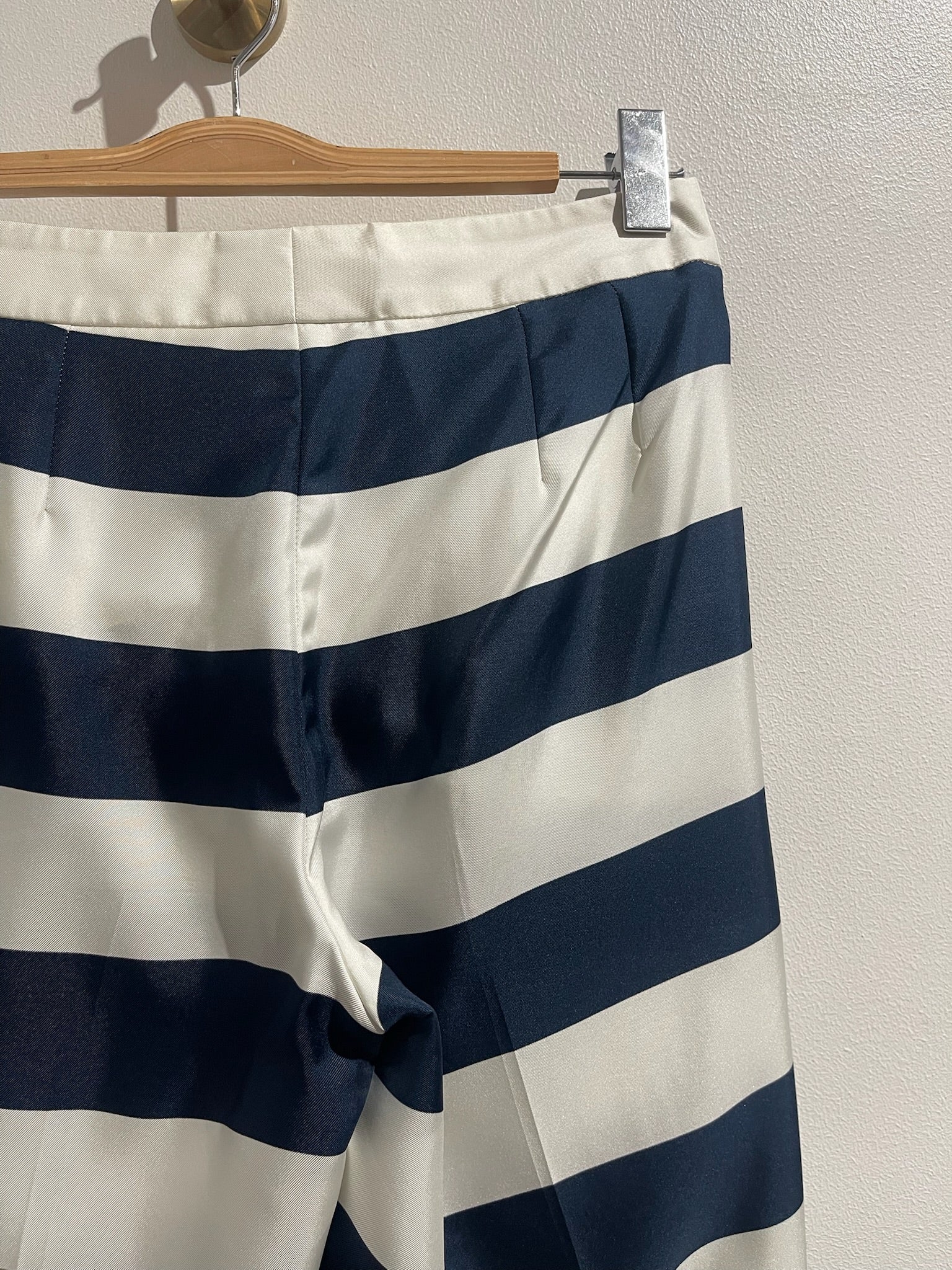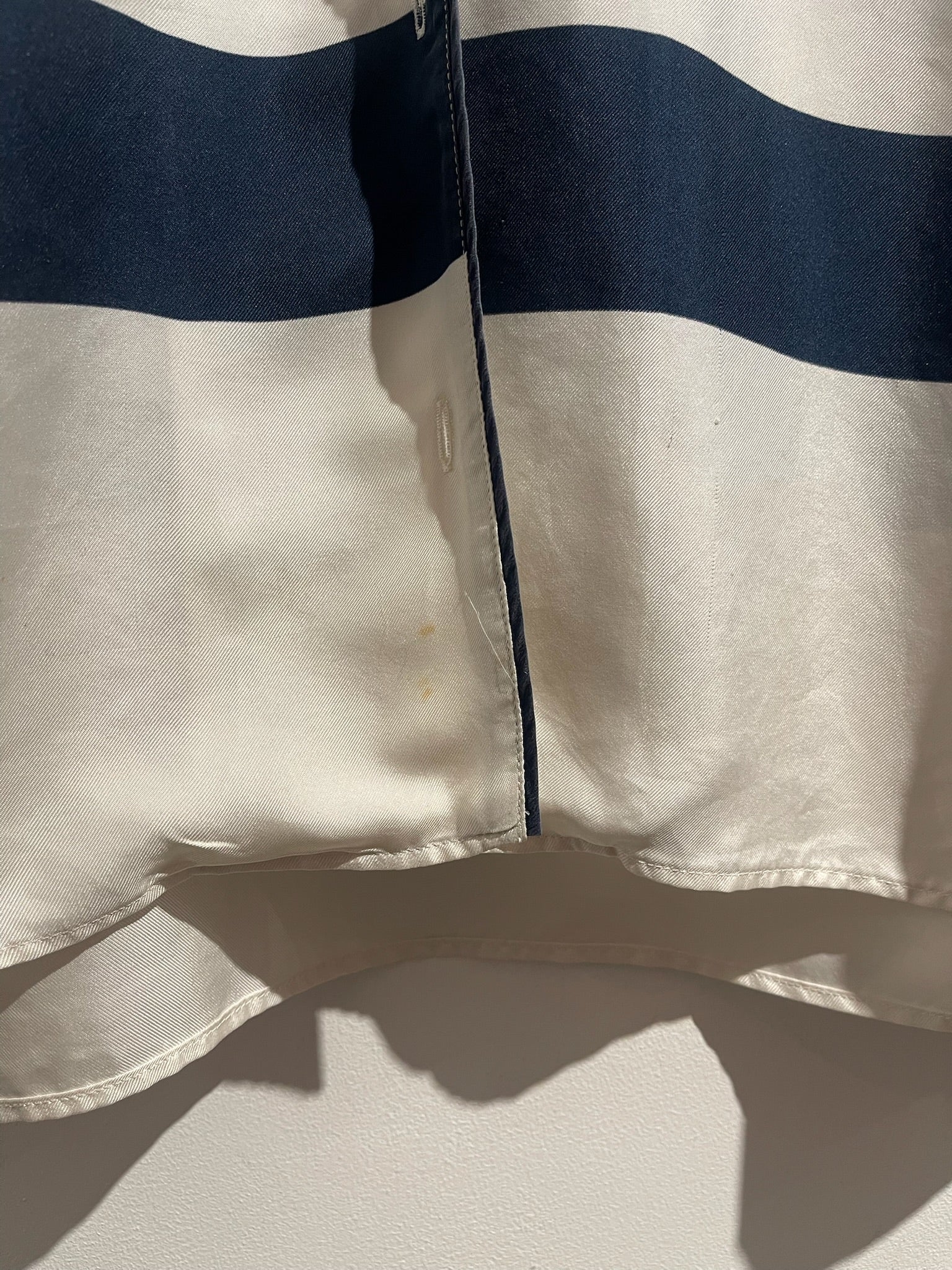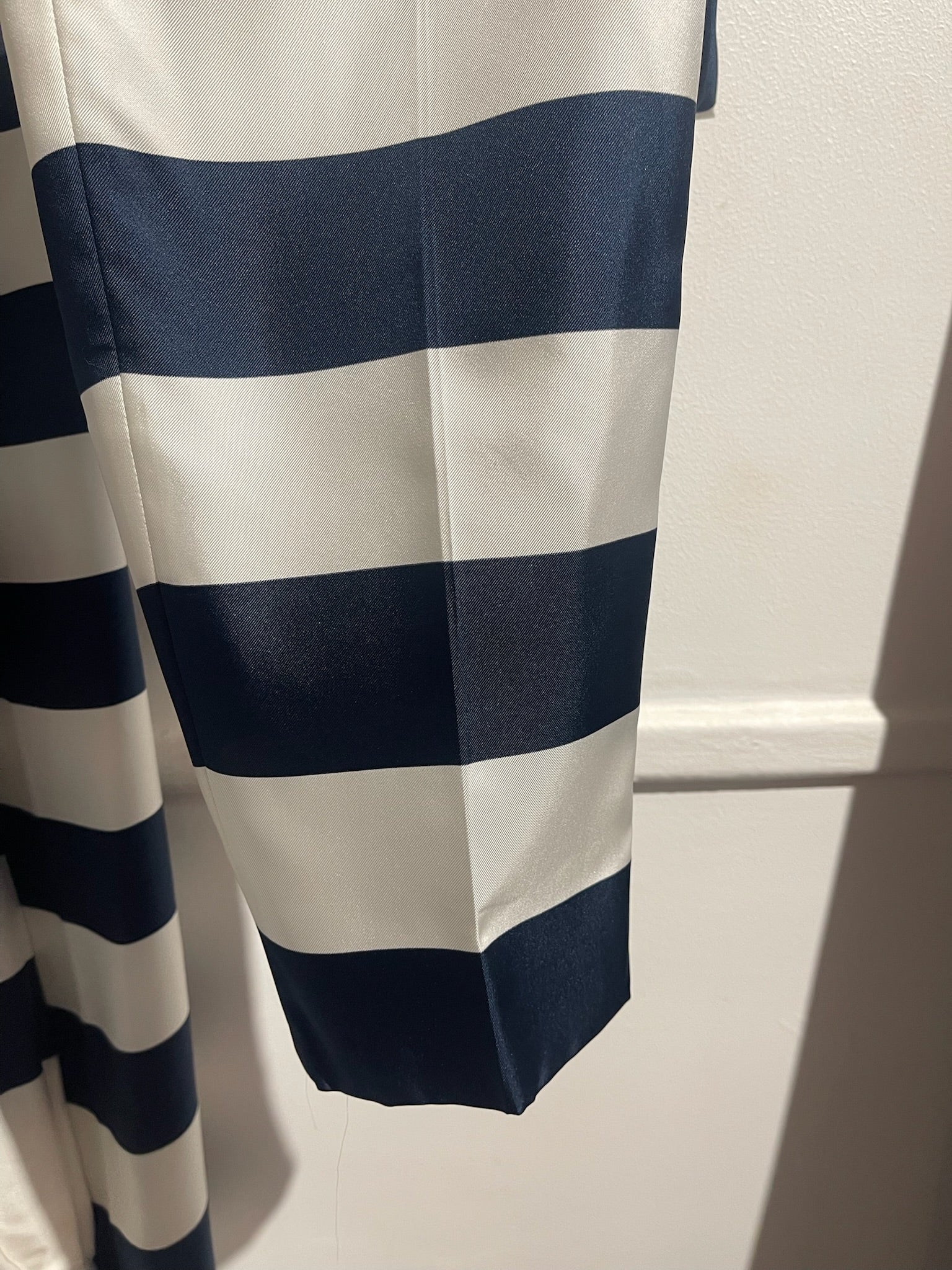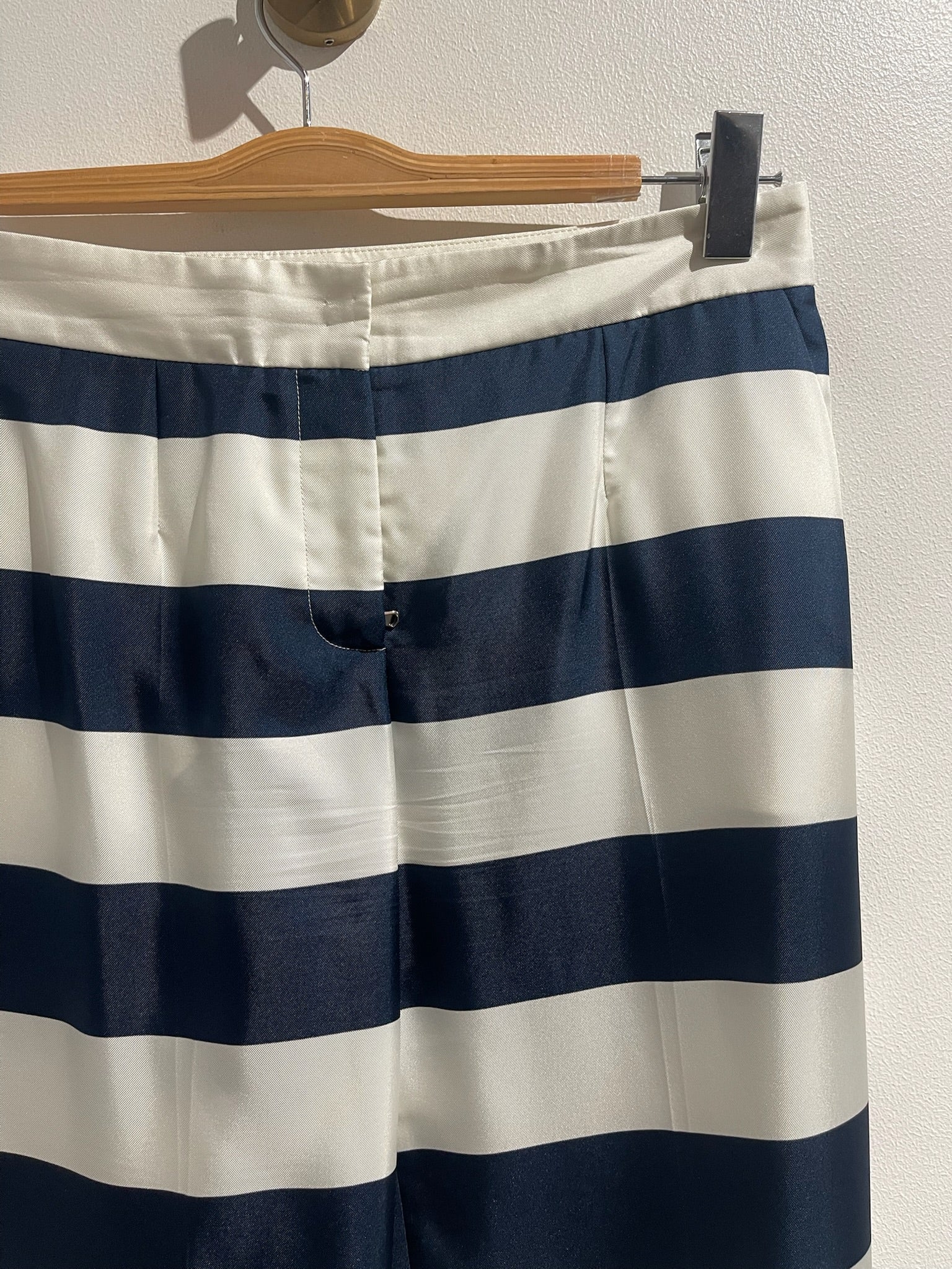 Ensemble 100% soie à rayures bleu marine et blanche.