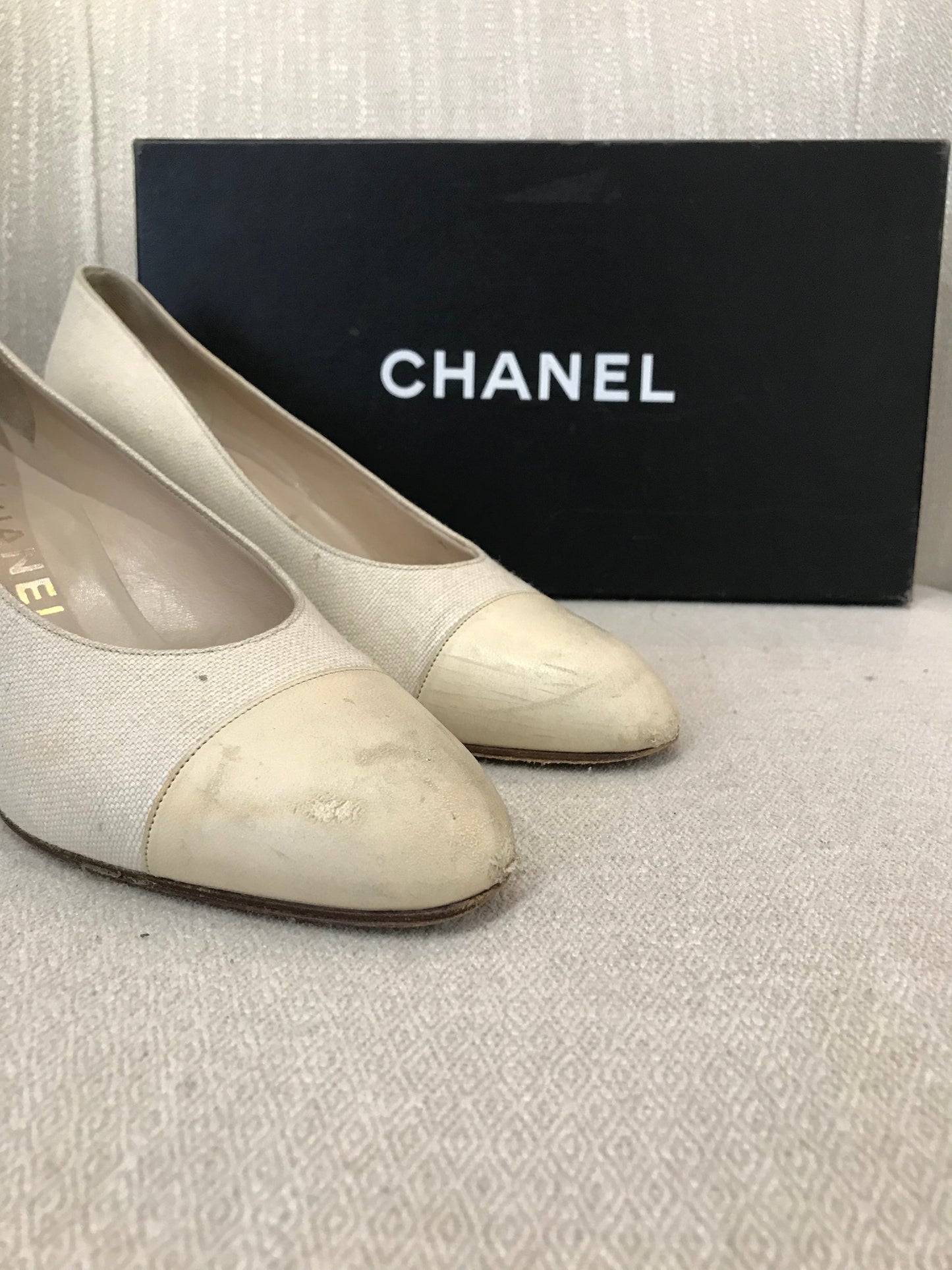 Bon état, quelques marques d'usures au bout des talons et tâches sur la toile (voir photos). Avec boite